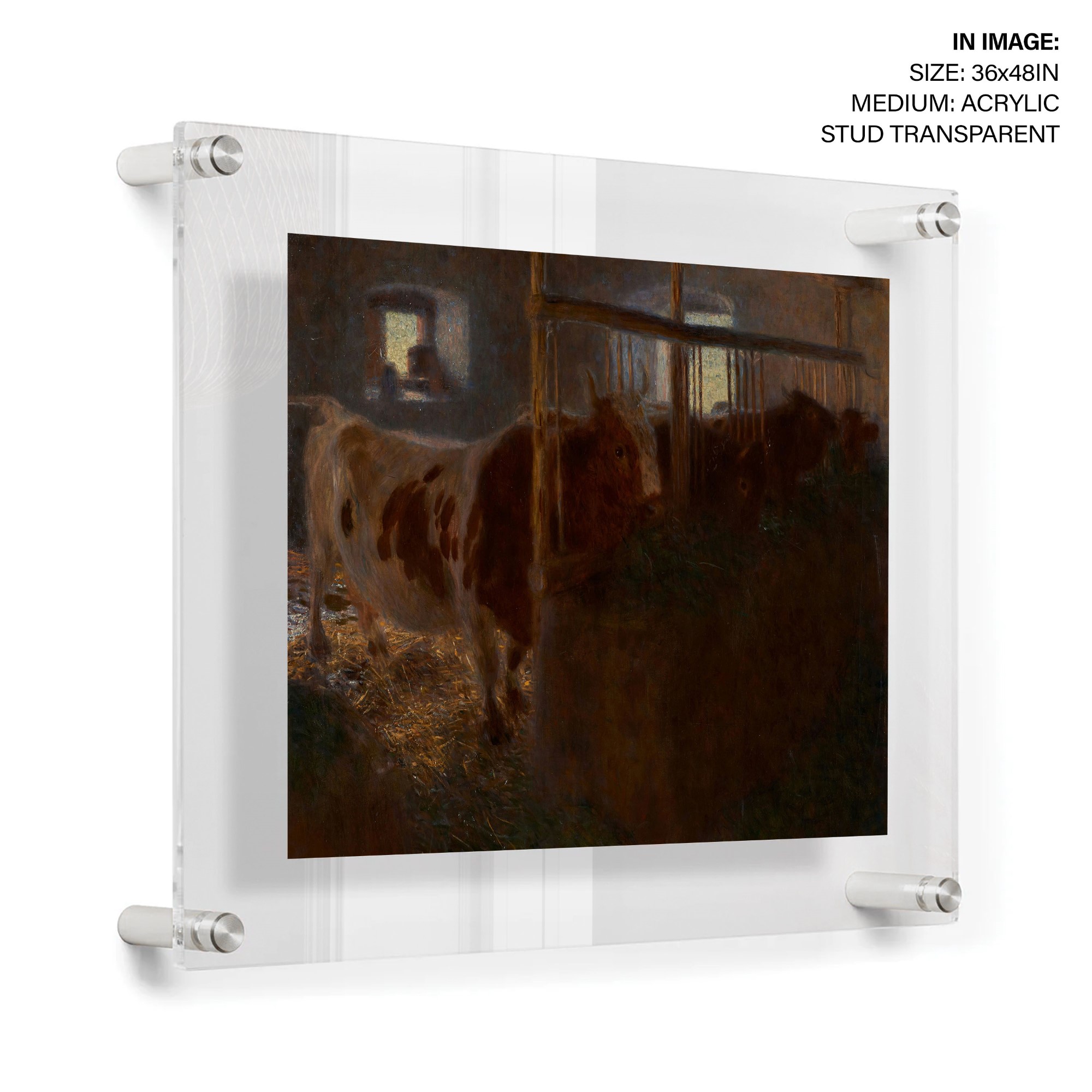 Kuhstall / Kühe im Stall is a painting by Gustav Klimt, created in 1900. The painting is currently located at the Lentos Kunstmuseum Linz. It is an oil on canvas piece, measuring 75 x 76.5 cm. The painting depicts cows in a stable, with Klimt’s signature style of decorative patterns and gold leaf accents