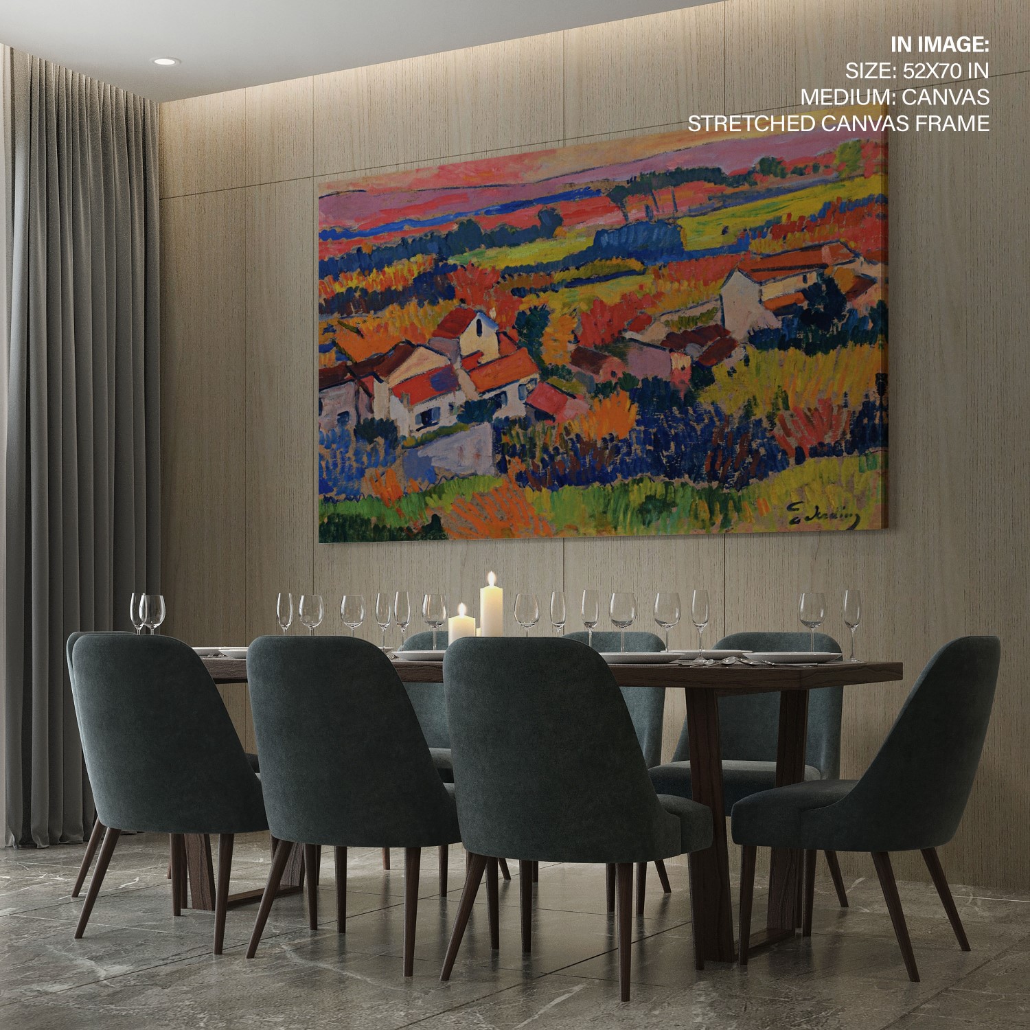 We recommend using Canvas for prominent living spaces (living room, dining hall, bedrooms), Metal/Glass for modern aesthetics, and Art Paper for galleries, bathrooms, kitchens, and other less formal areas.