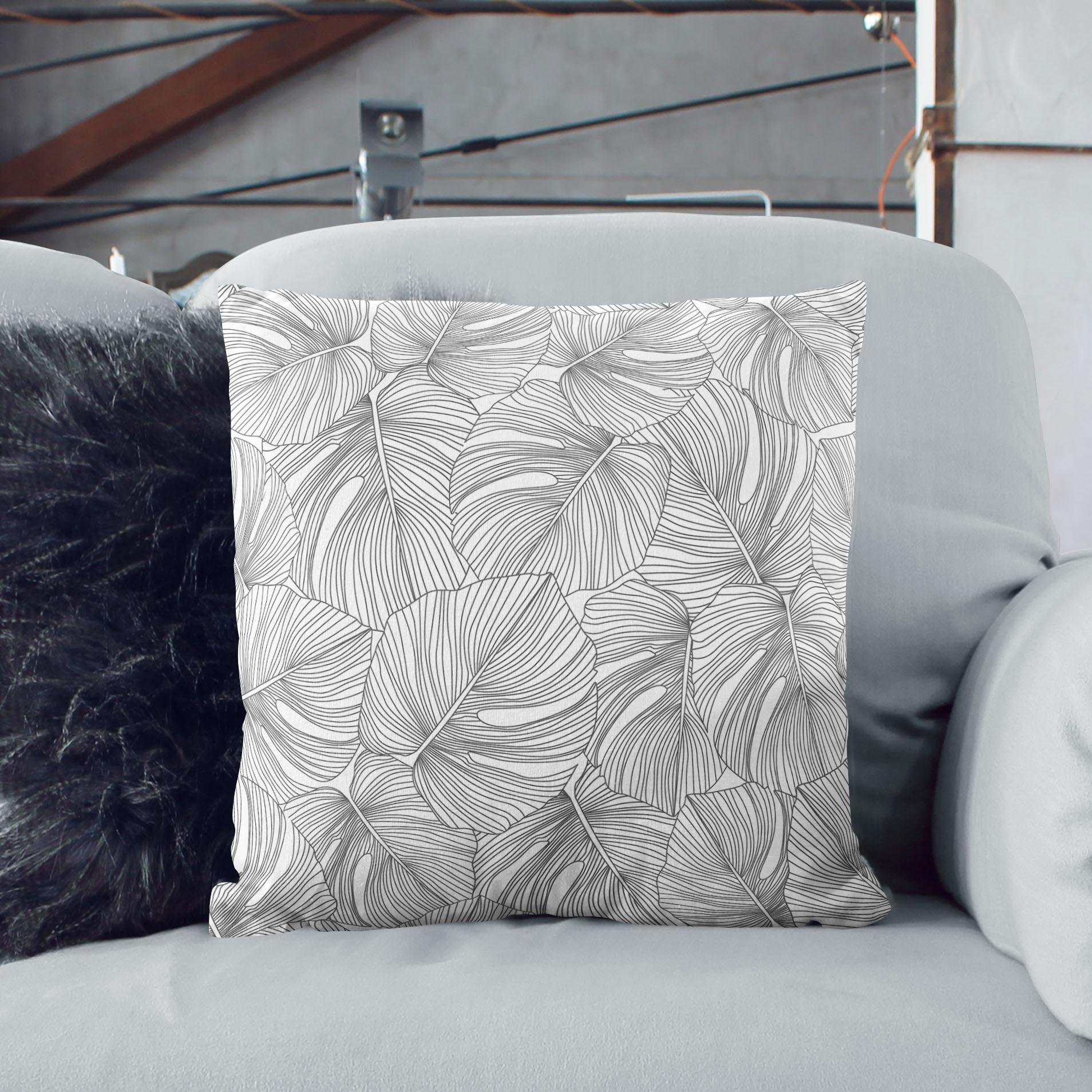 Line drawing black leaves