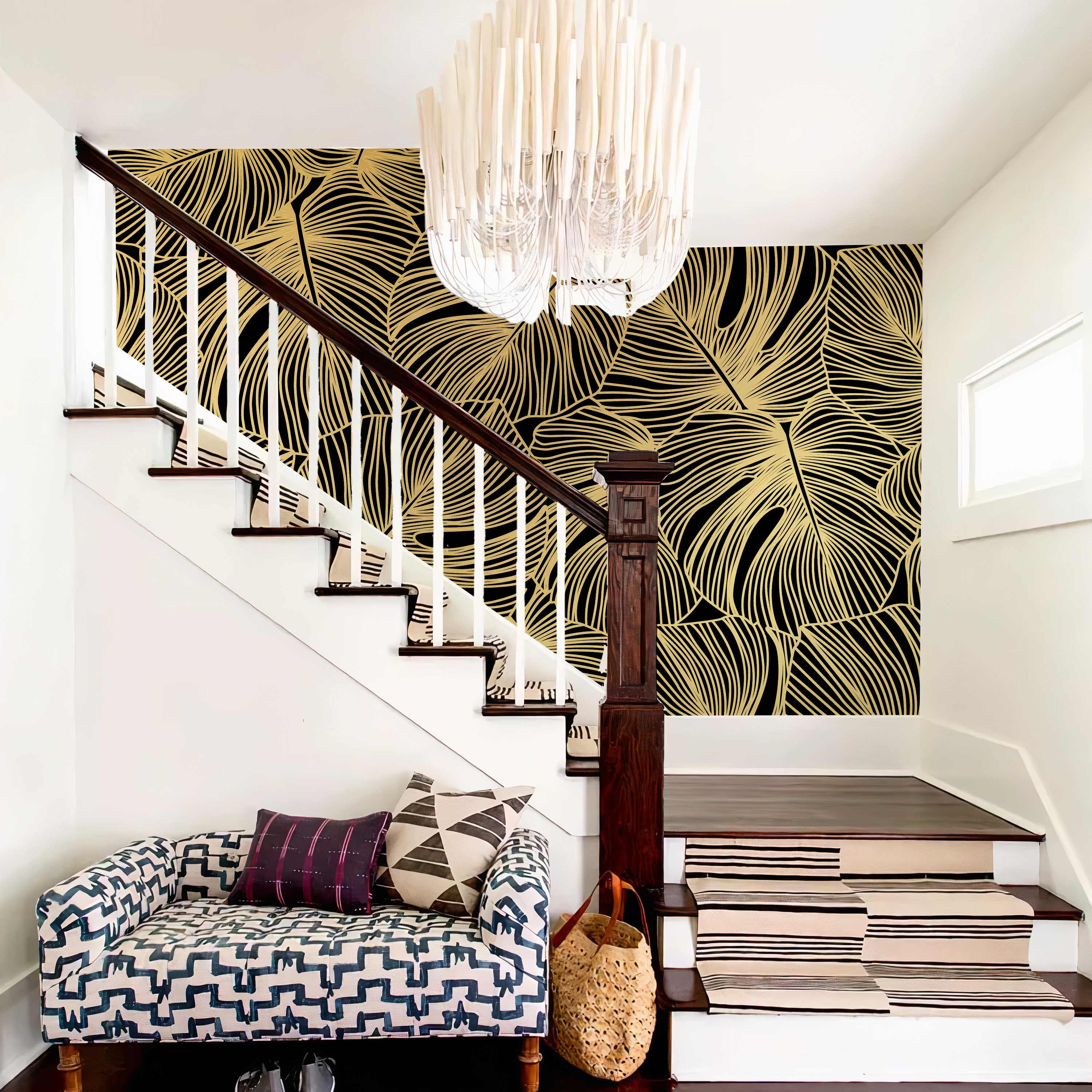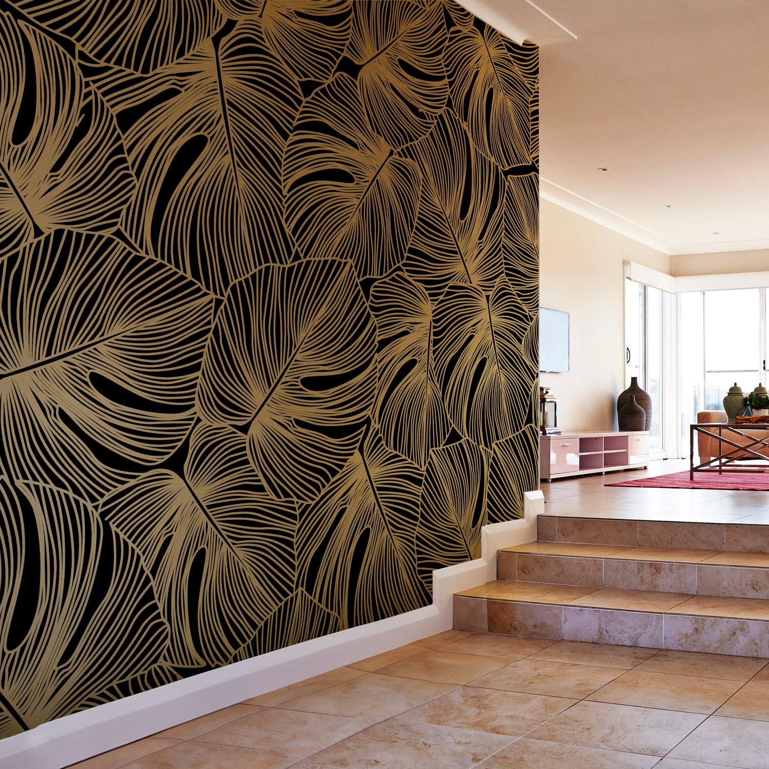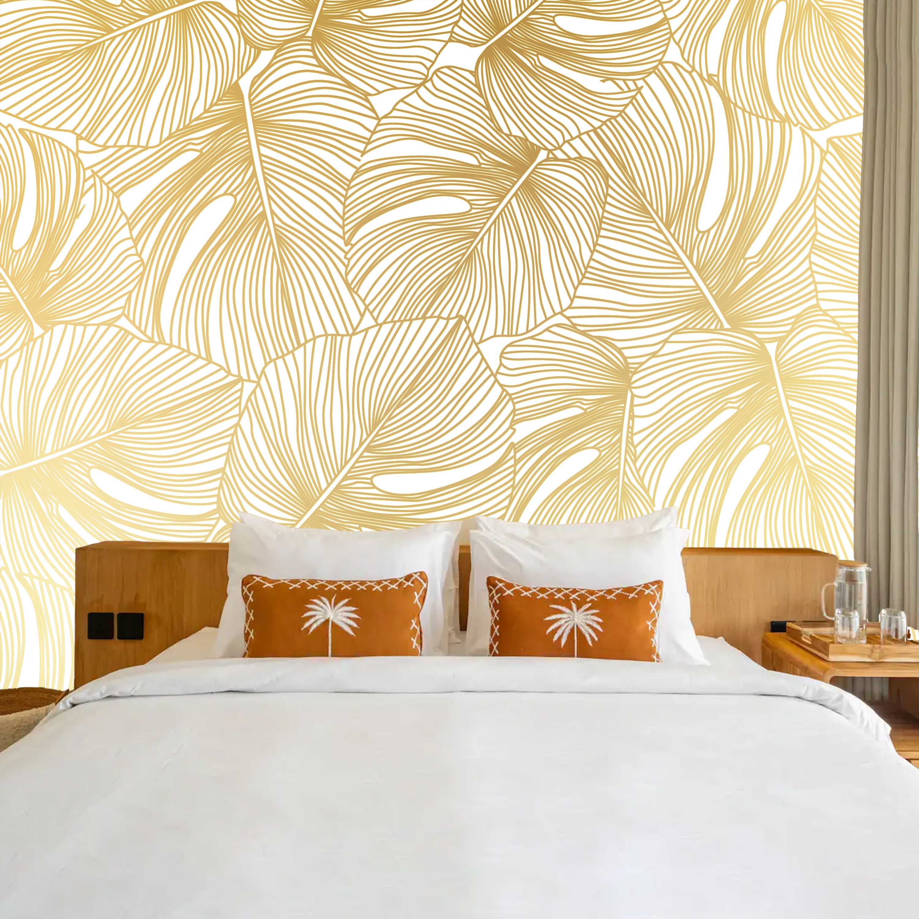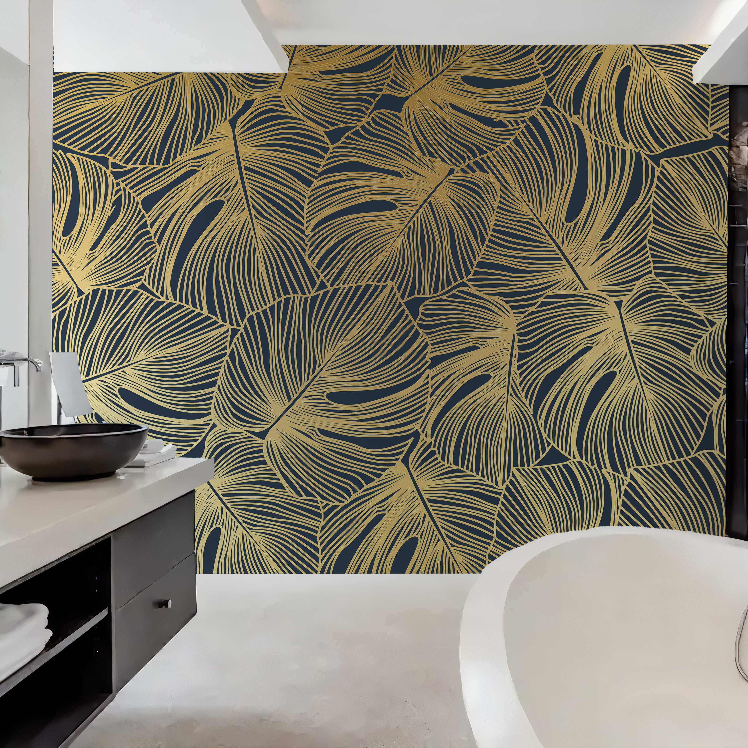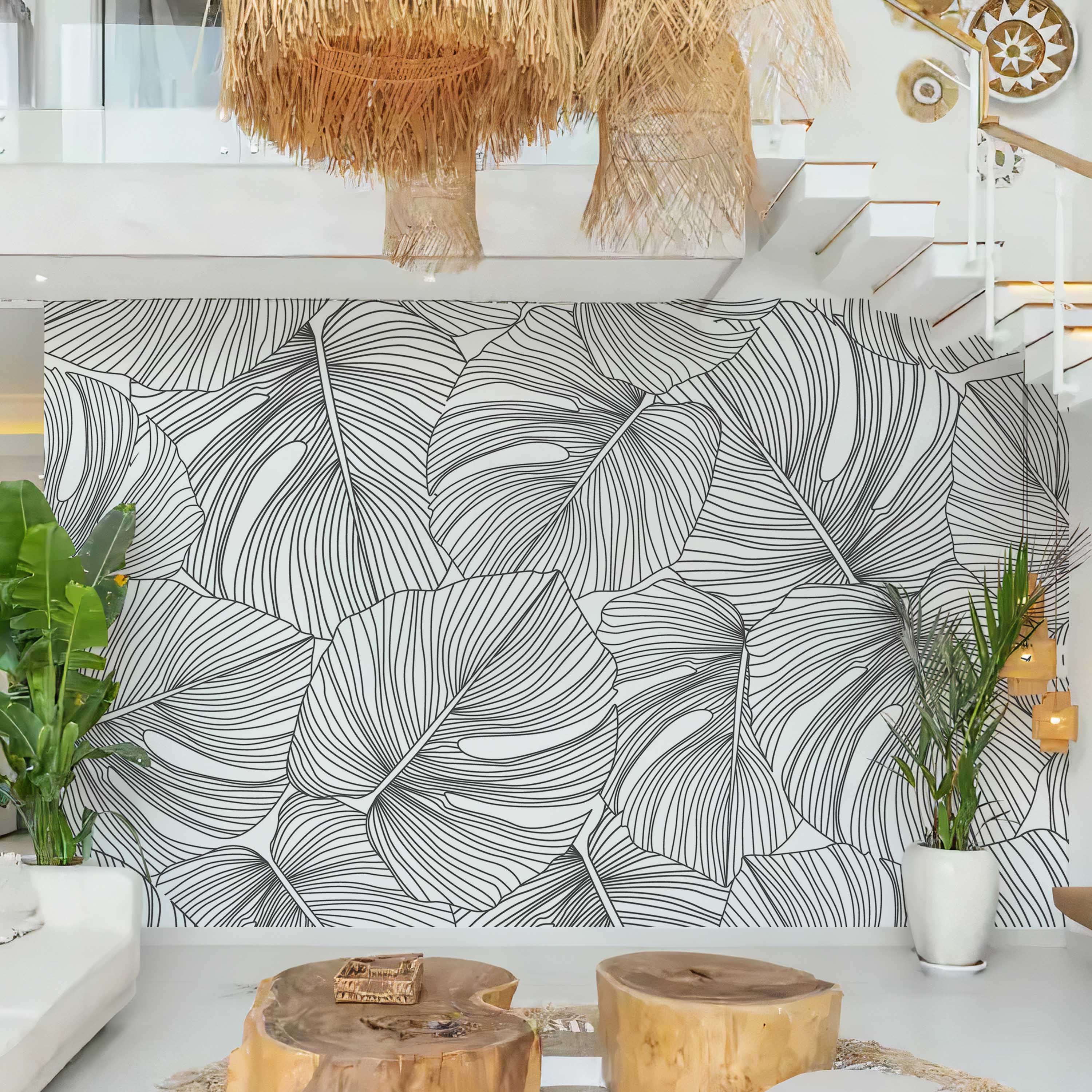 Line drawing black leaves – Mural Wallpaper, PVC Free, Non-Toxic
