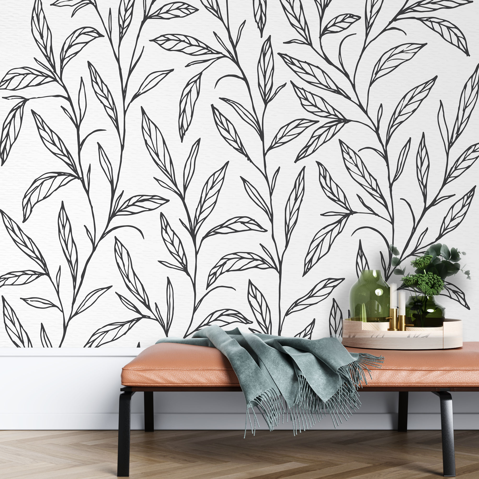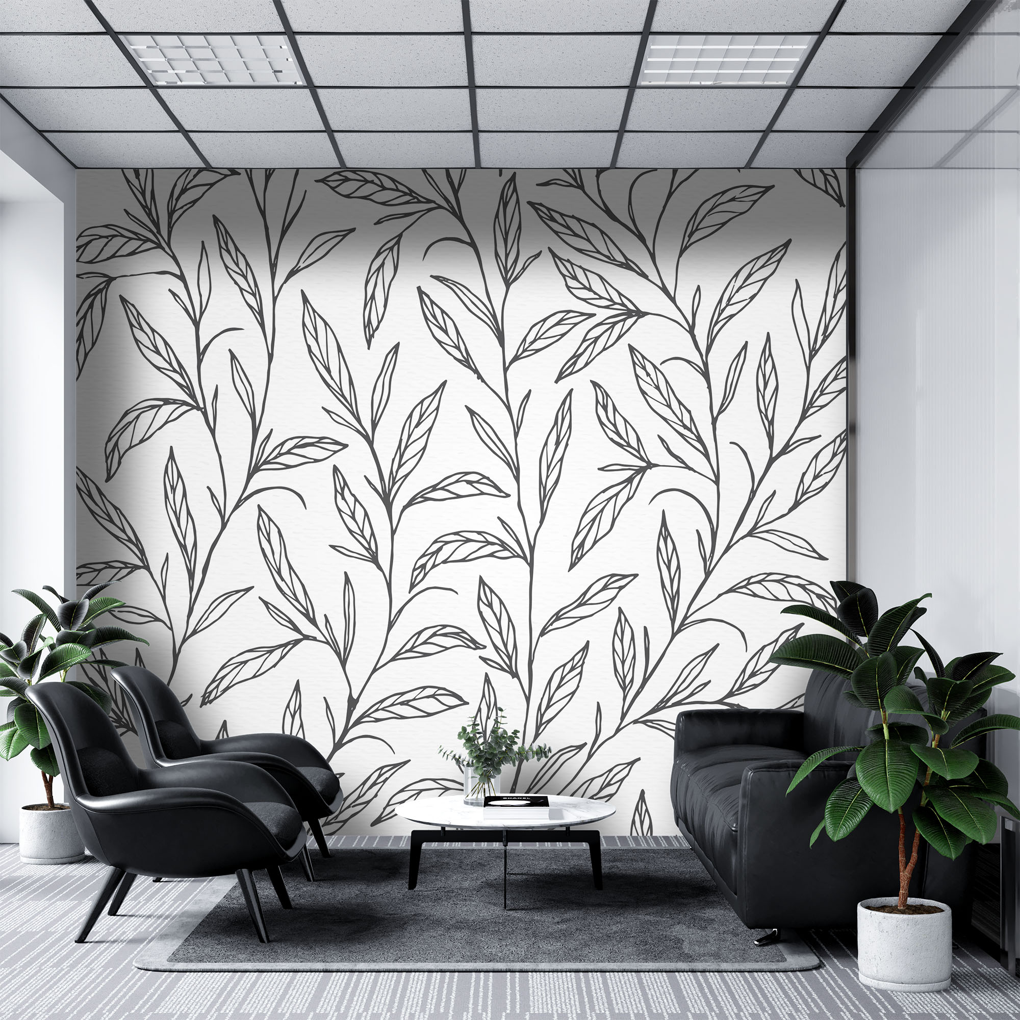 Line drawing leaves – Mural Wallpaper, PVC Free, Non-Toxic