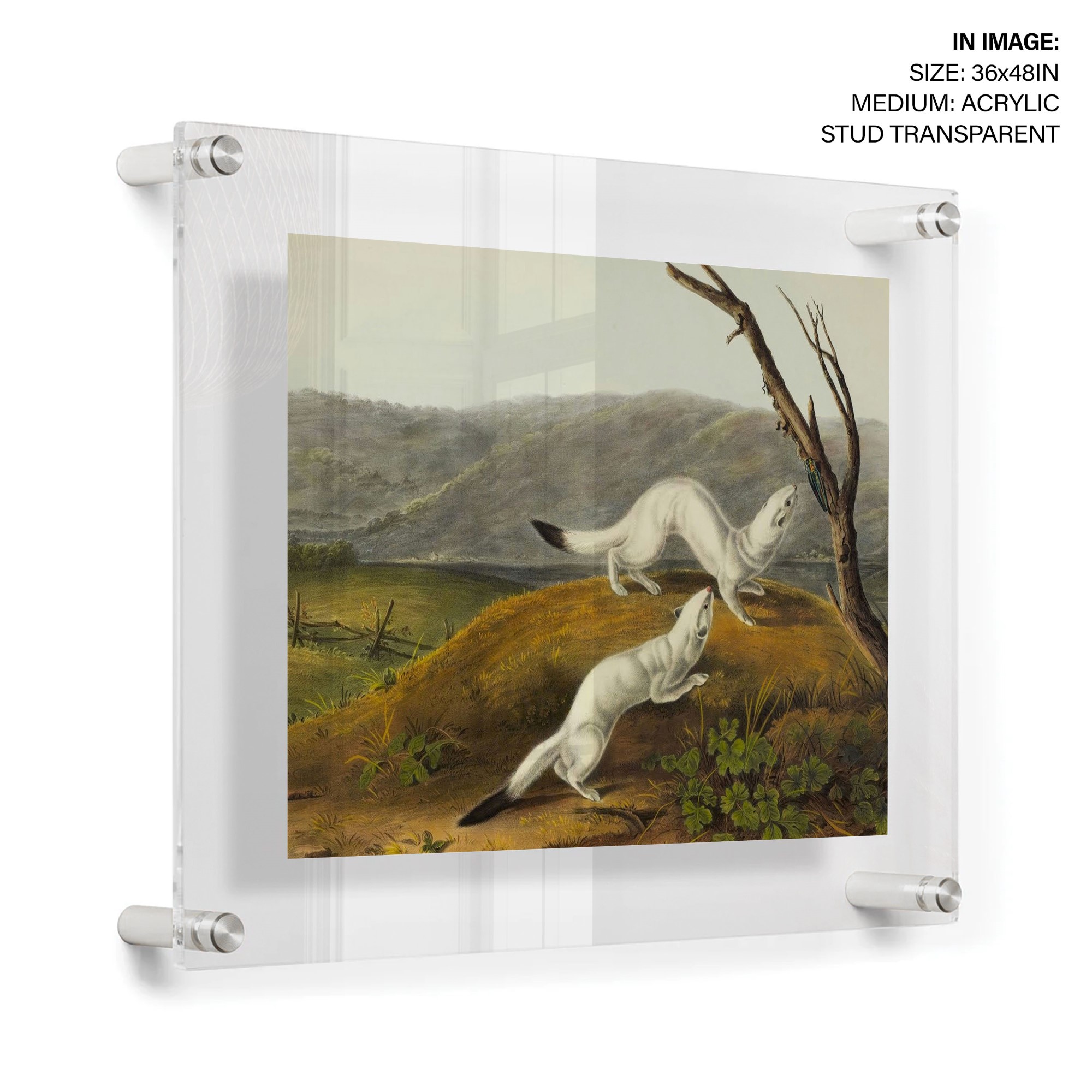 The image is a lithograph of a little white weasel from John James Audubon’s The viviparous quadrupeds of North America. The book was published in New York between 1845 and 1854 and contains 150 color illustrations of lithographs. The American Museum of Natural History Library Rare Book Collection houses the specimen. The Rare Book