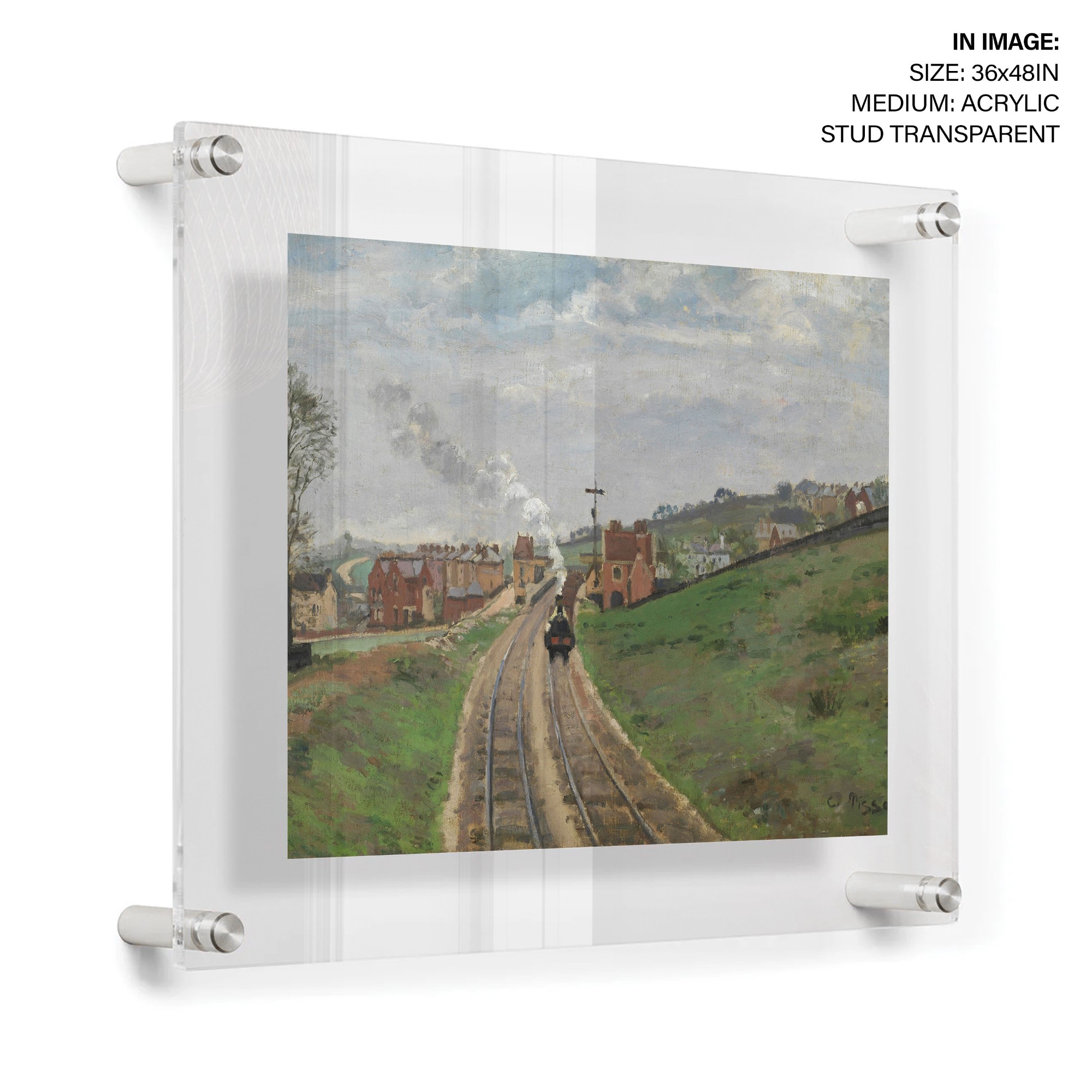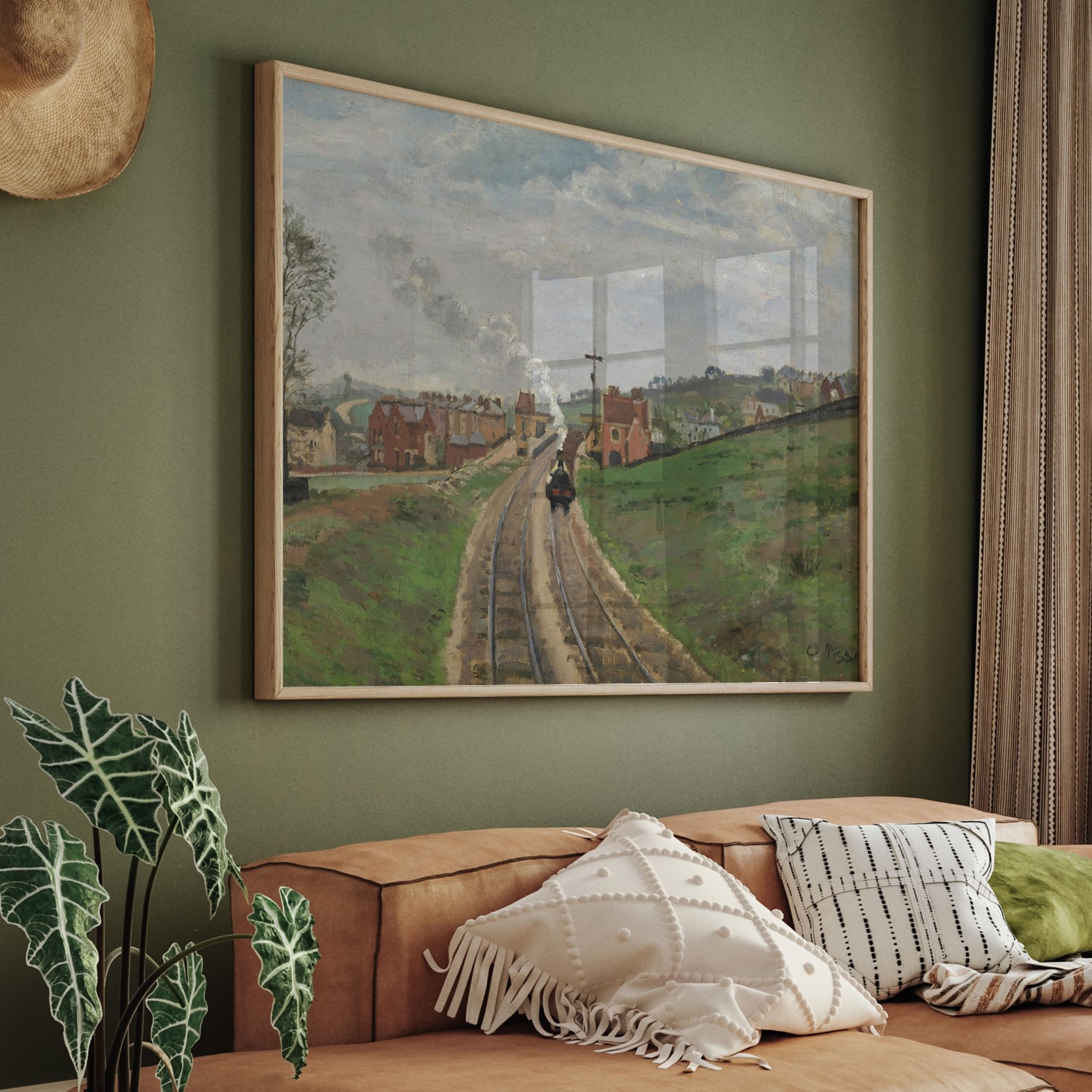 Painted from a footbridge spanning the railroad tracks, this view shows a train leaving a recently built station in south London. Camille Pissarro fled Paris with his family in 1870 during the Franco-Prussian War and remained in London for over a year, painting the city and its outlying areas. Although the landscape depicted here was being transformed from open countryside to built-up suburbs, it is strangely devoid of people. Pissarro originally included a man on the grassy slope
