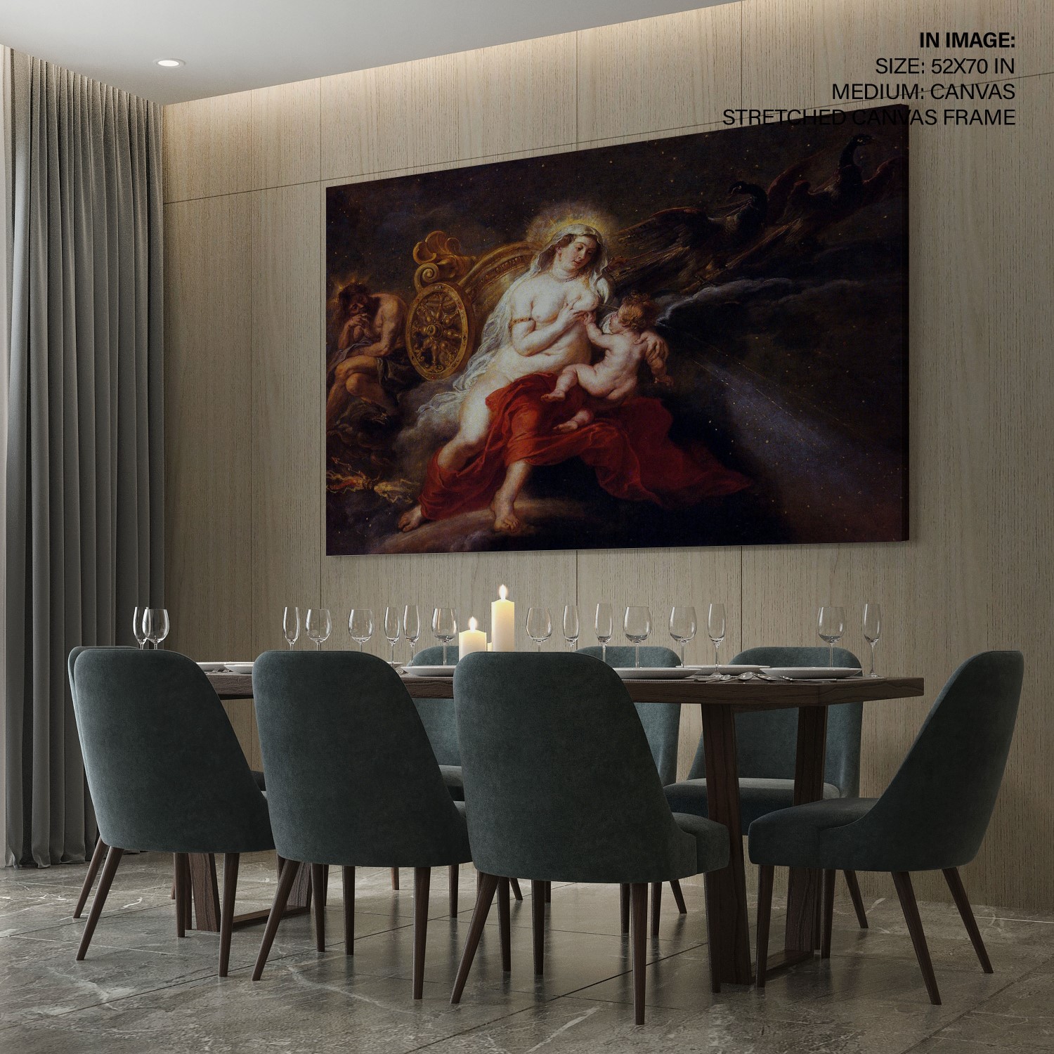 The painting ‘L’origine della Via Lattea’ was created by Peter Paul Rubens, a Flemish Baroque painter. The painting depicts the mythological story of the origin of the Milky Way, where the goddess Juno spills milk while breastfeeding Hercules, and the milk forms the Milky Way. The painting is known for its dramatic use of light and shadow, as well as its intricate details and vibrant colors. It is currently located in an unknown physical location and its dimensions, medium, and date range are unknown. Rubens was a prolific
