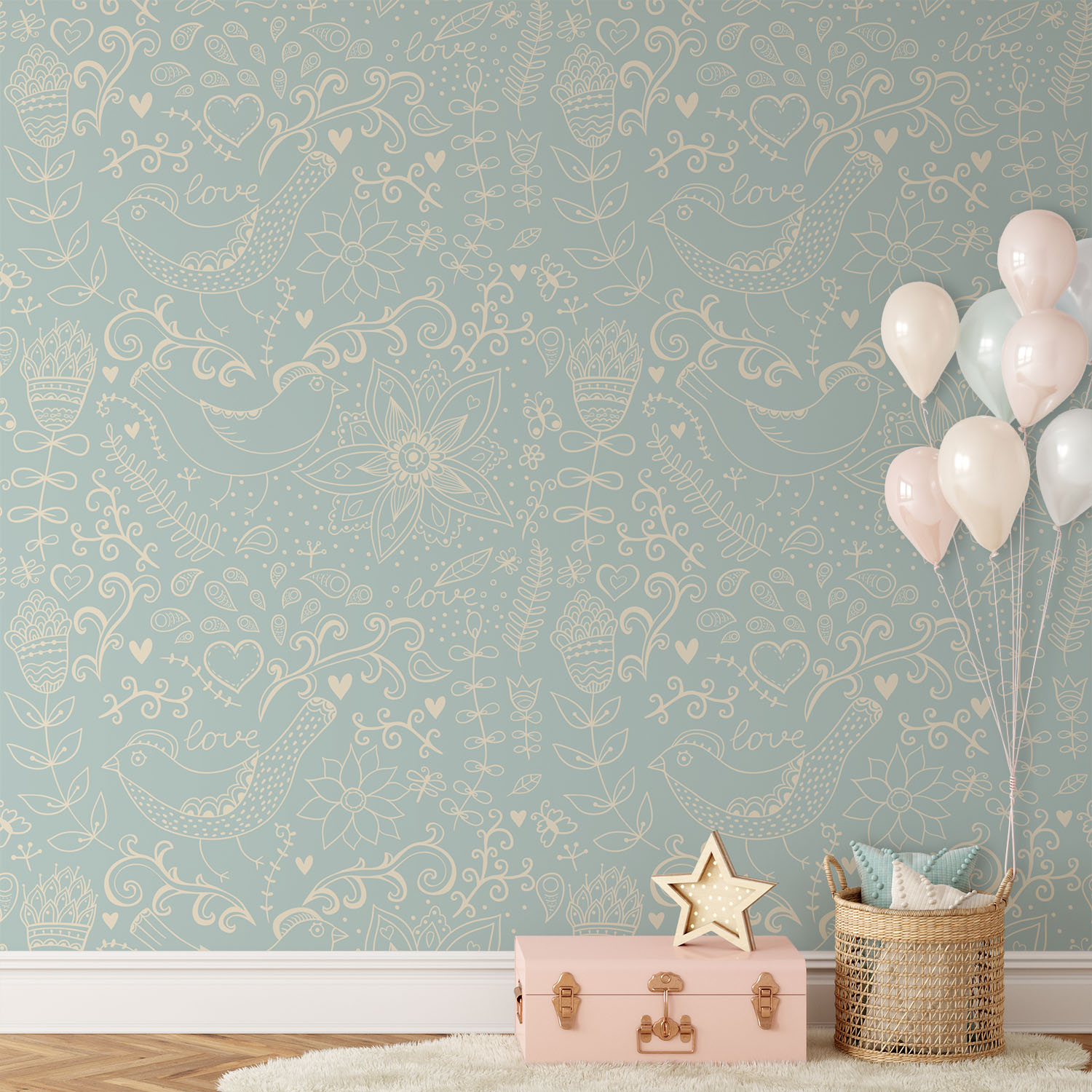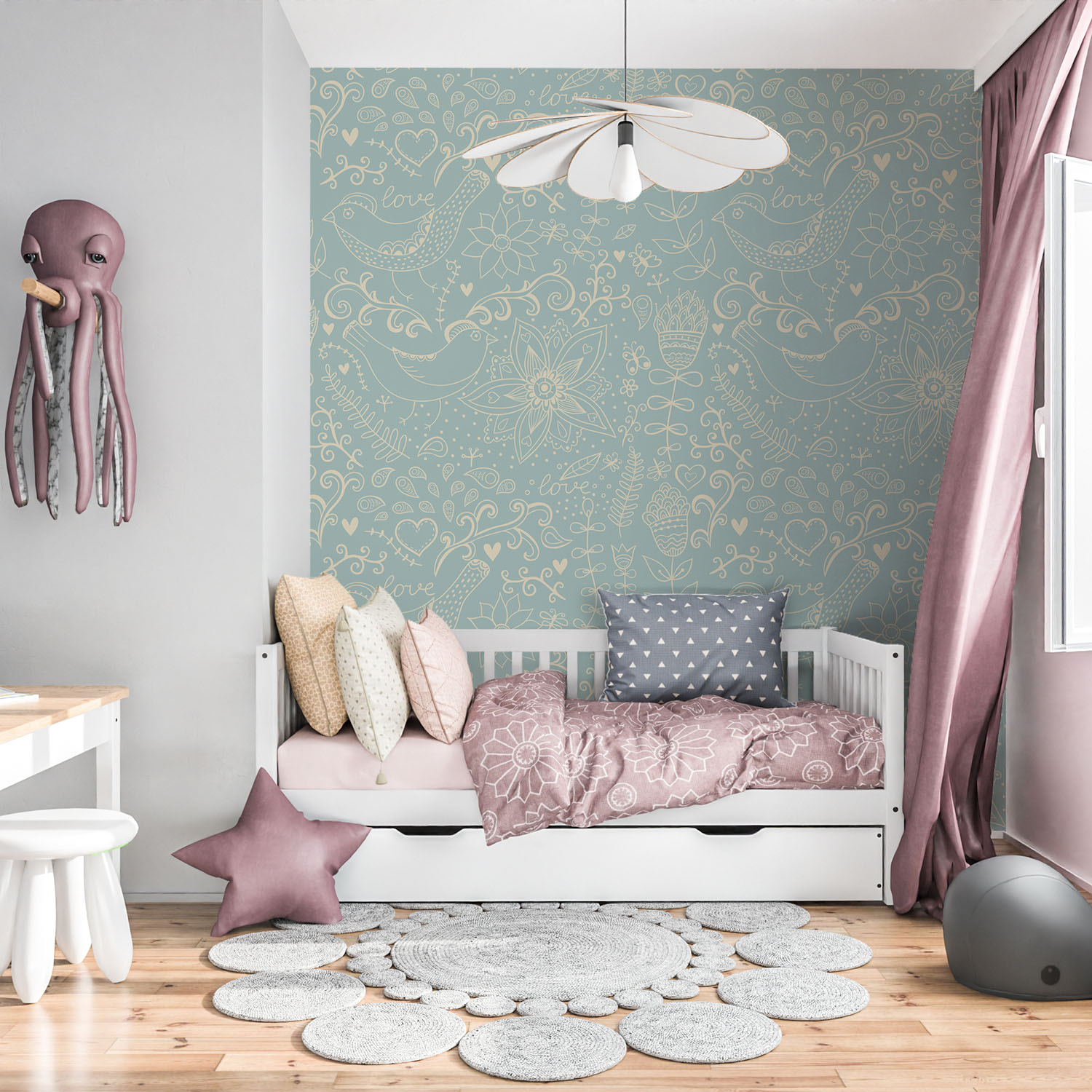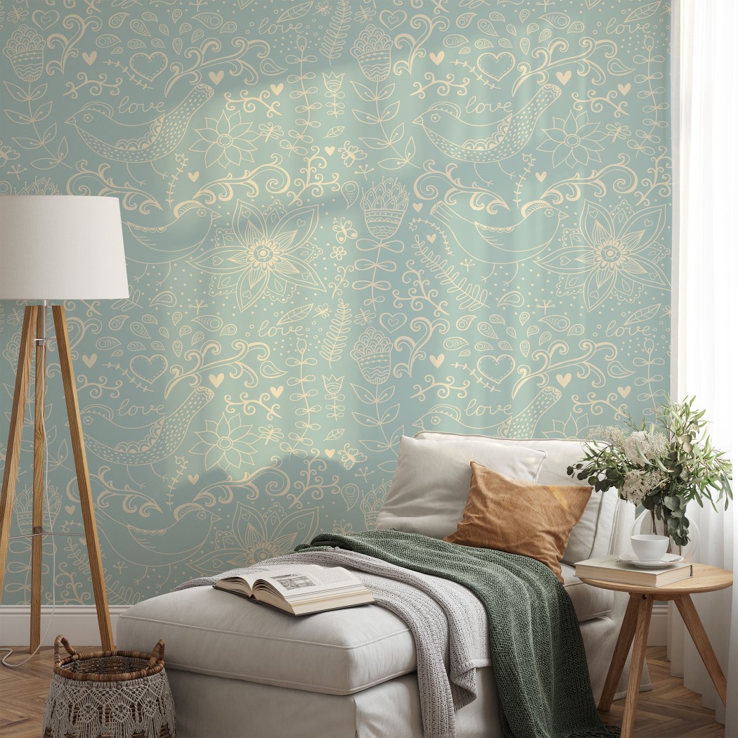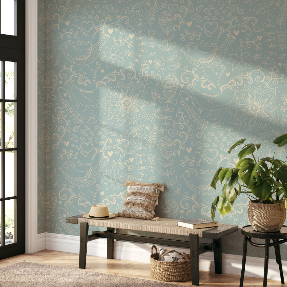 Lovely Print With Flowers & Birds – Wall Mural, PVC free Wall Covering