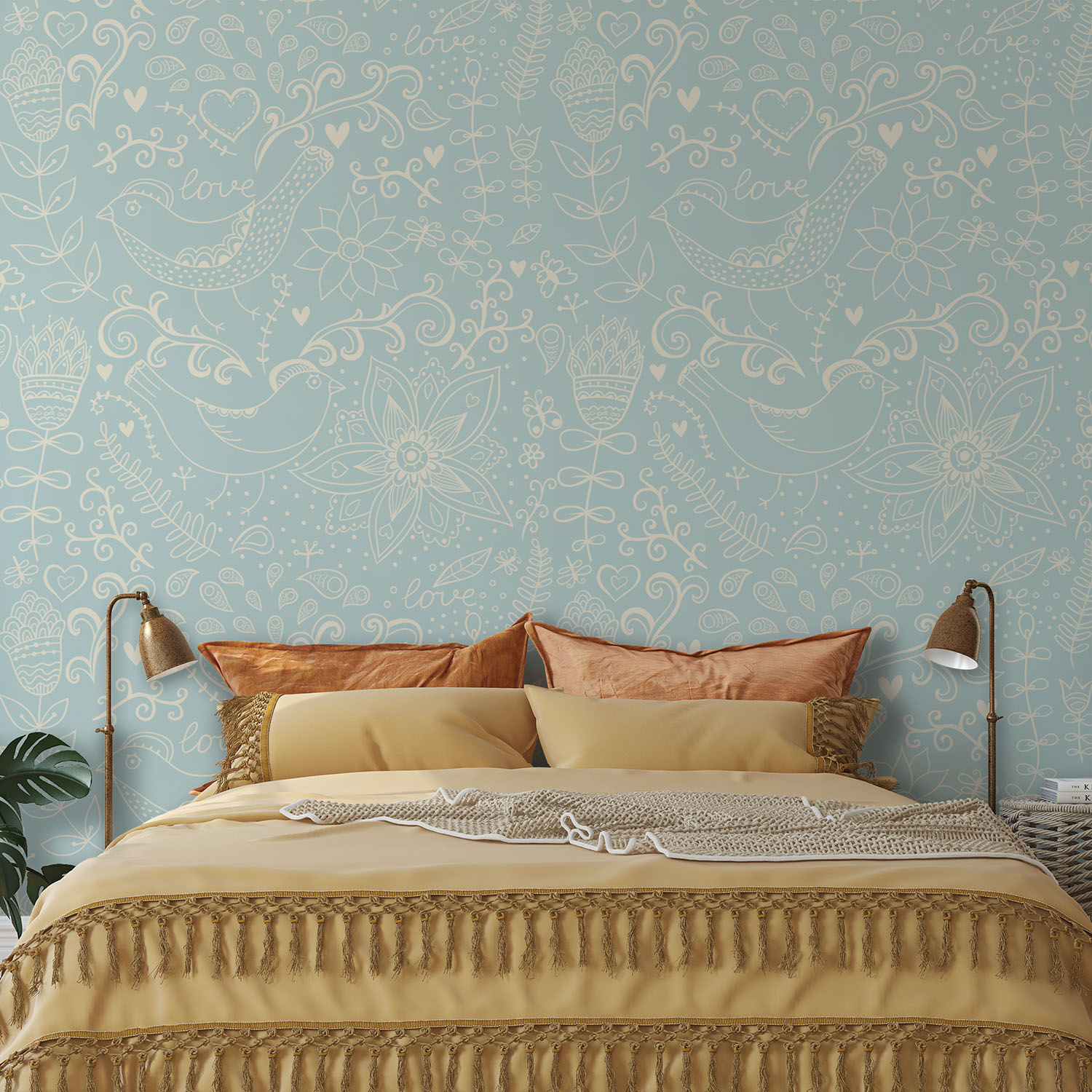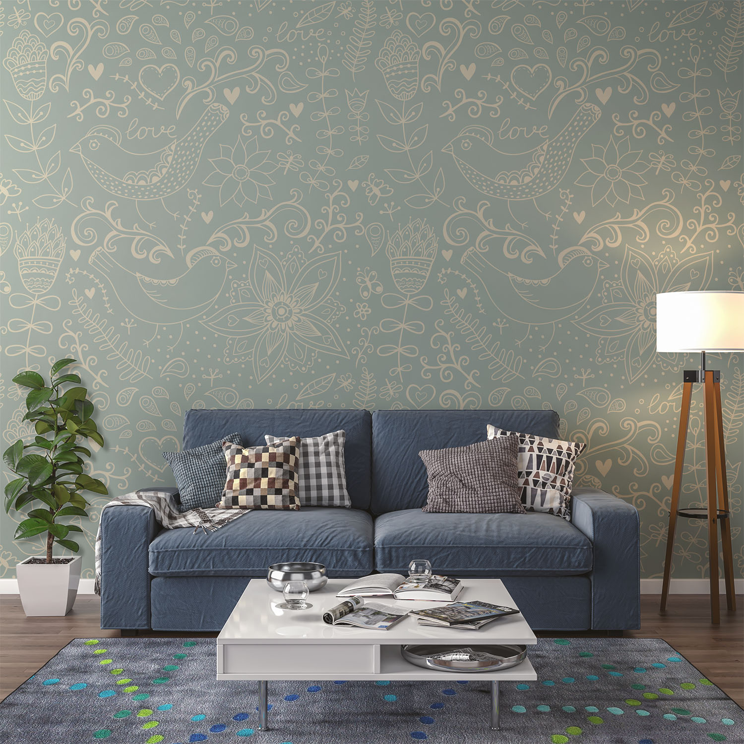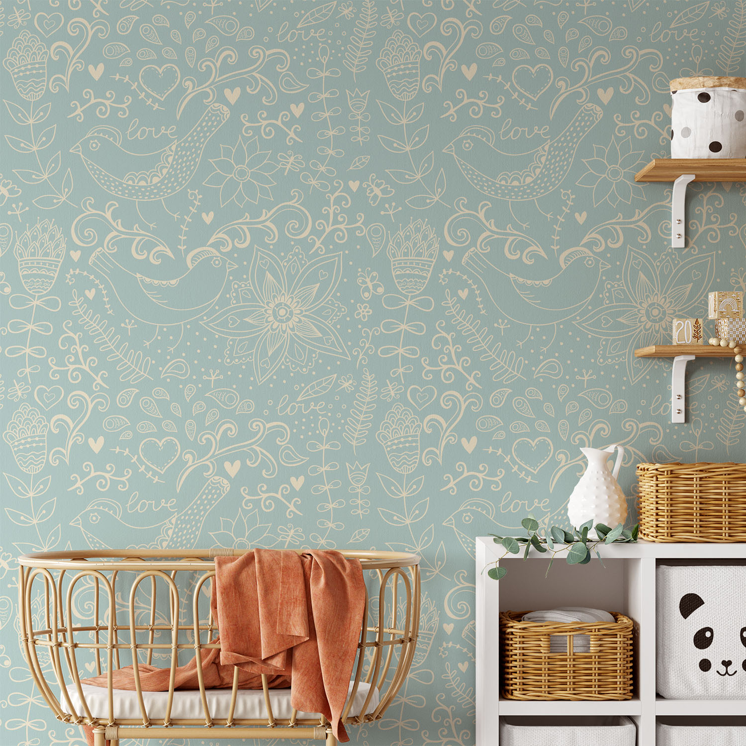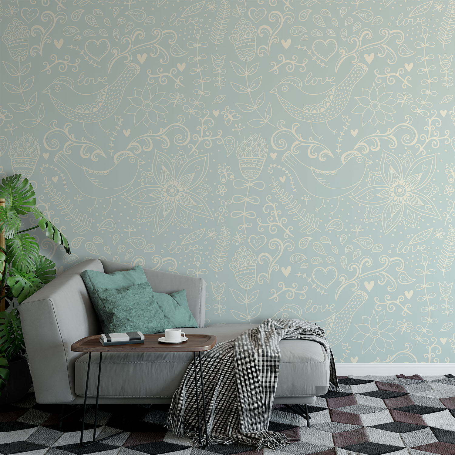Lovely Print With Flowers & Birds – Wall Mural, PVC free Wall Covering