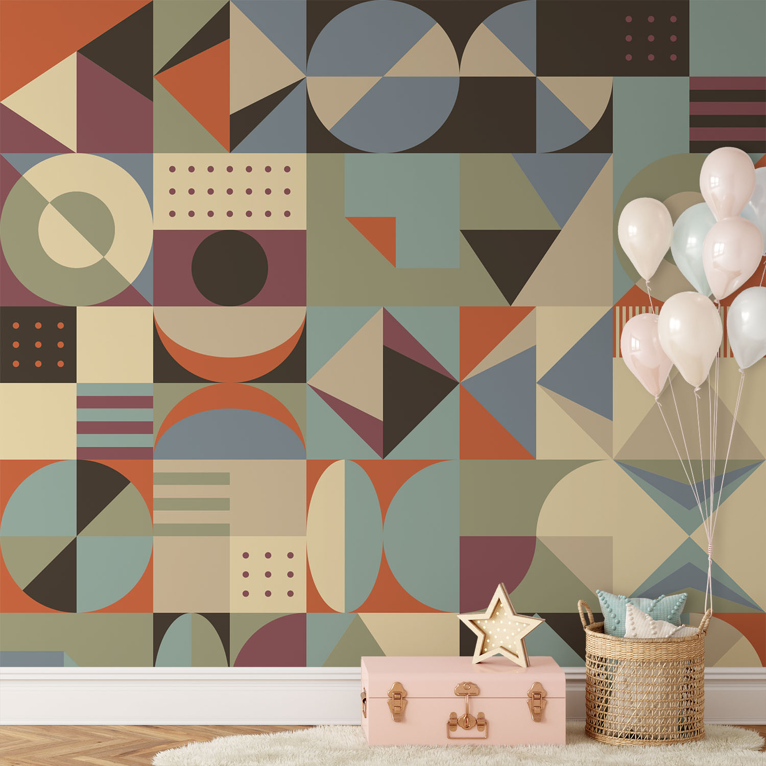 Be the first to review “Mindful Geometry In Blocks – Wall Mural, PVC free Wall Covering”