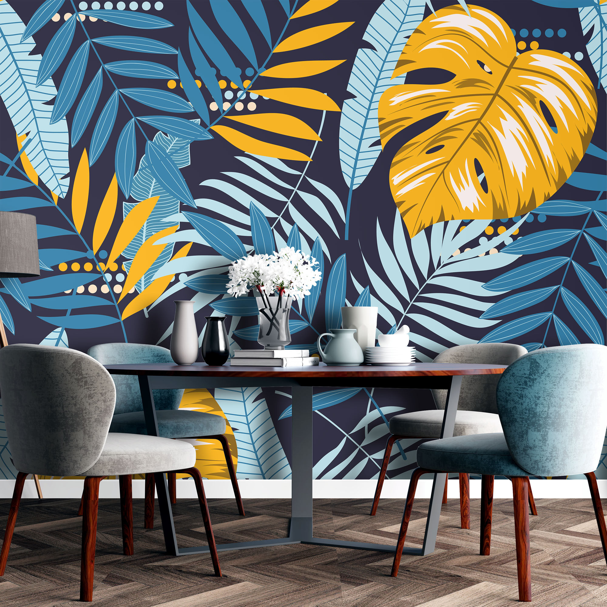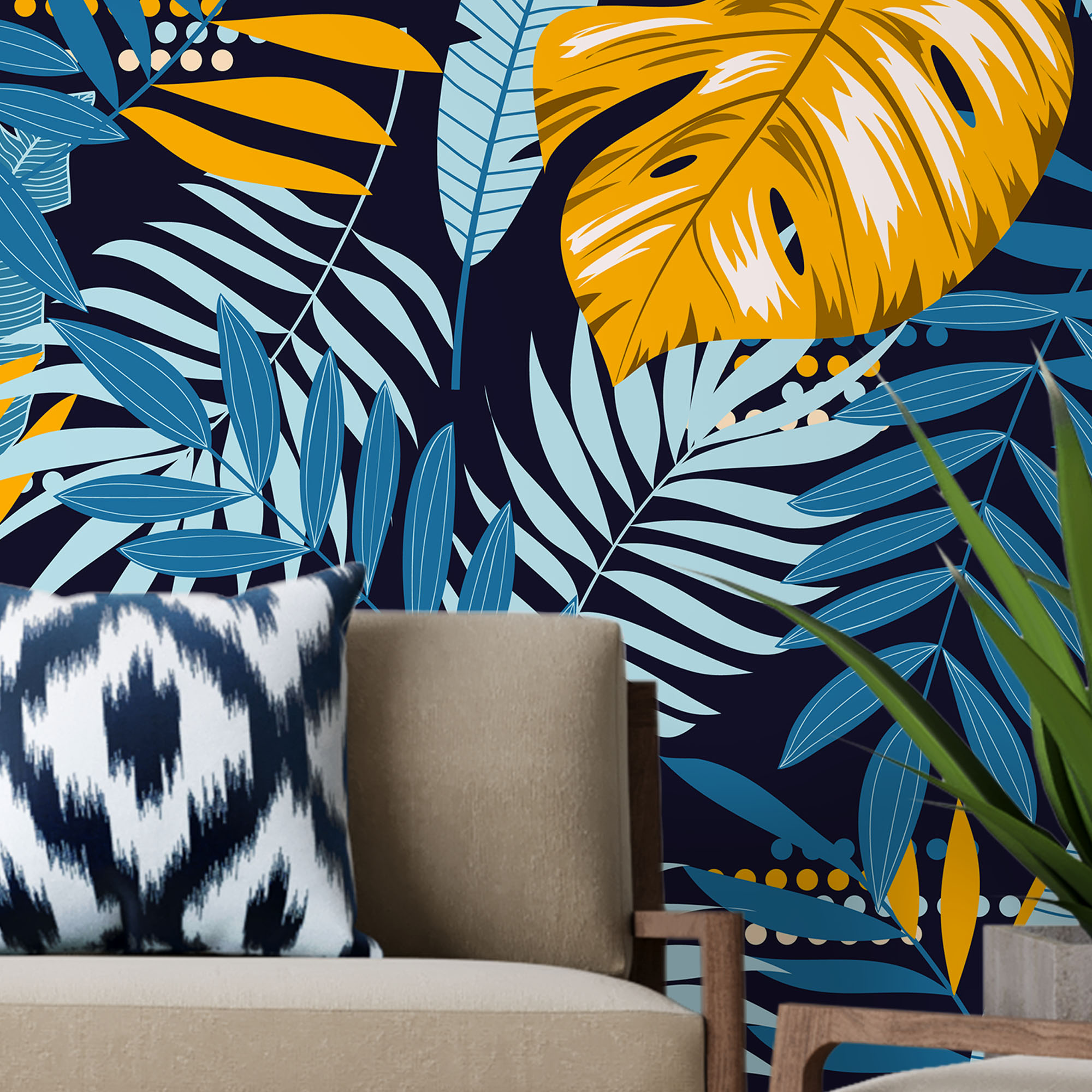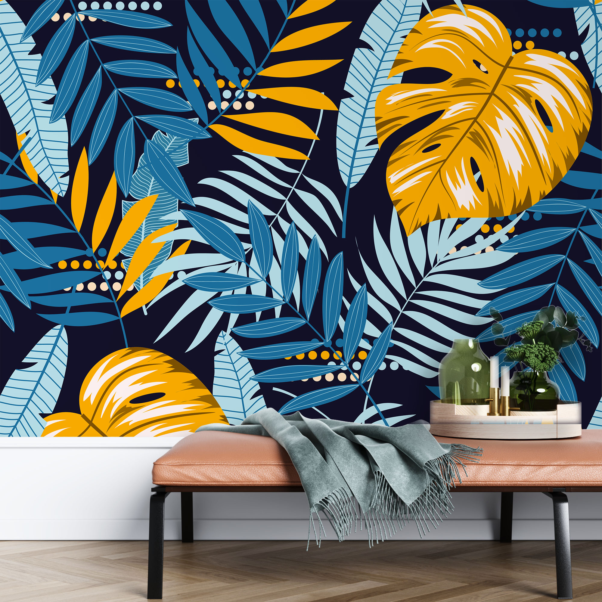 Monstera and leaves – Mural Wallpaper, PVC Free, Non-Toxic