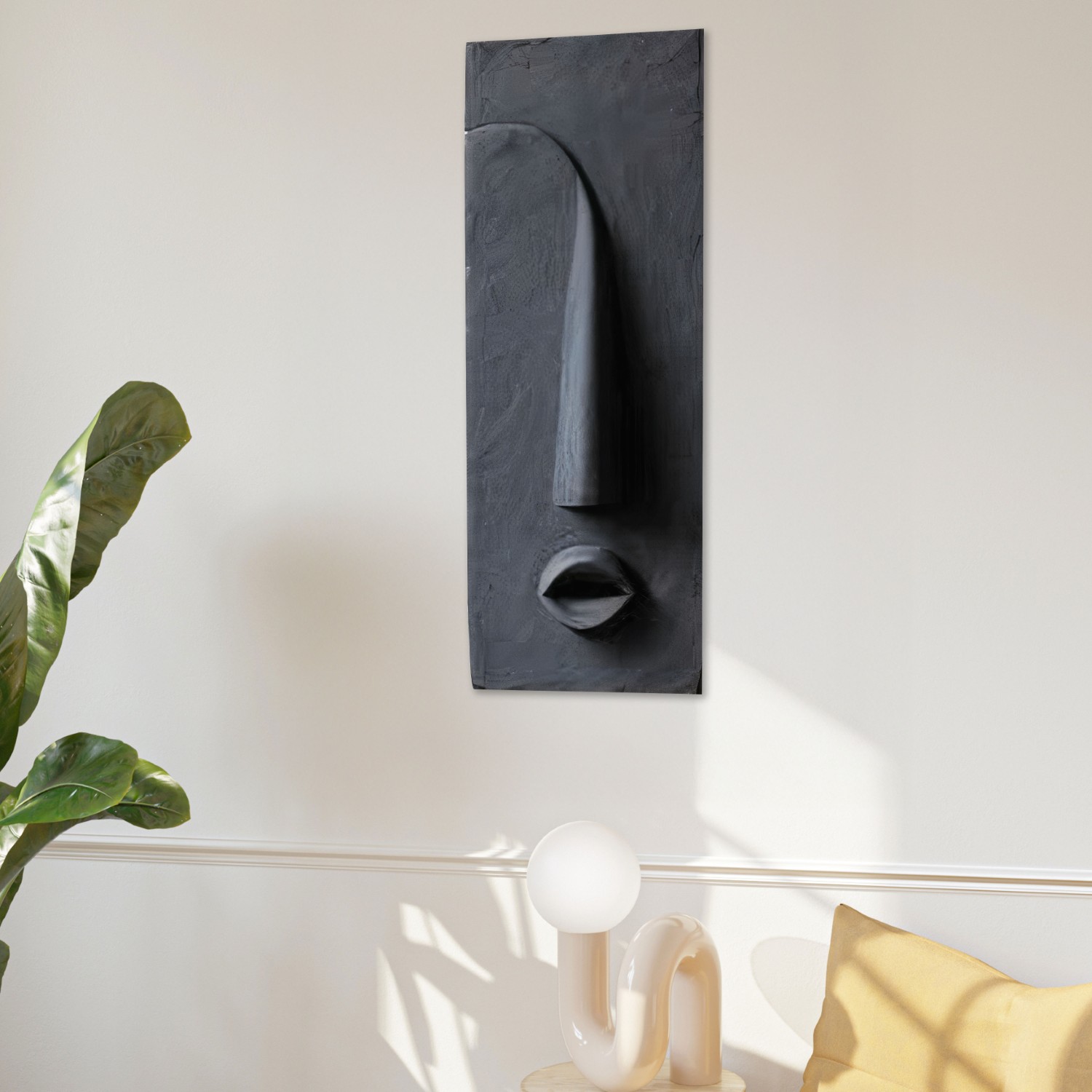 Minimalist 3D wall sculptures inspired by tribal abstraction. Each face captures a quiet emotion — not through expression, but through form.