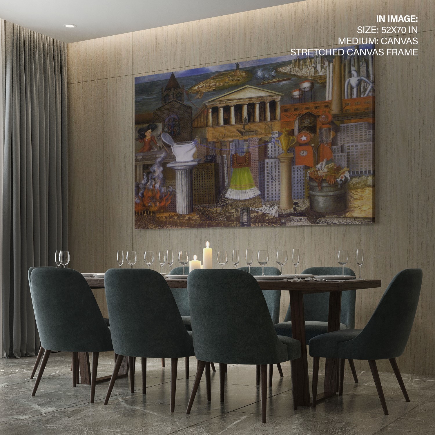 We recommend using Canvas for prominent living spaces (living room, dining hall, bedrooms), Metal/Glass for modern aesthetics, and Art Paper for galleries, bathrooms, kitchens, and other less formal areas.