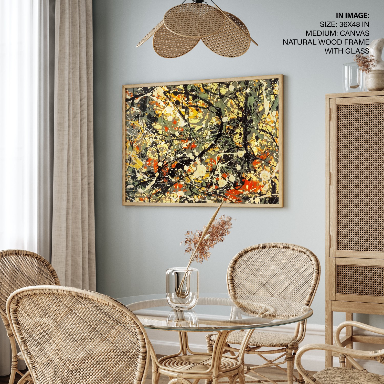 We recommend using Canvas for prominent living spaces (living room, dining hall, bedrooms), Metal/Glass for modern aesthetics, and Art Paper for galleries, bathrooms, kitchens, and other less formal areas.