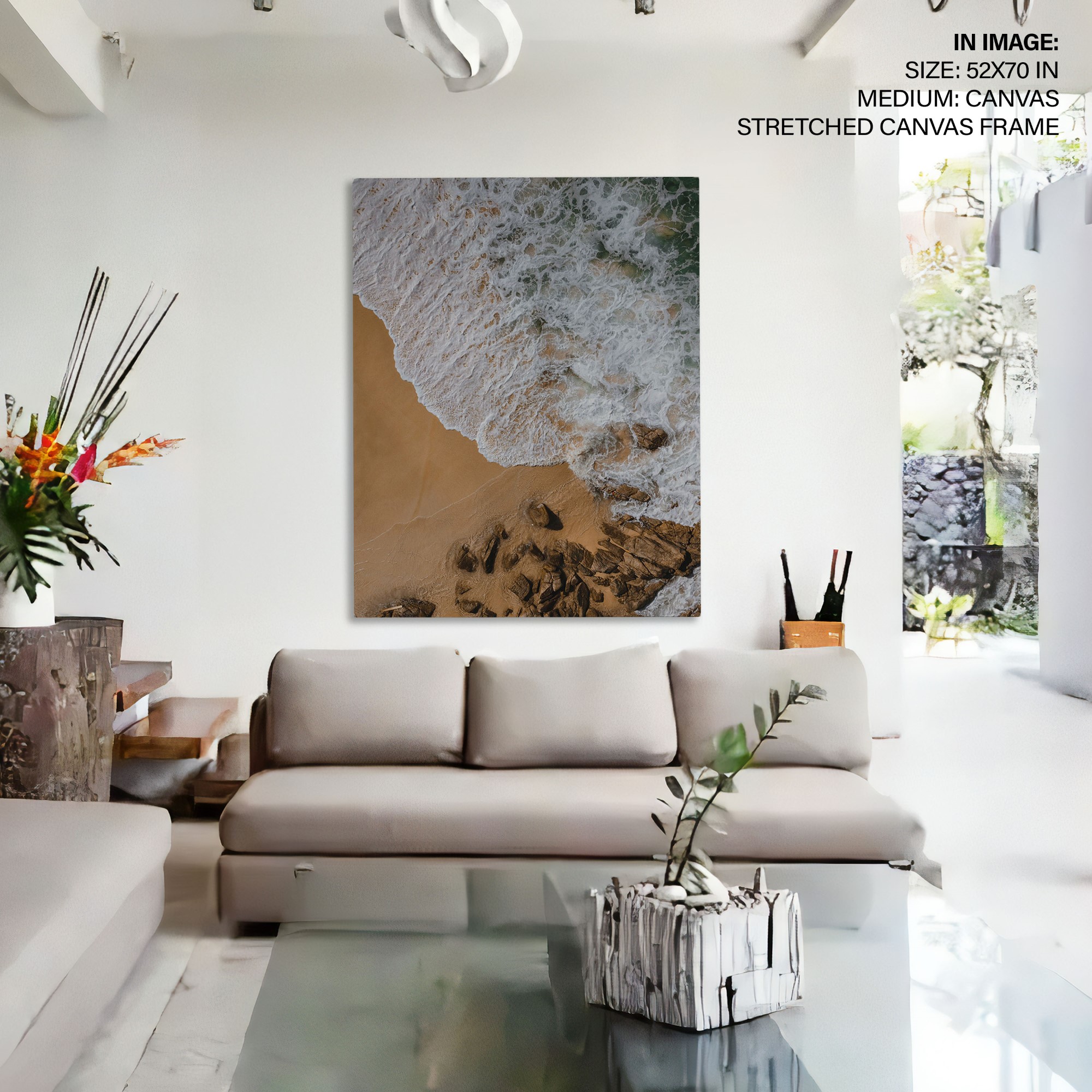 Be the first to review “Ocean waves on the beach with rocks aerial view”