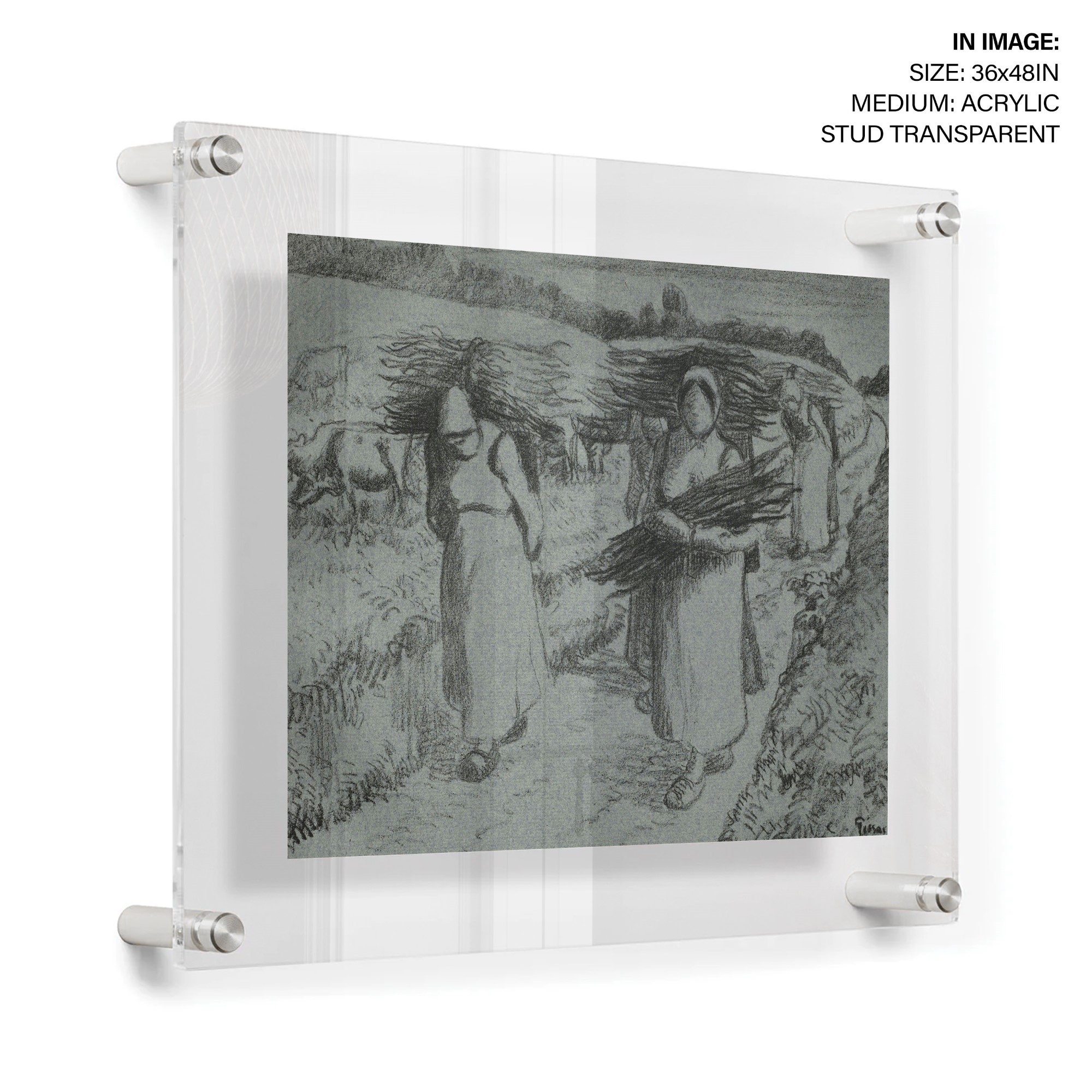 Peasants Carrying Fagots is a lithograph print created by French artist Camille Pissarro in c. 1896. The artwork depicts a group of peasants carrying bundles of sticks on their backs, walking along a path in a rural landscape. Pissarro was a leading figure of the Impressionist movement and is known for his depictions of rural life and landscapes. The print is part of the PR – Lithograph collection at the Cleveland Museum of Art and was
