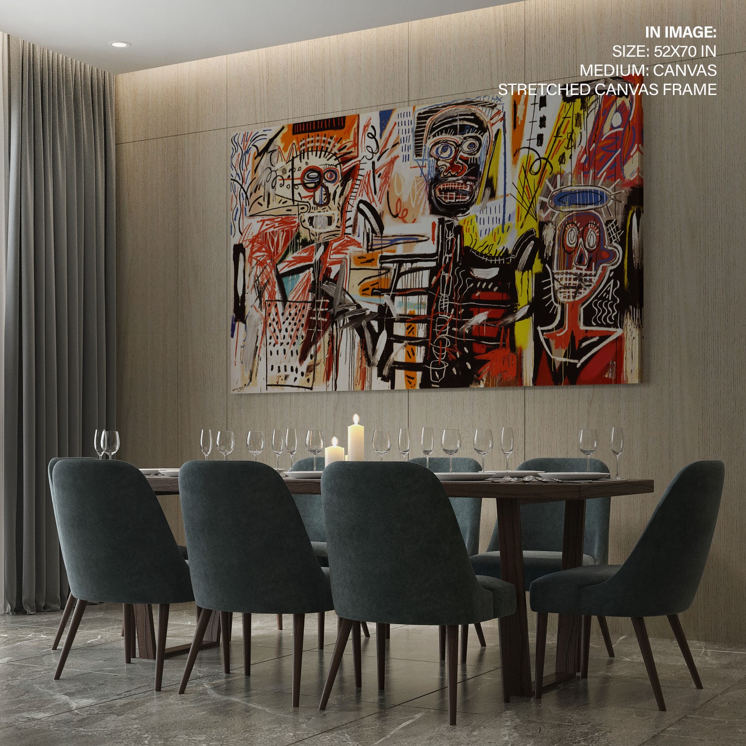 We recommend using Canvas for prominent living spaces (living room, dining hall, bedrooms), Metal/Glass for modern aesthetics, and Art Paper for galleries, bathrooms, kitchens, and other less formal areas.