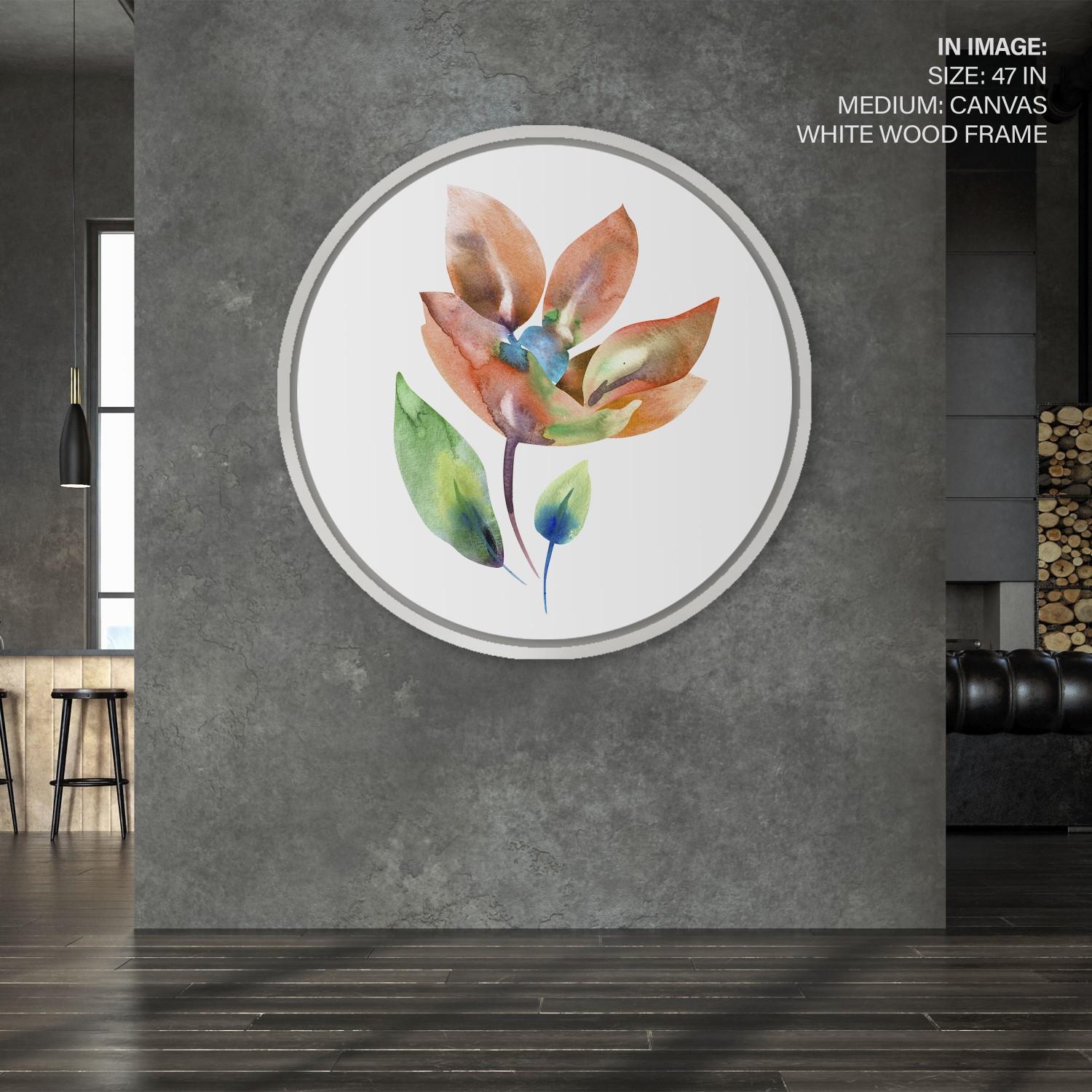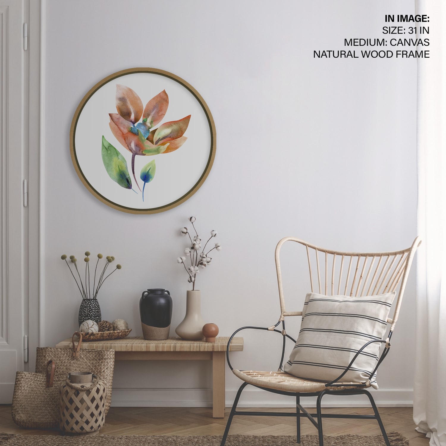 Portrait flower leaf – Circular Wooden Frame