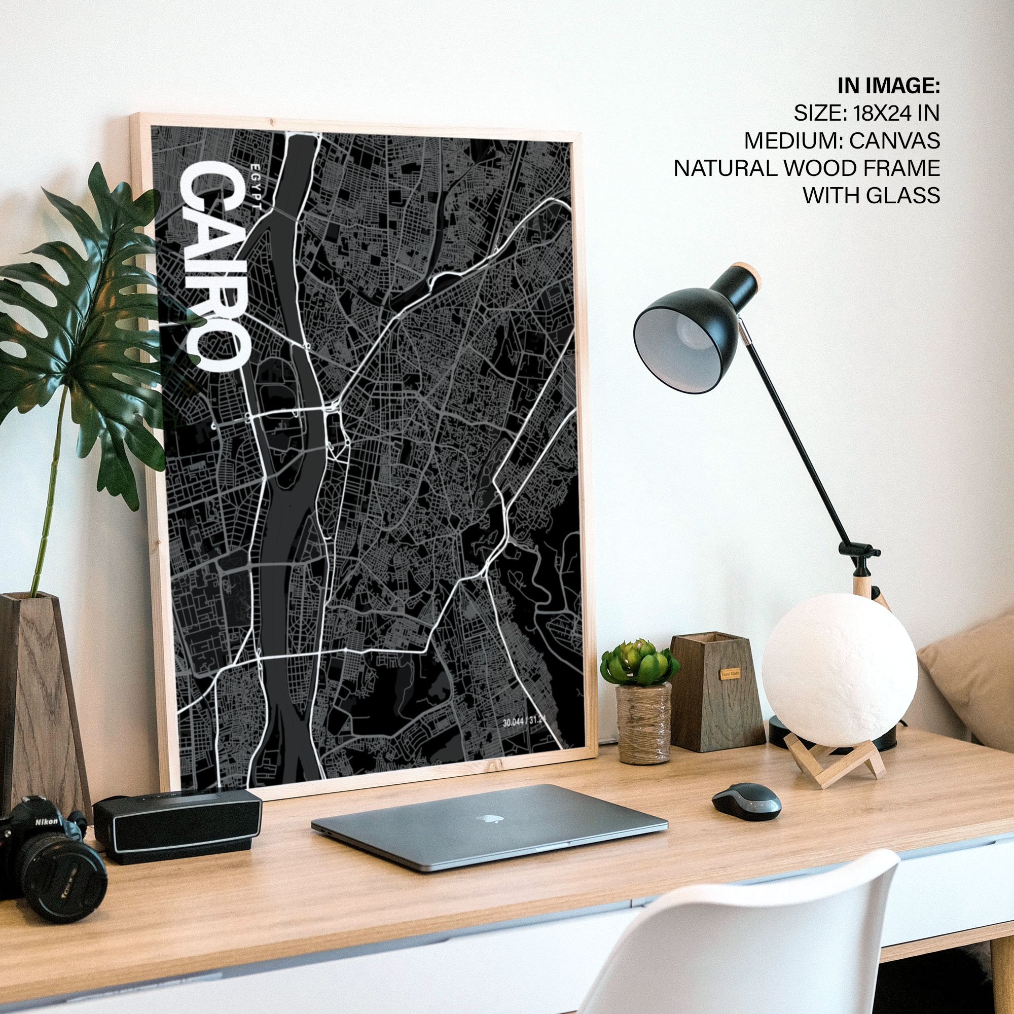 Cairo Map Art, Black & White, Poster style framed wall art