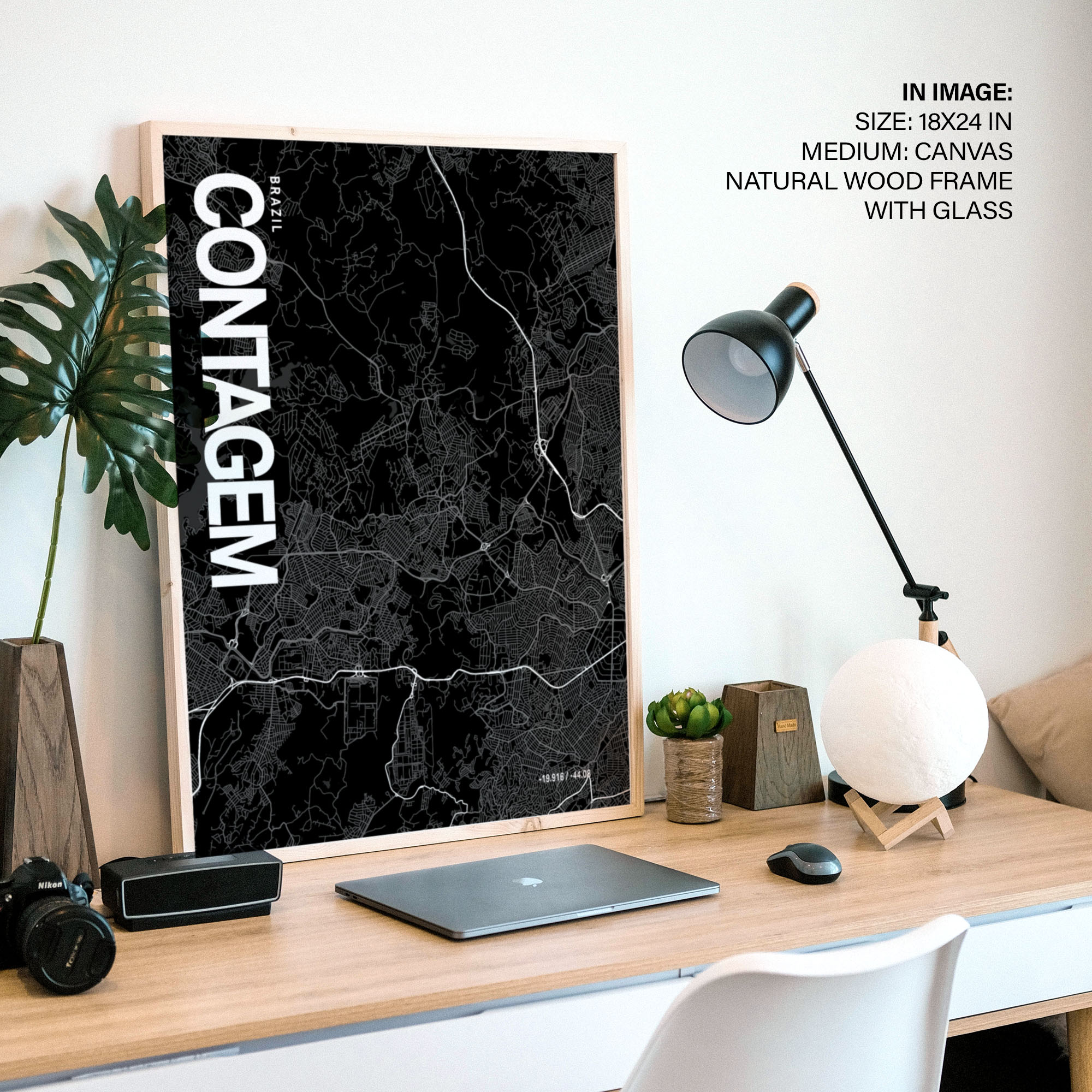Be the first to review “Contagem Map Art, Black & White, Poster style framed wall art”