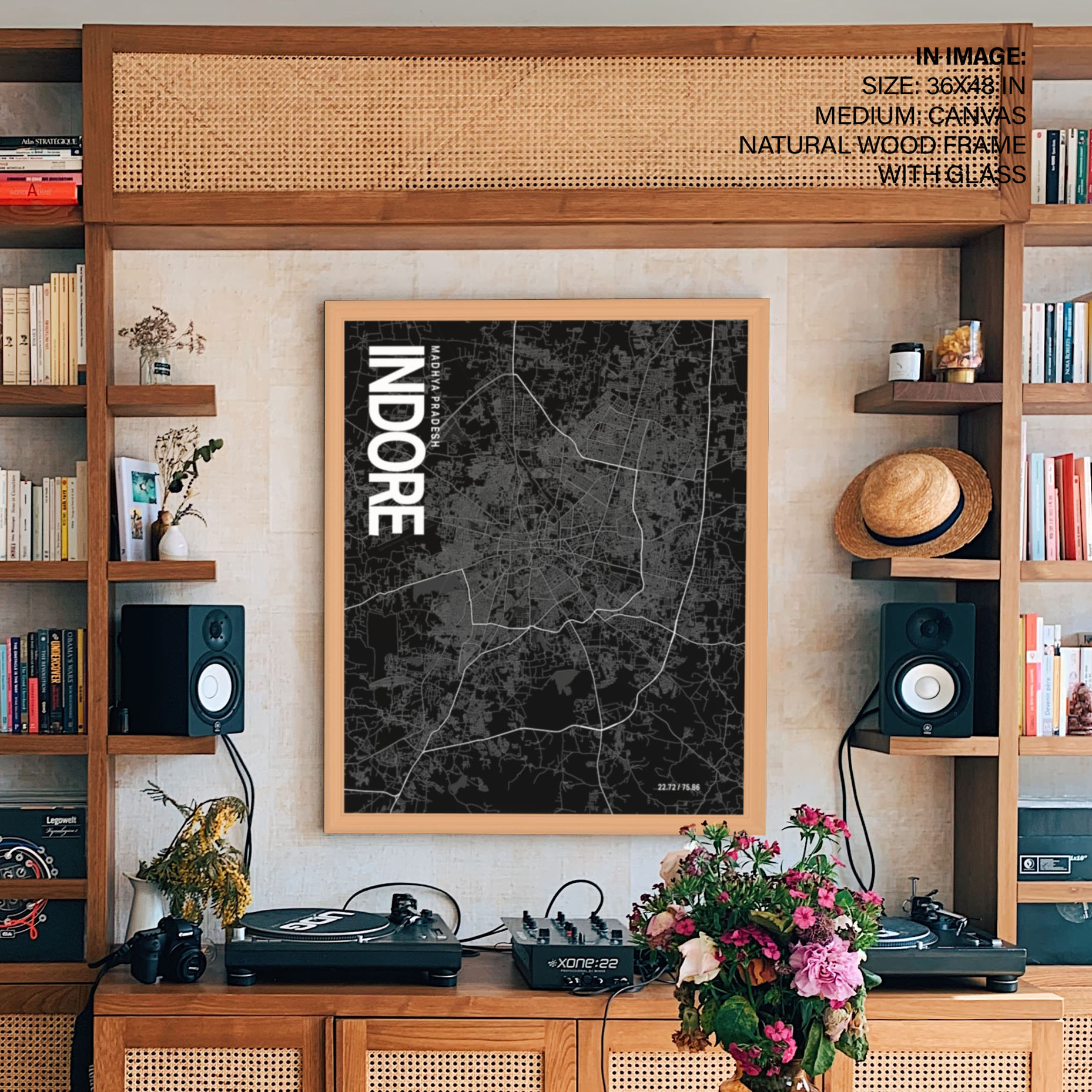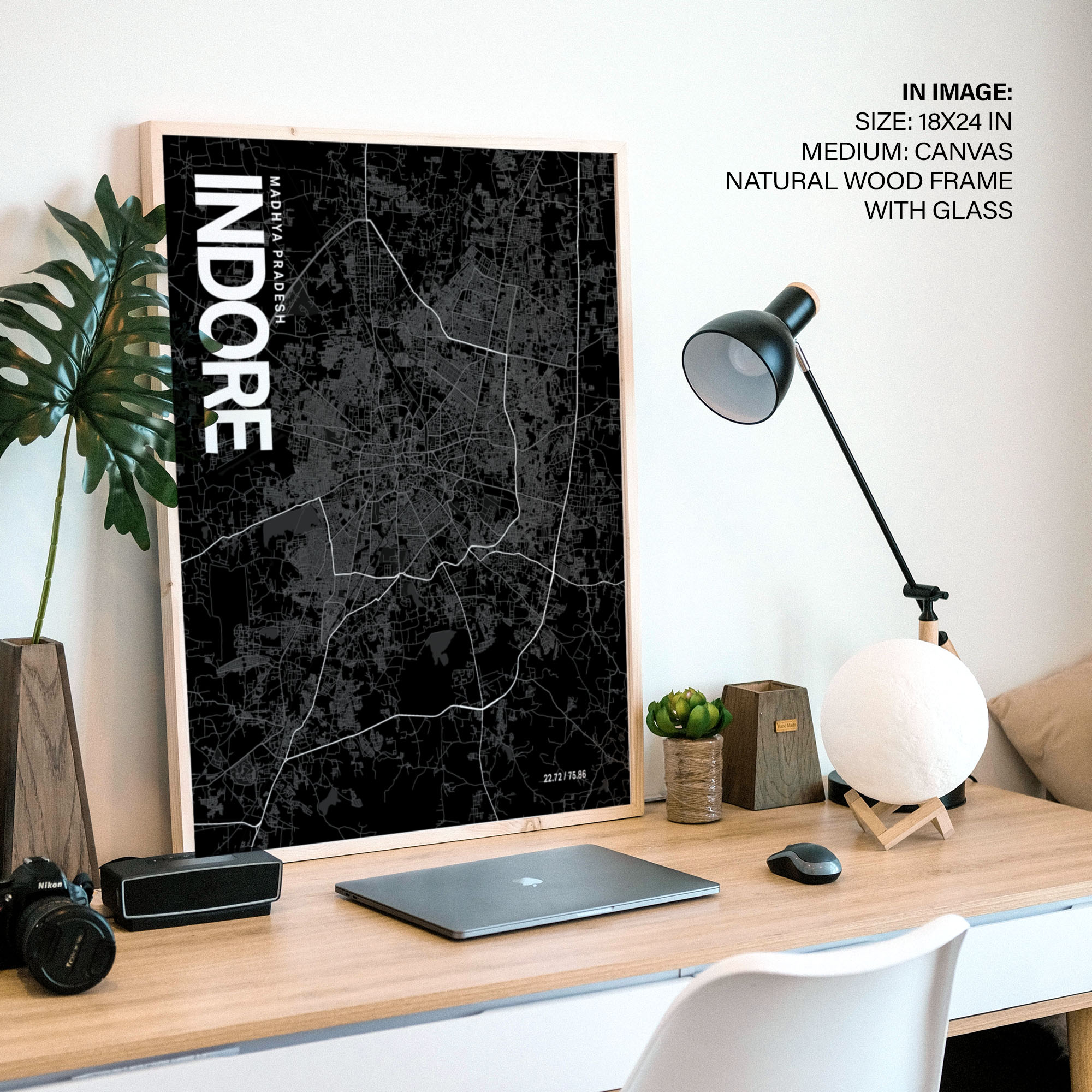 Indore Map Art, Black & White, Poster style framed wall art