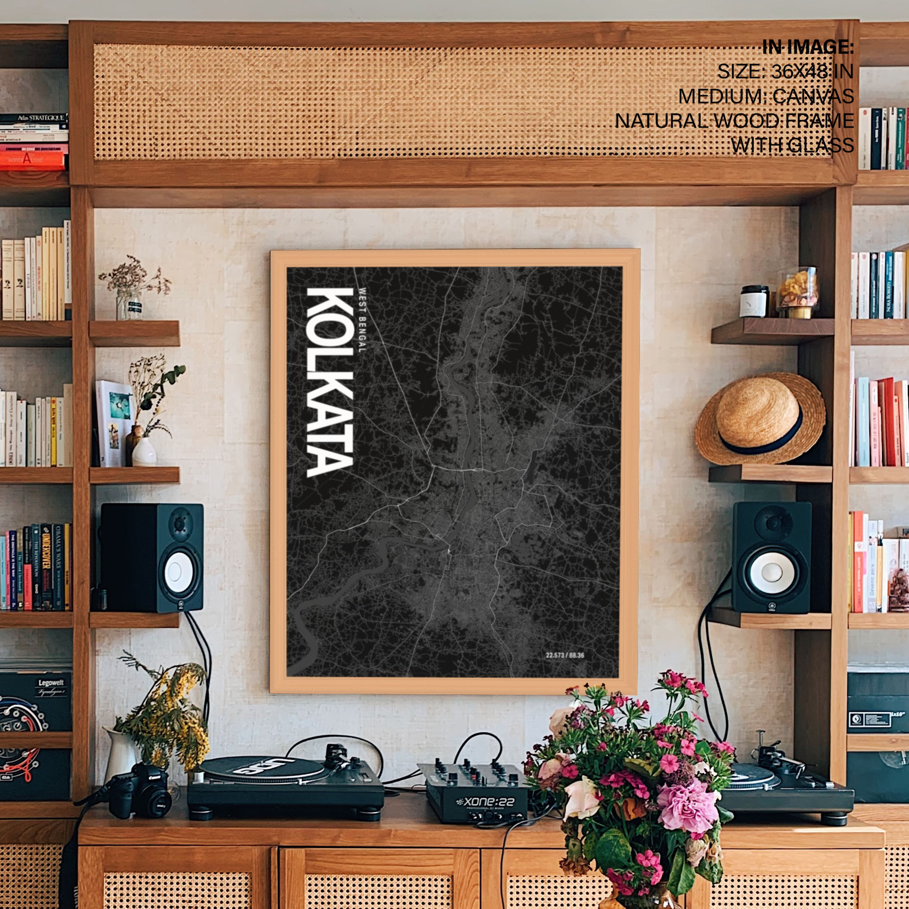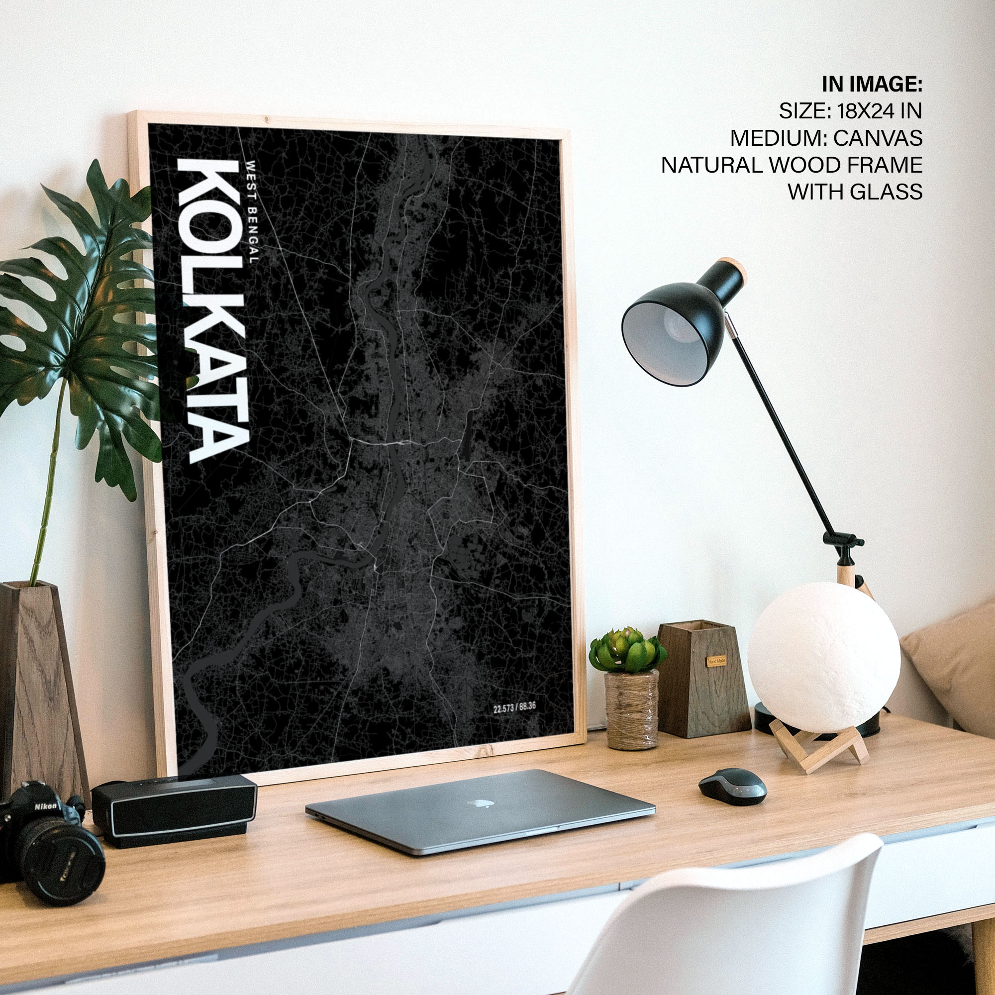 Kolkata Map Art, Black & White, Poster style framed wall art
