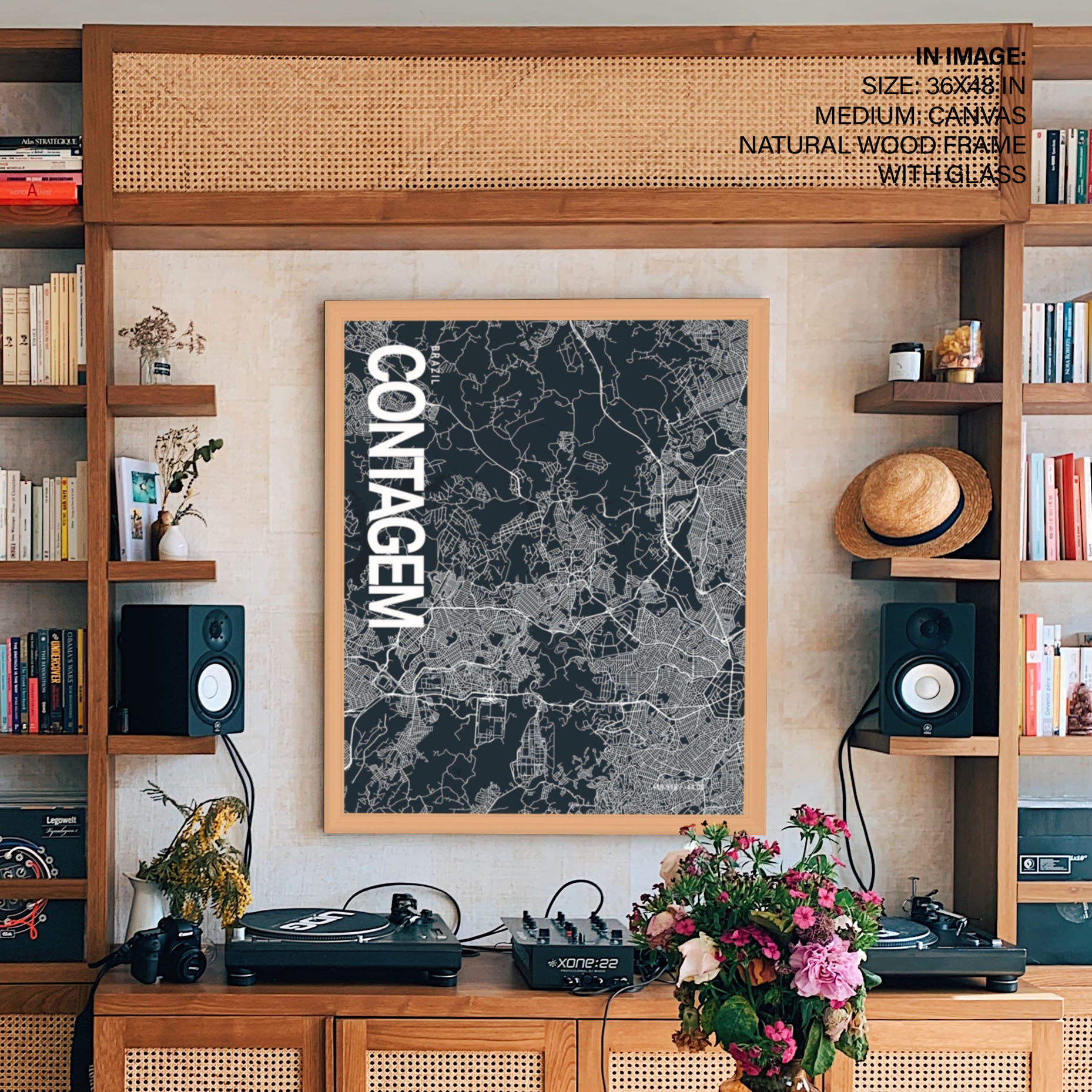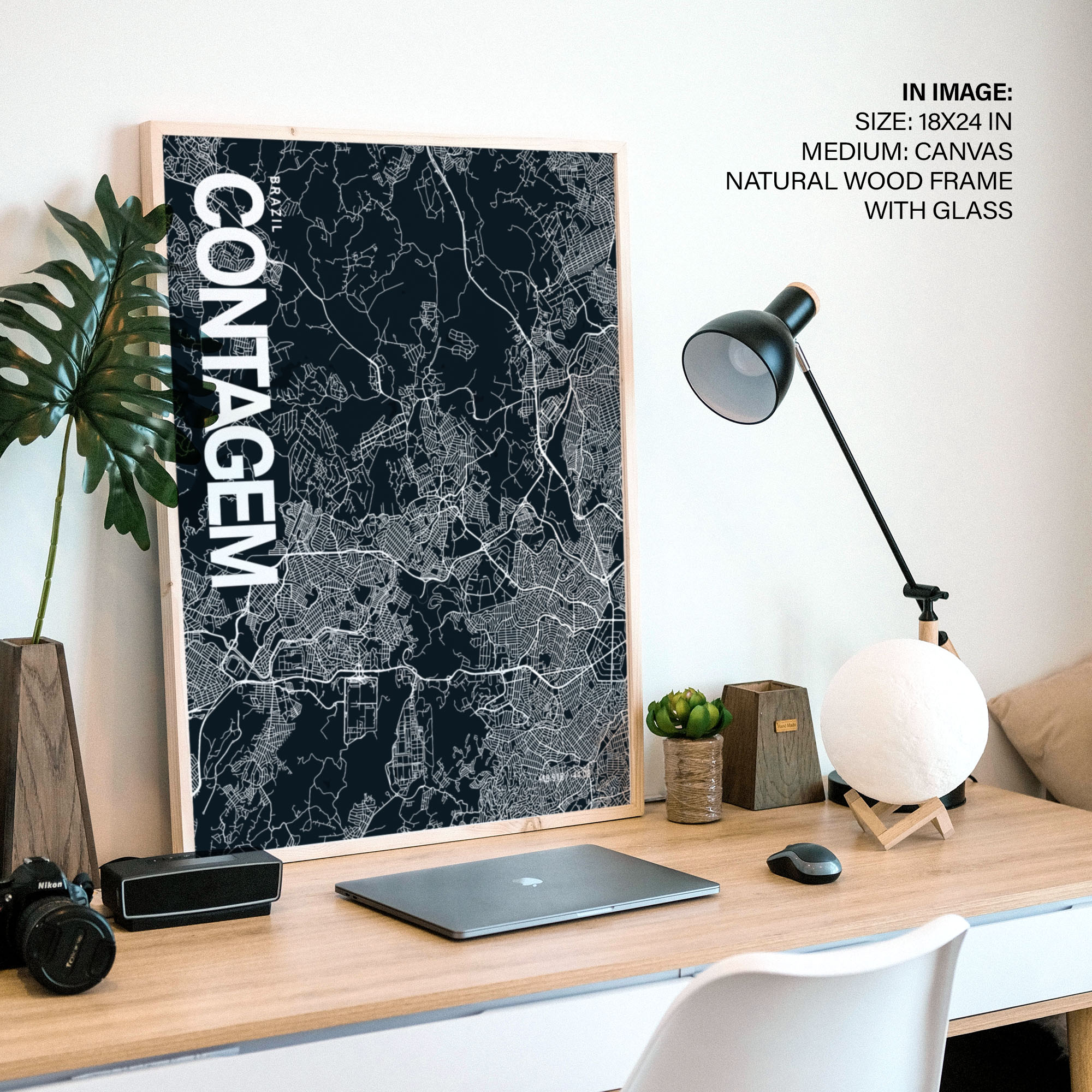 Contagem Map Art, Dark Blue poster style, Ready to hang wall art