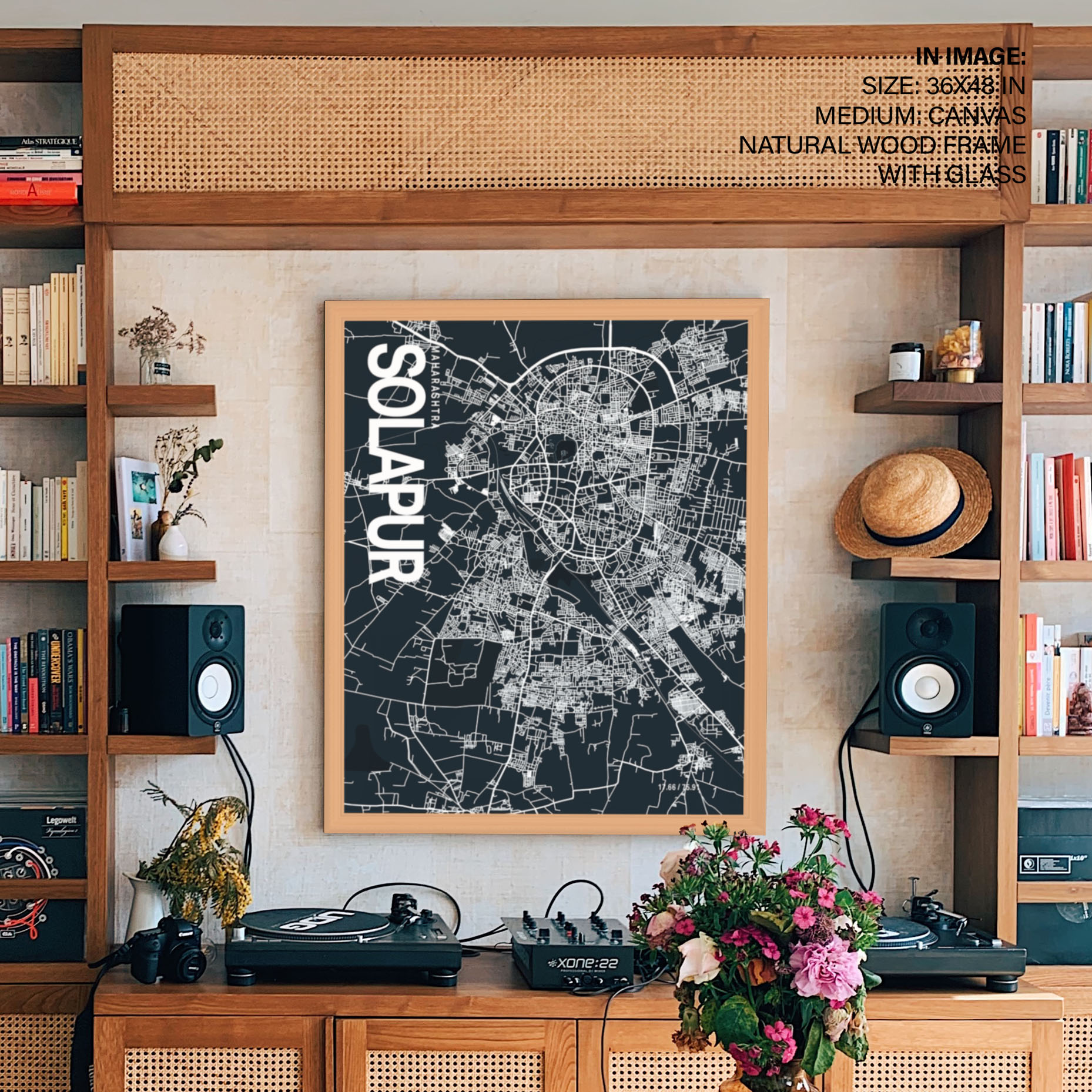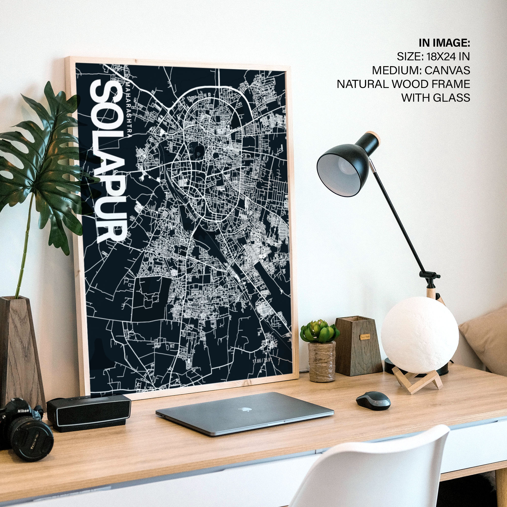 Solapur Map Art, Dark Blue poster style, Ready to hang wall art