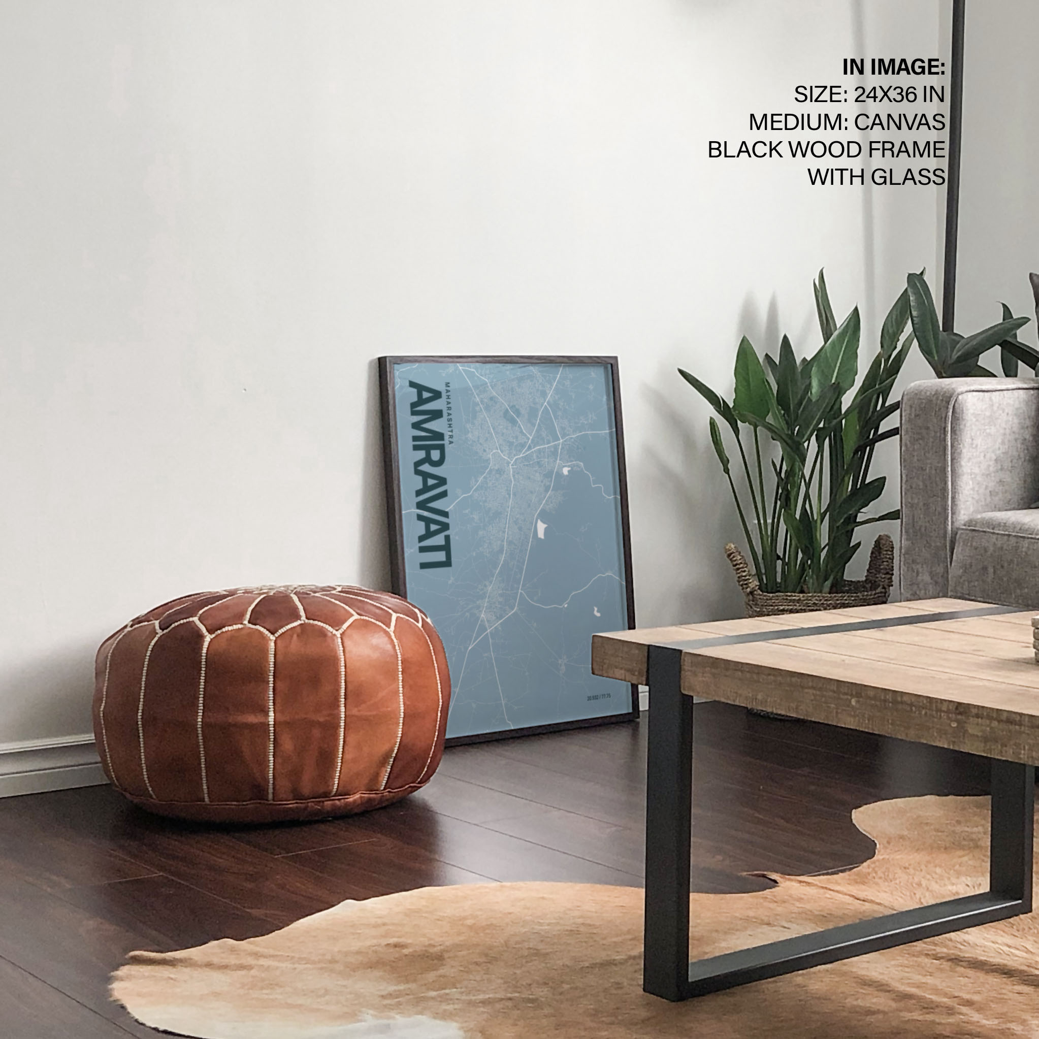 Amravati Blue Map Art, Ready to hang, Framed Wall art