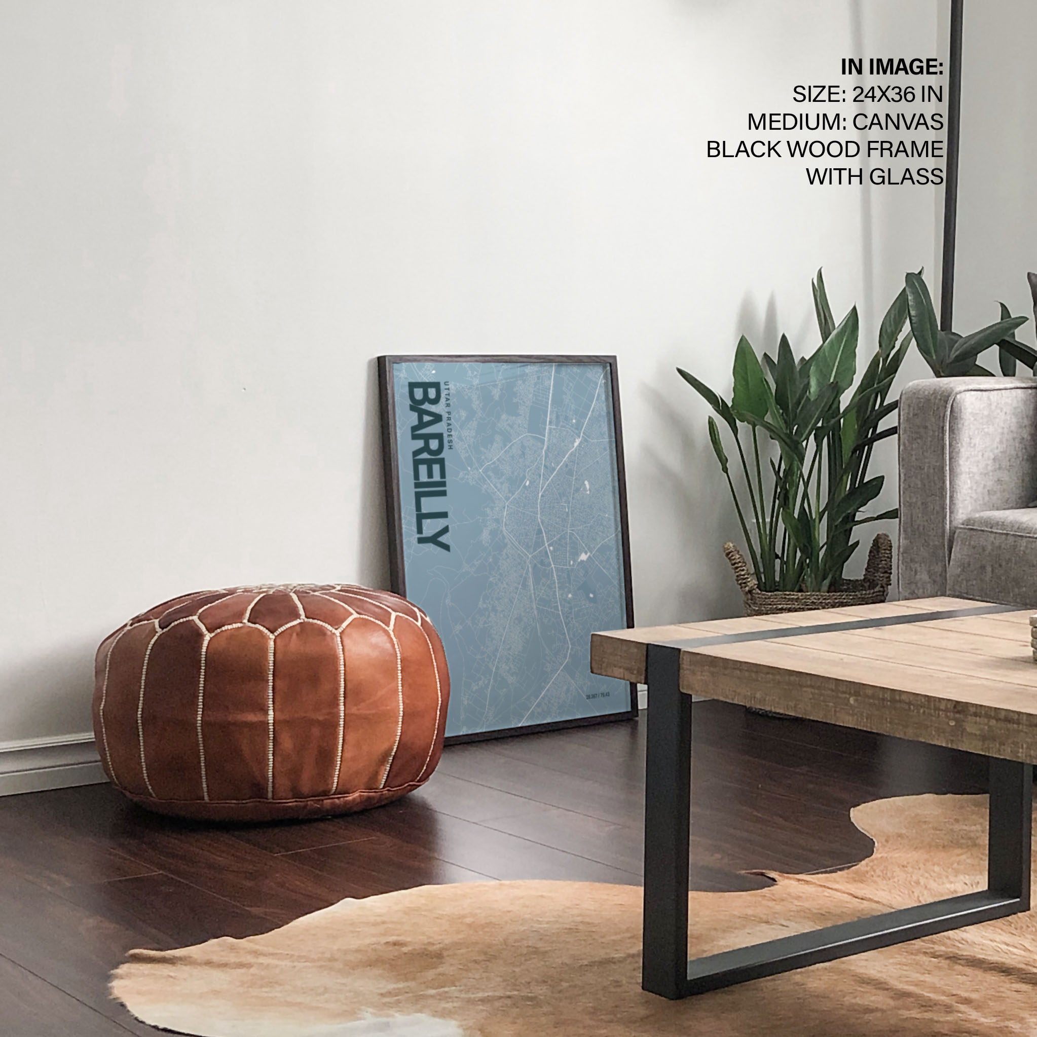 Bareilly Blue Map Art, Ready to hang, Framed Wall art