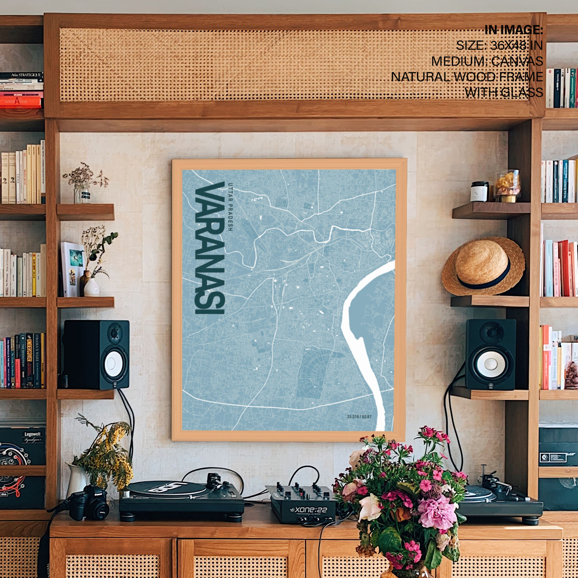 Varanasi Blue Map Art, Poster style, Framed & Ready to hang wall art