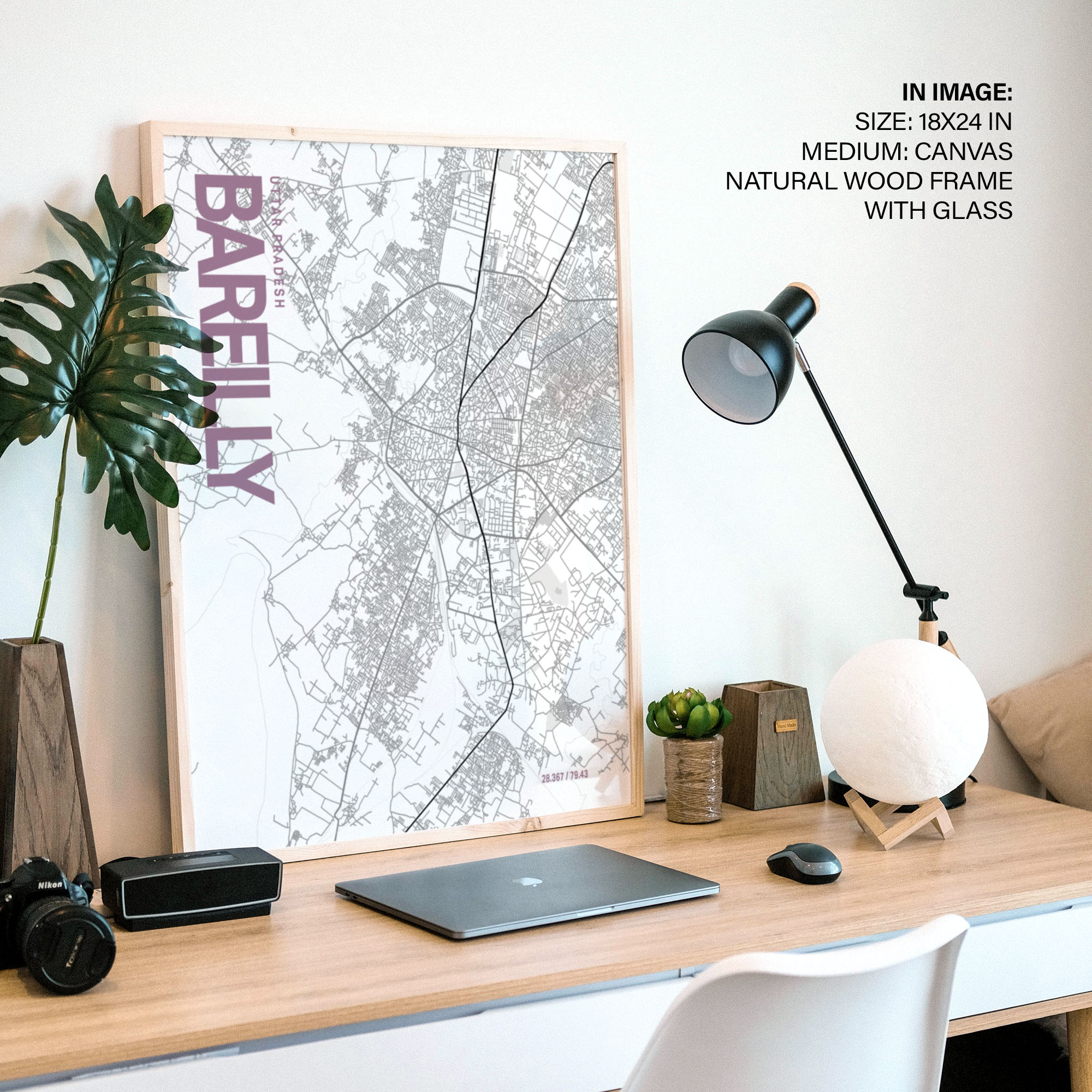 Bareilly White Map Art, Poster style, Framed & Ready to hang wall art