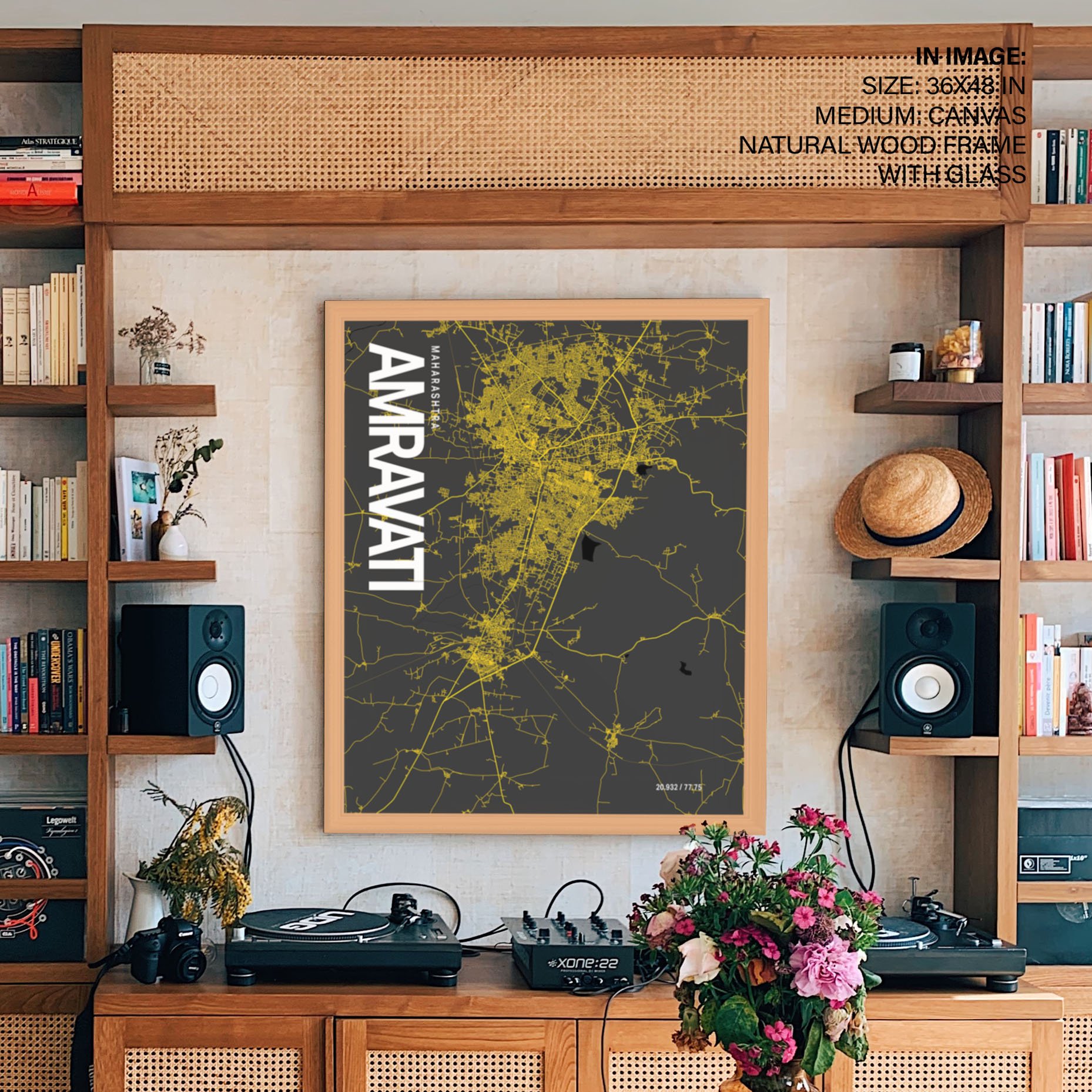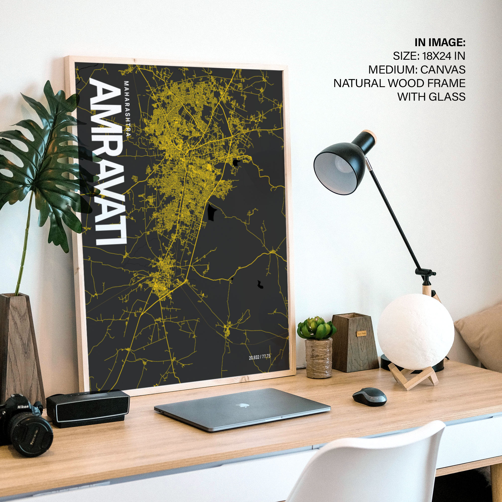 Amravati Map Art, Yellow-Black, Poster style, Framed & Ready to hang wall art