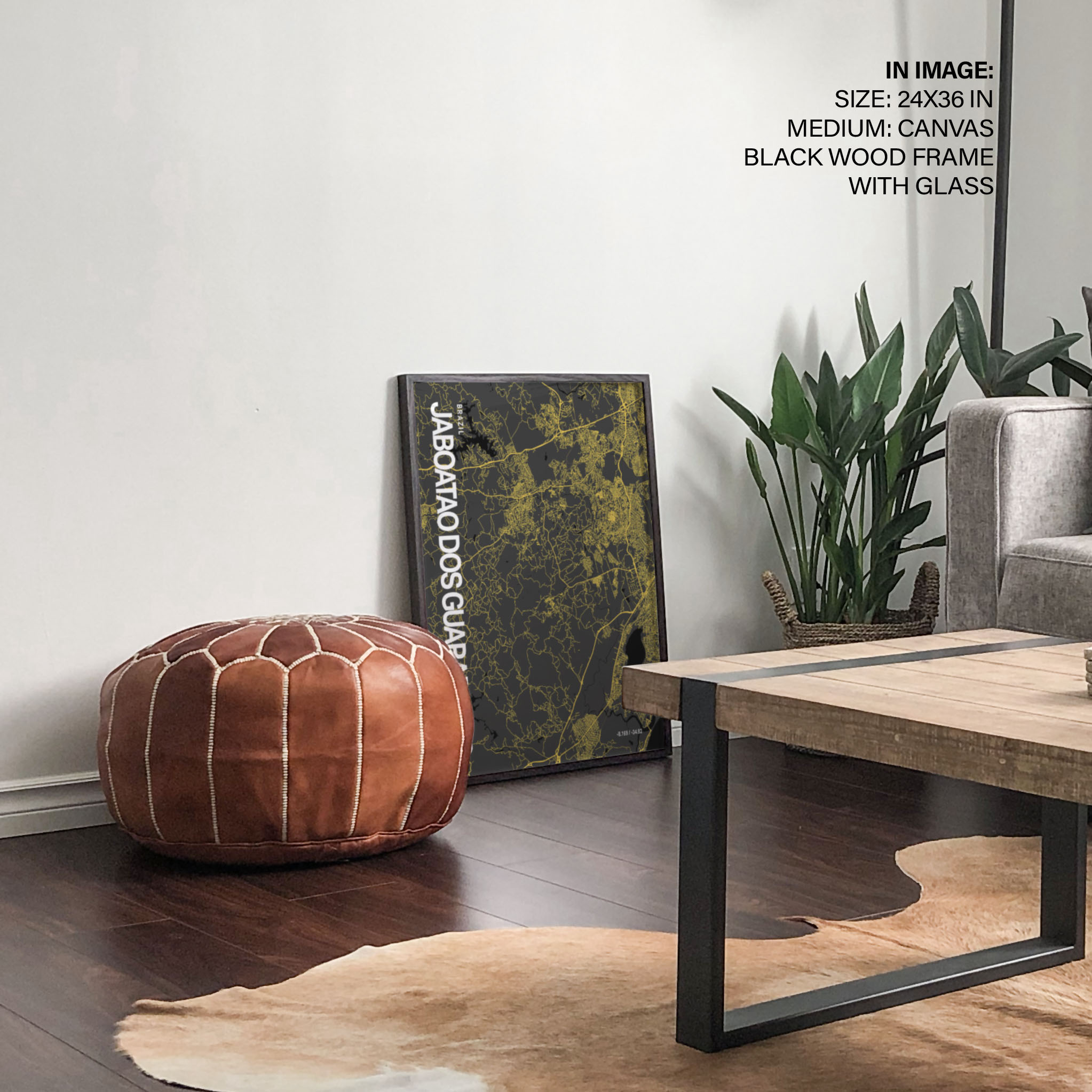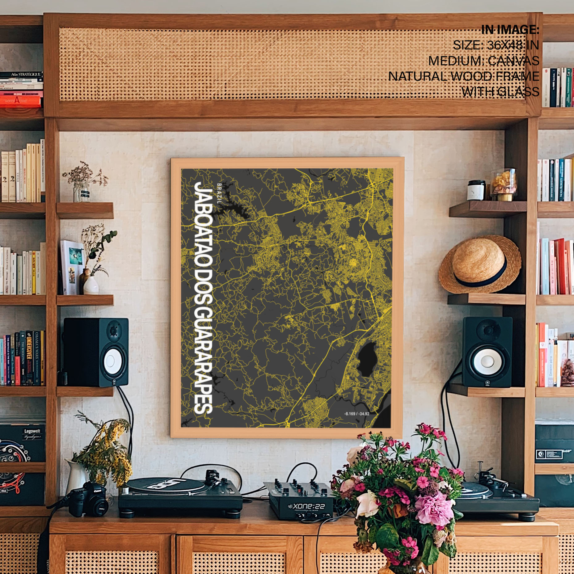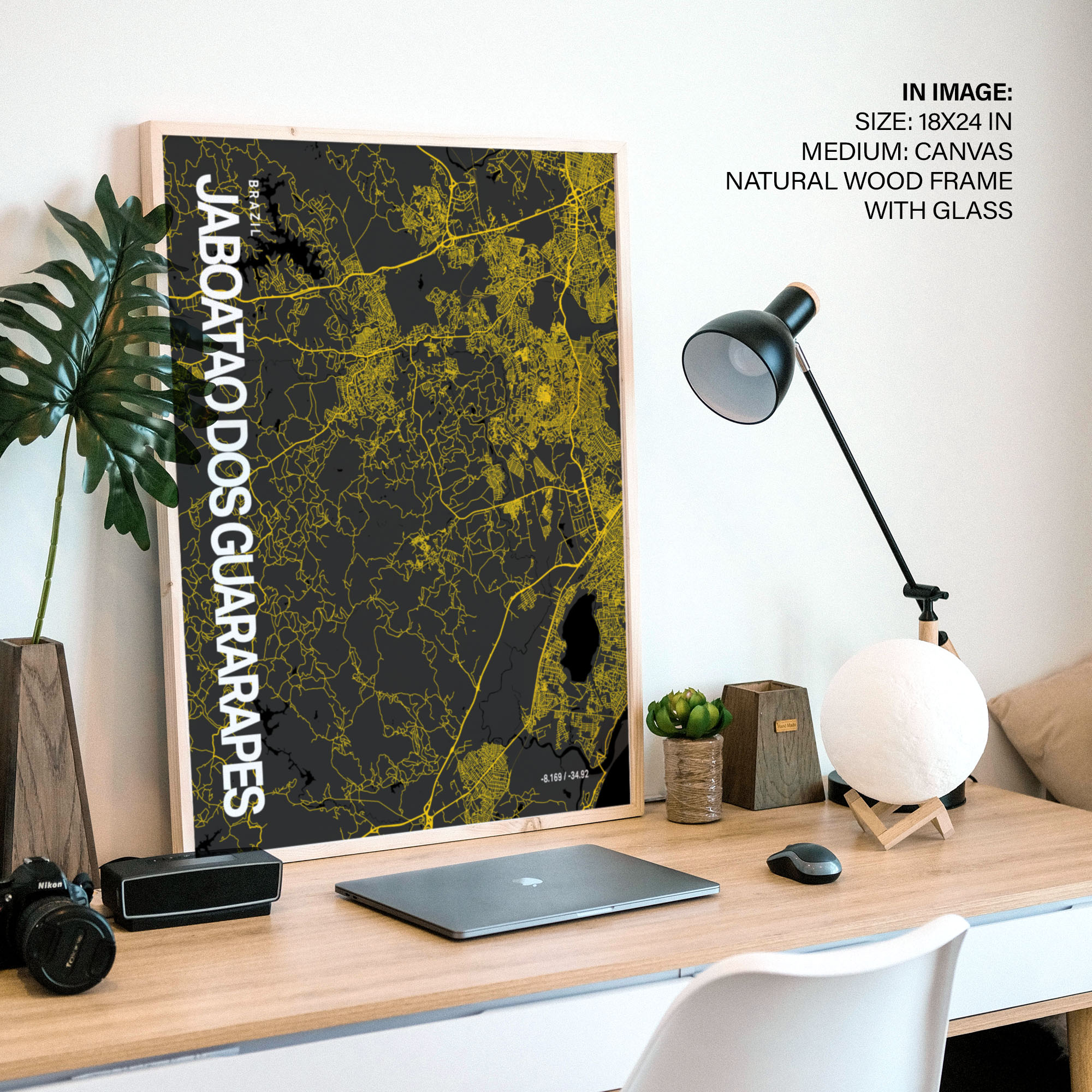 Jaboatão Dos Guararapes Map Art, Yellow-Black, Poster style, Framed & Ready to hang wall art