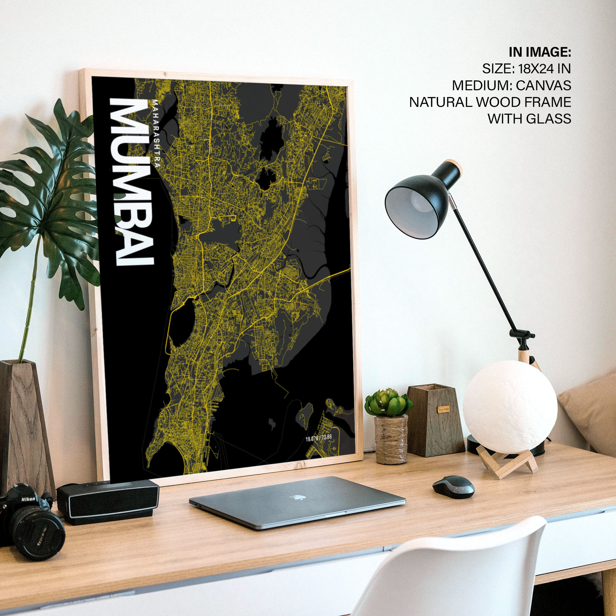 Mumbai Map Art, Yellow-Black, Poster style, Framed & Ready to hang wall art