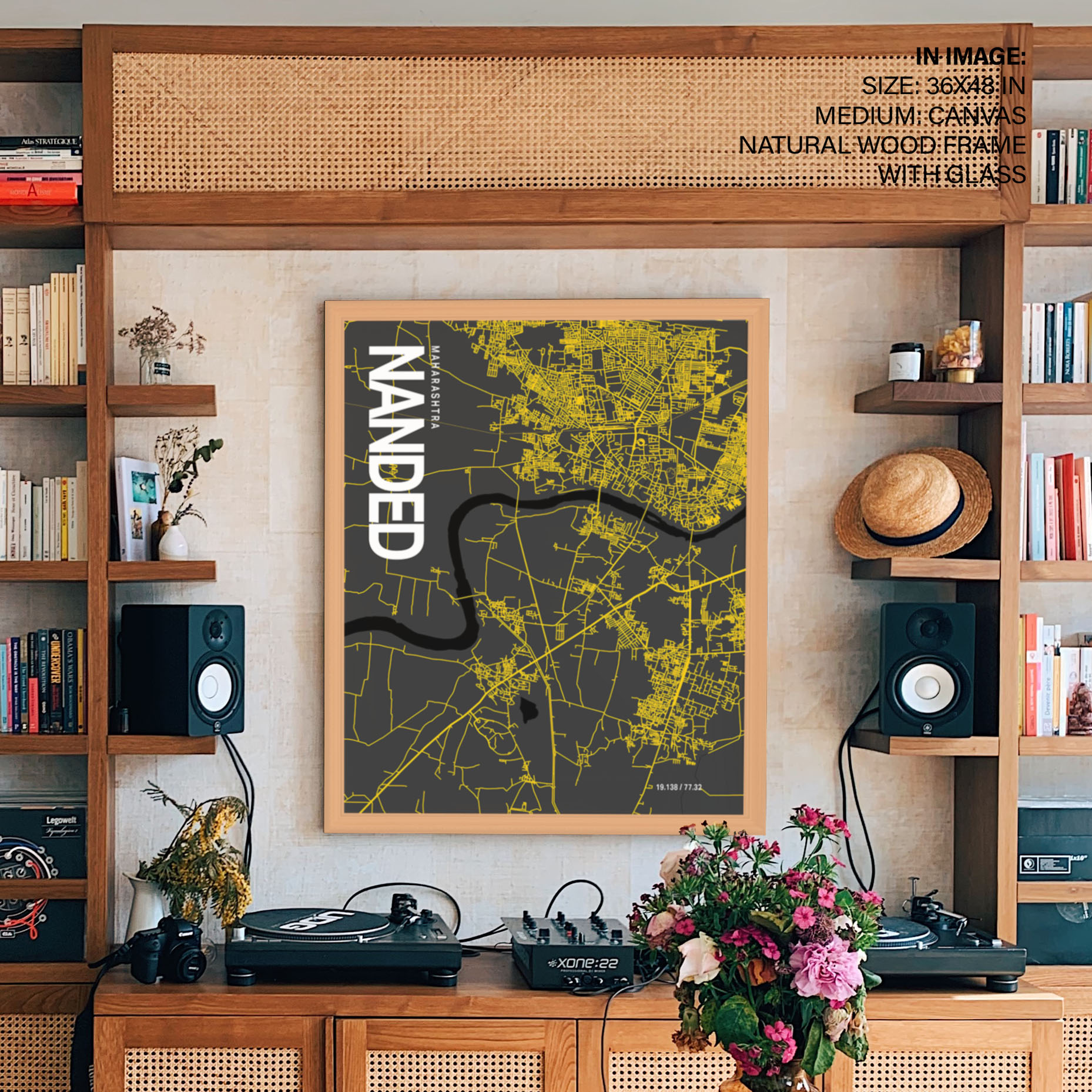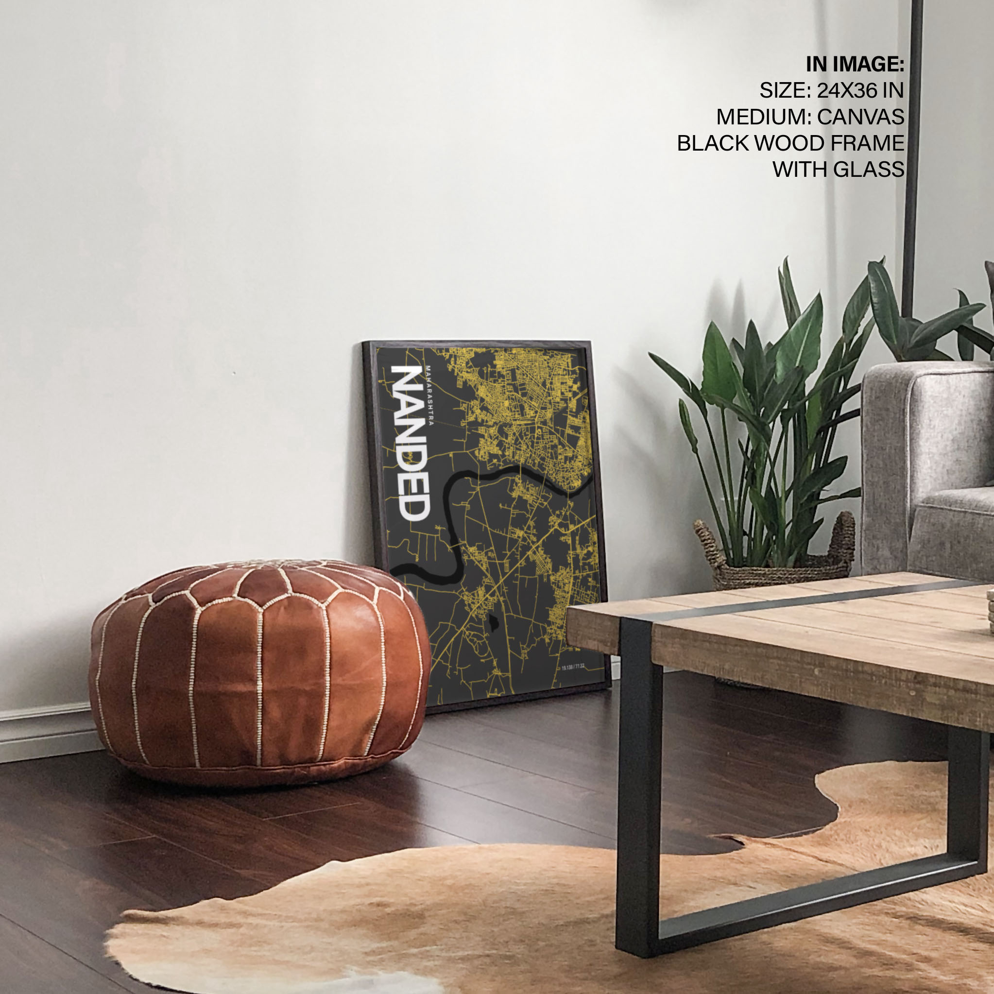 Nanded Map Art, Yellow-Black, Poster style, Framed & Ready to hang wall art
