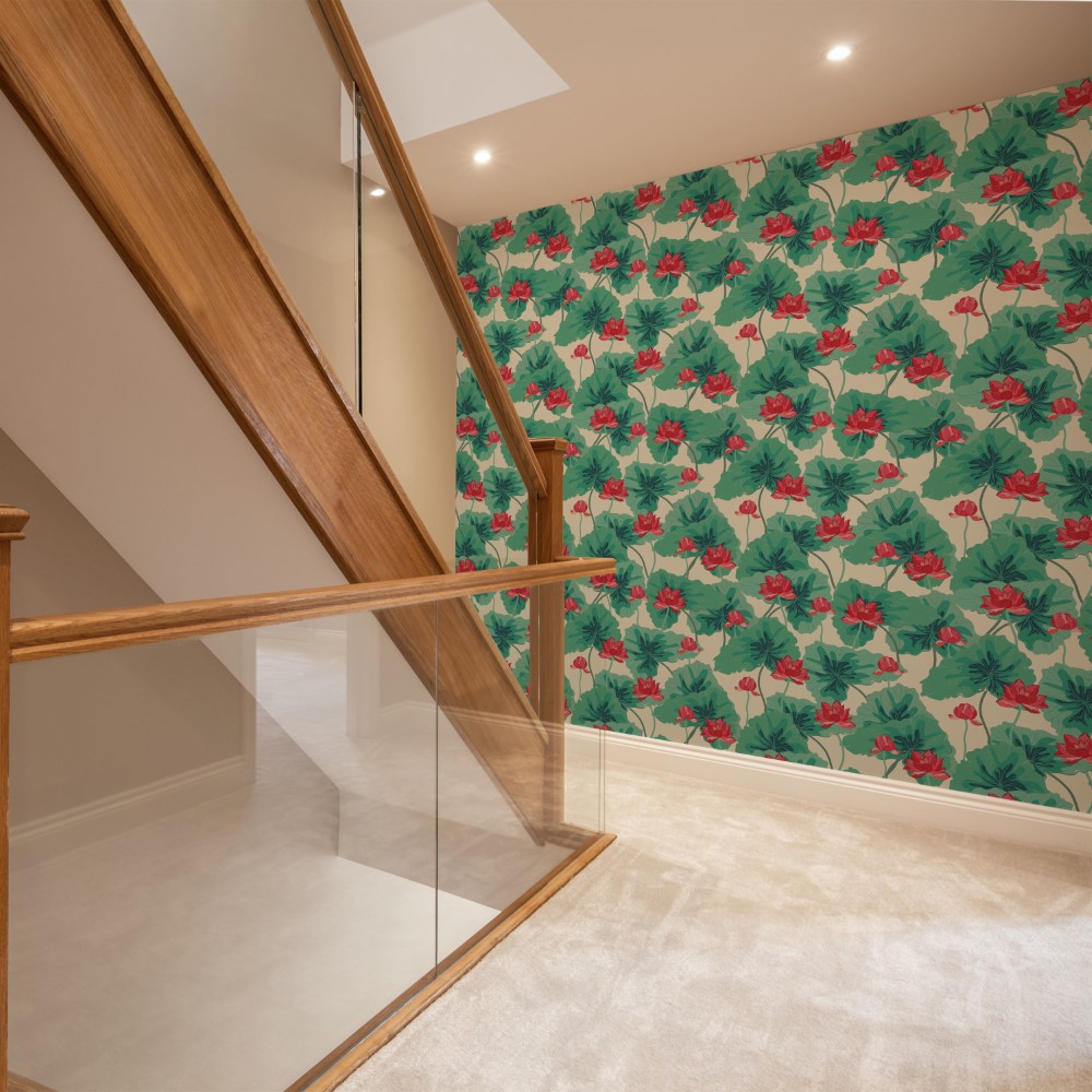 Red lotus botanic pattern