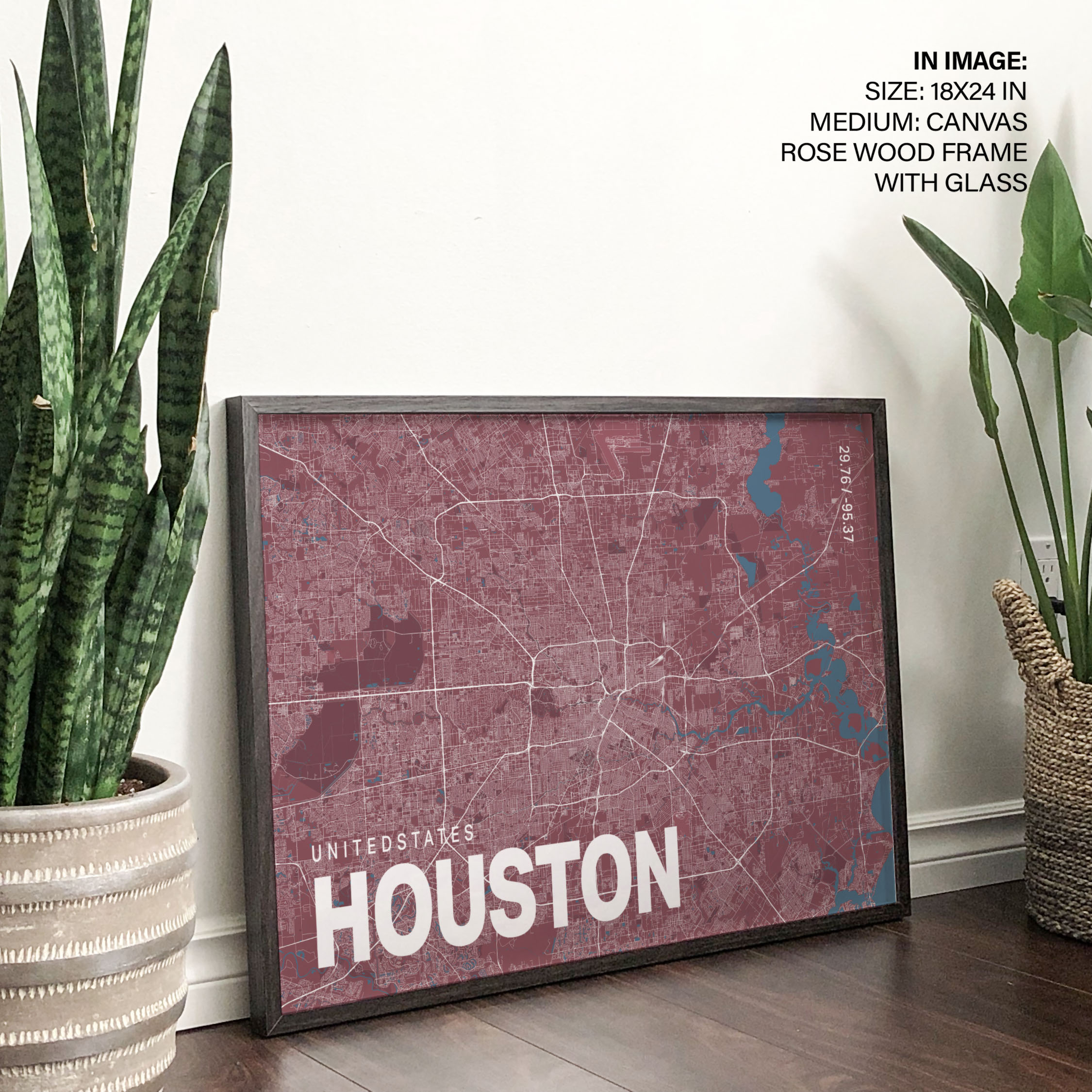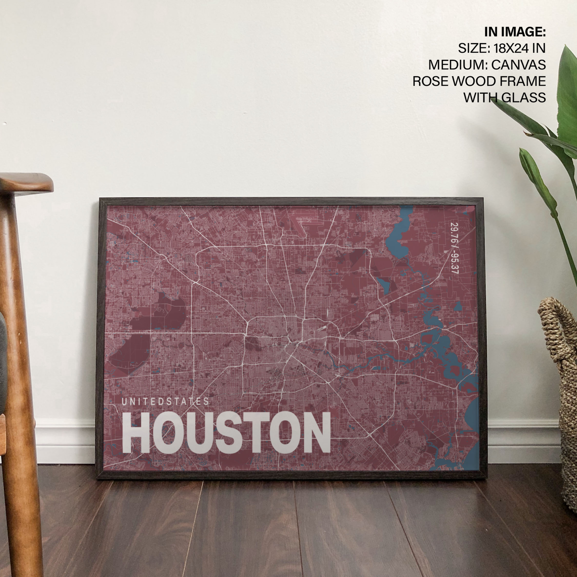 Red poster map of houston