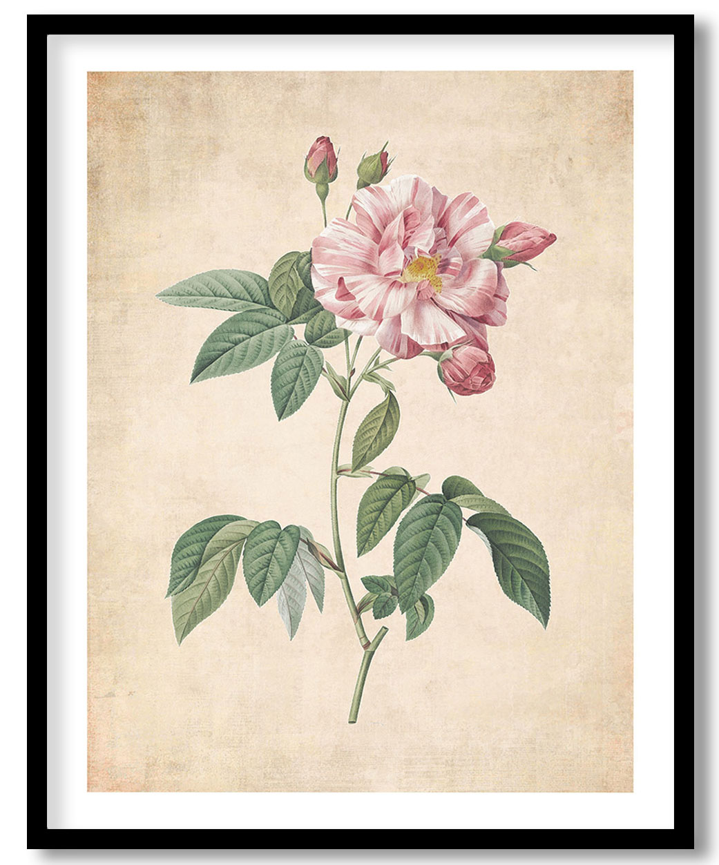 Be the first to review “Rosa Mundi, French Rosebush with Varigated Flowers – Pressed Vintage Botanical”