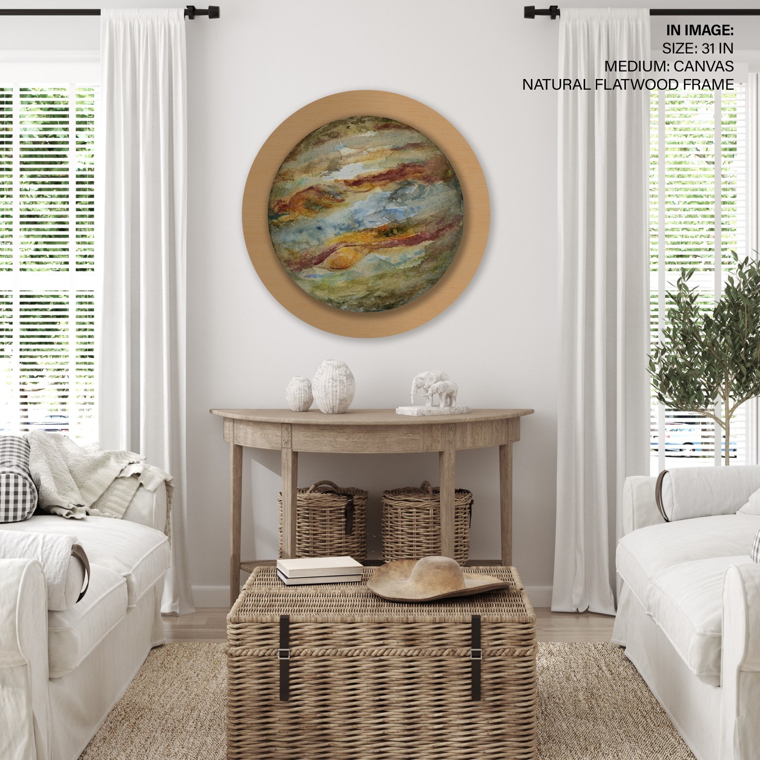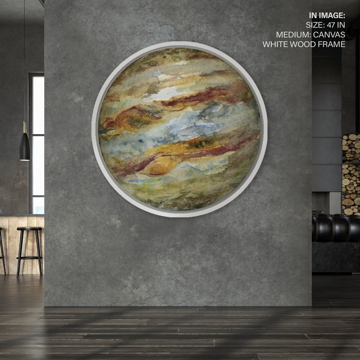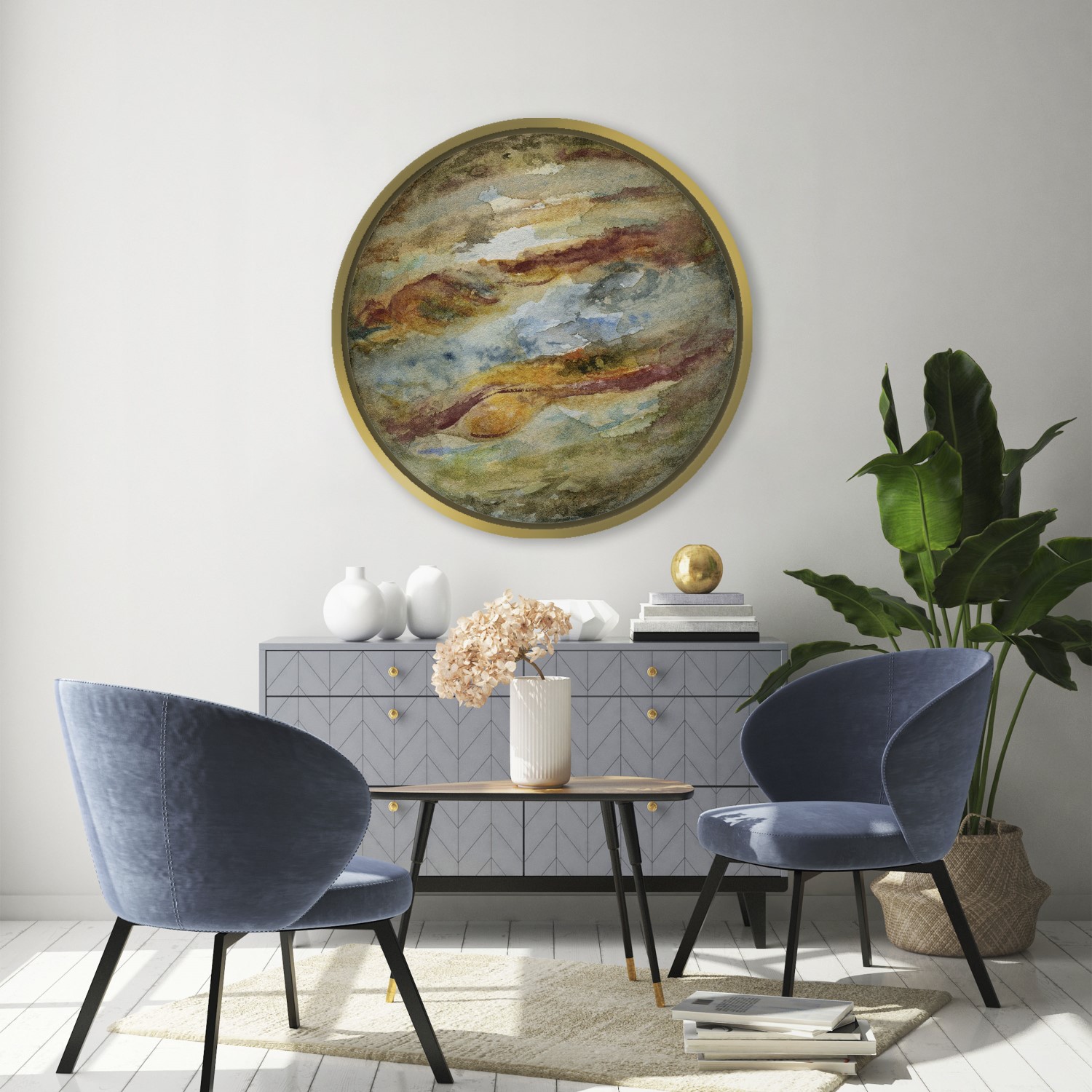 Seagreen watercolor jupiter – Circular Wooden Frame