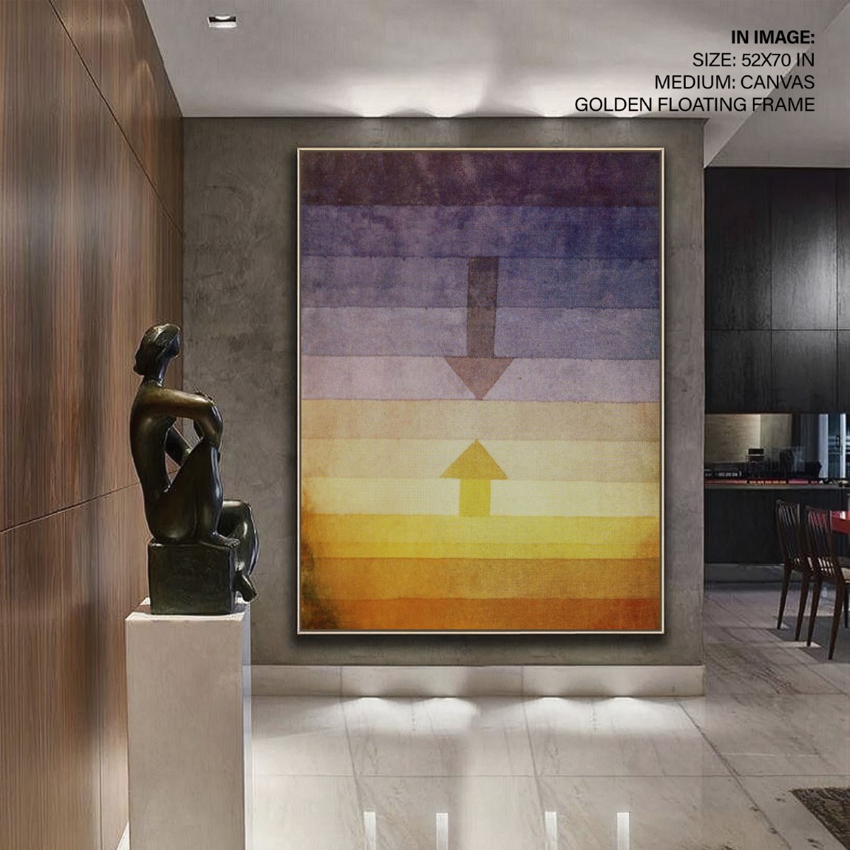 We recommend using Canvas for prominent living spaces (living room, dining hall, bedrooms), Metal/Glass for modern aesthetics, and Art Paper for galleries, bathrooms, kitchens, and other less formal areas.