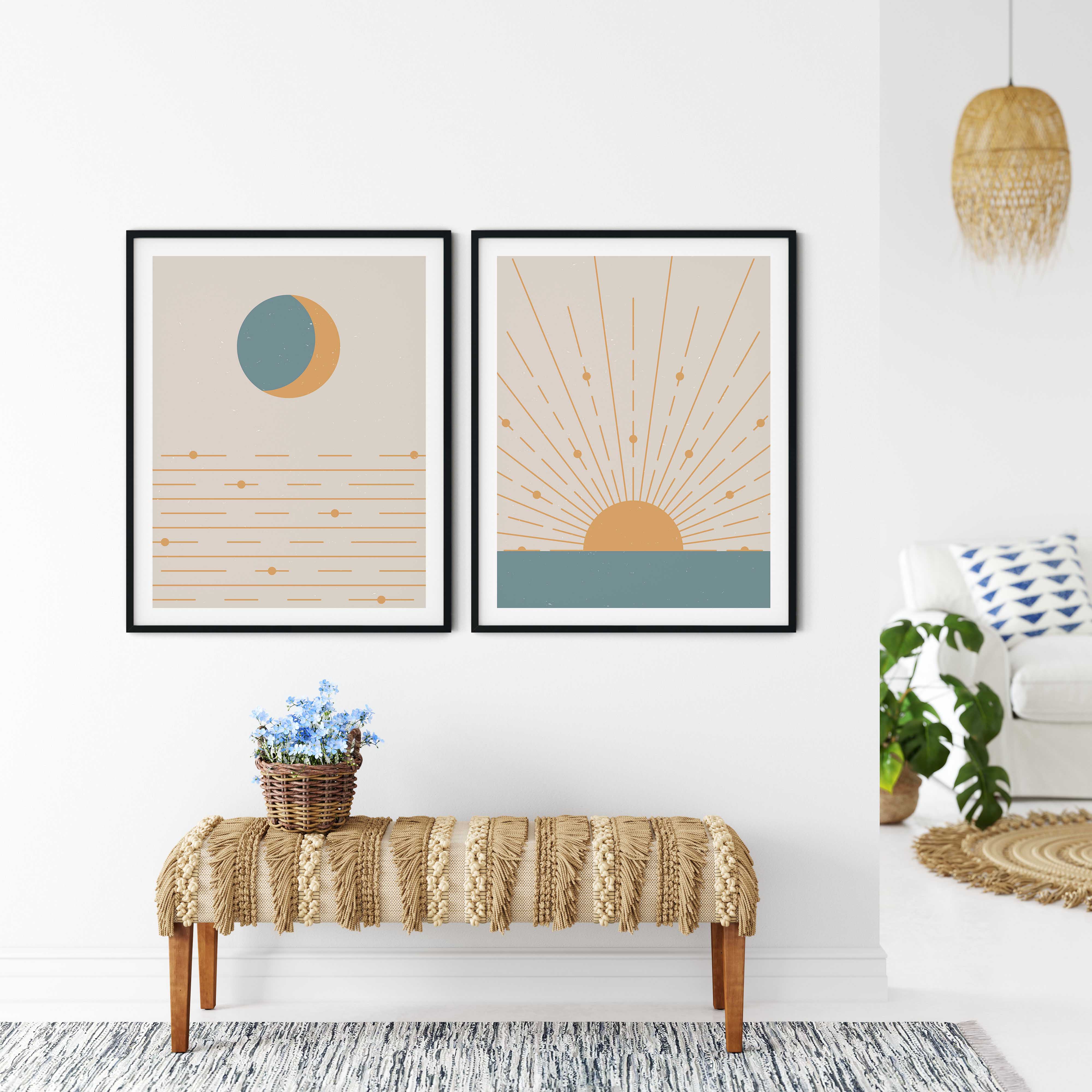 Set of 2 abstract boho sun
