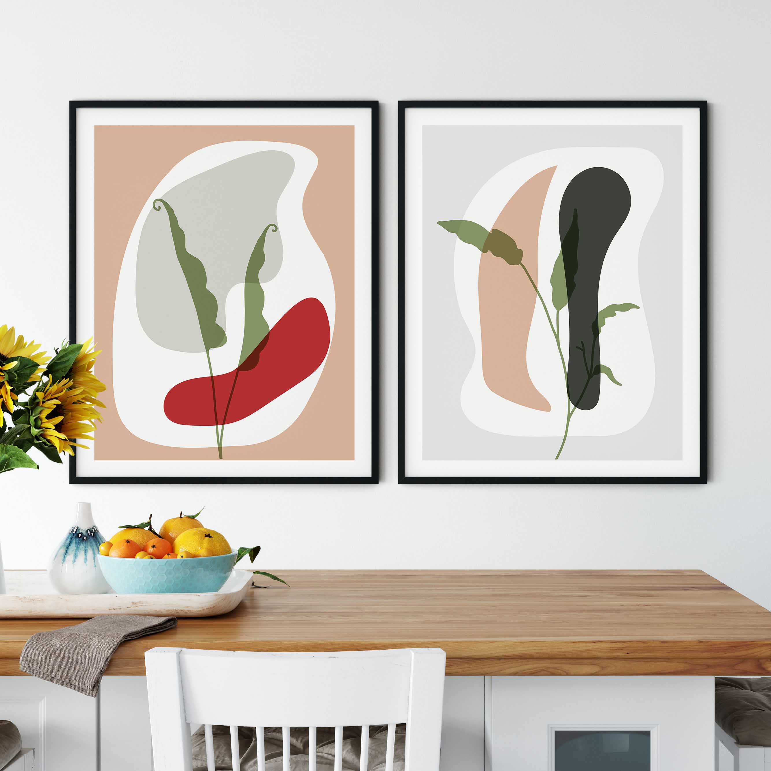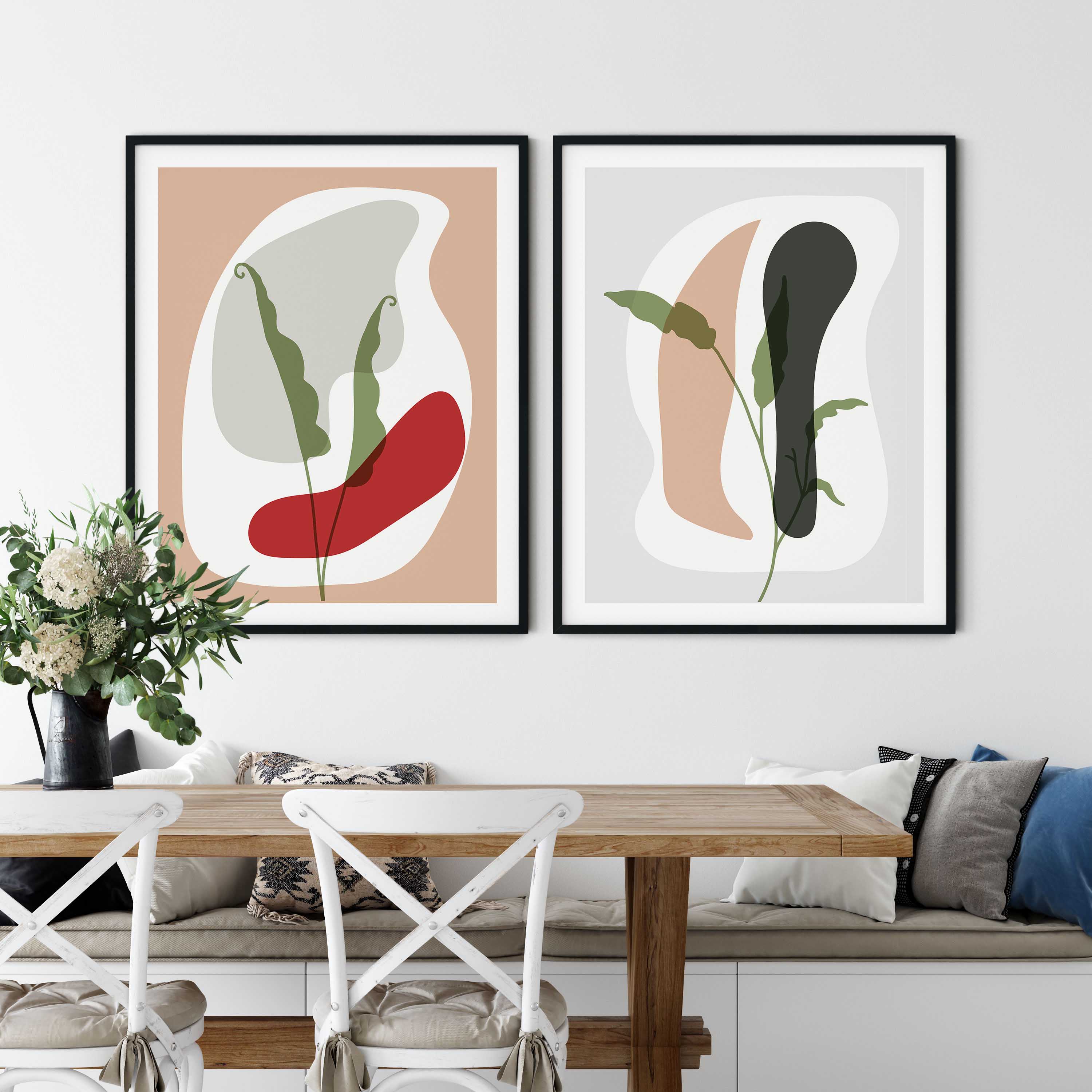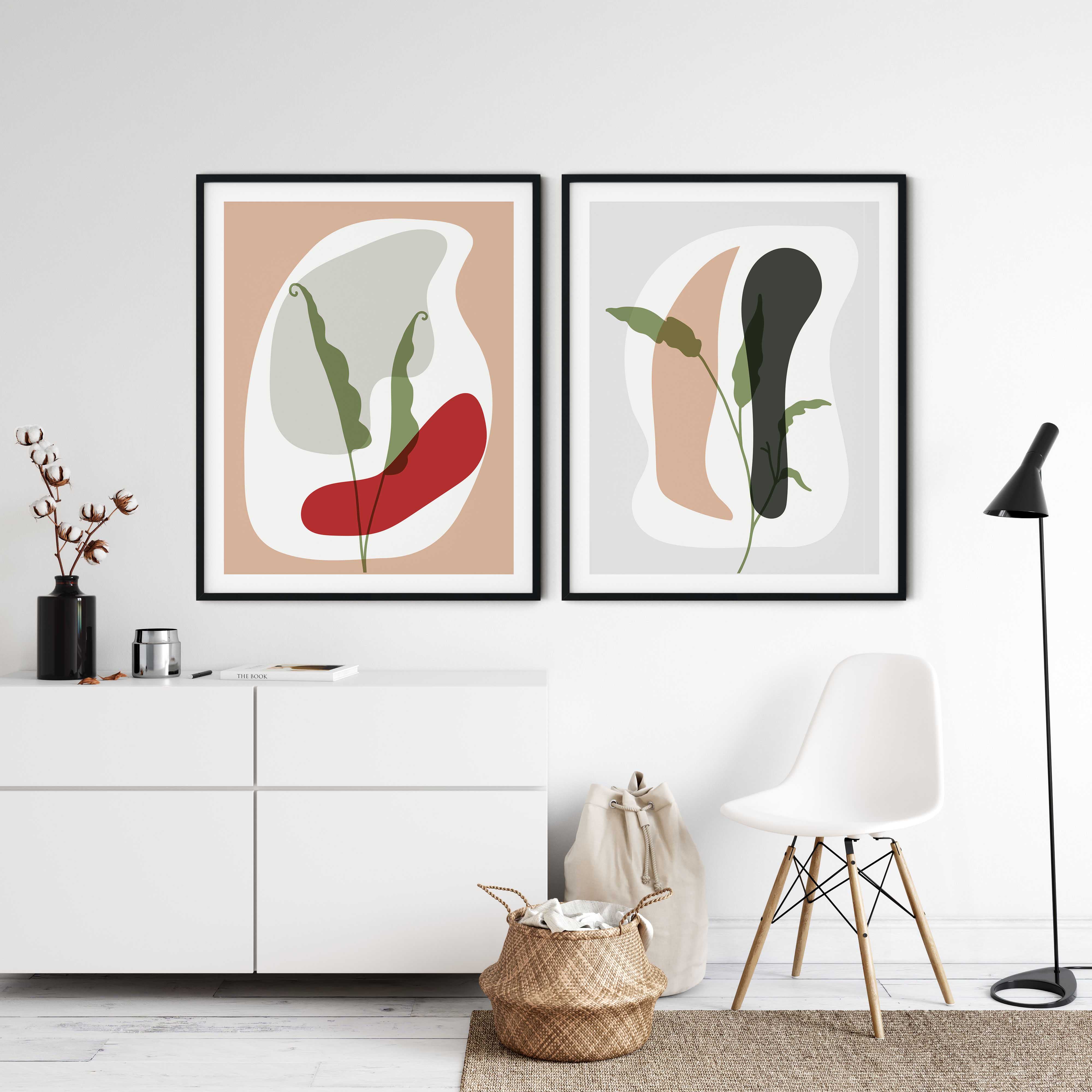 Set of 2 abstract botanical minimalist