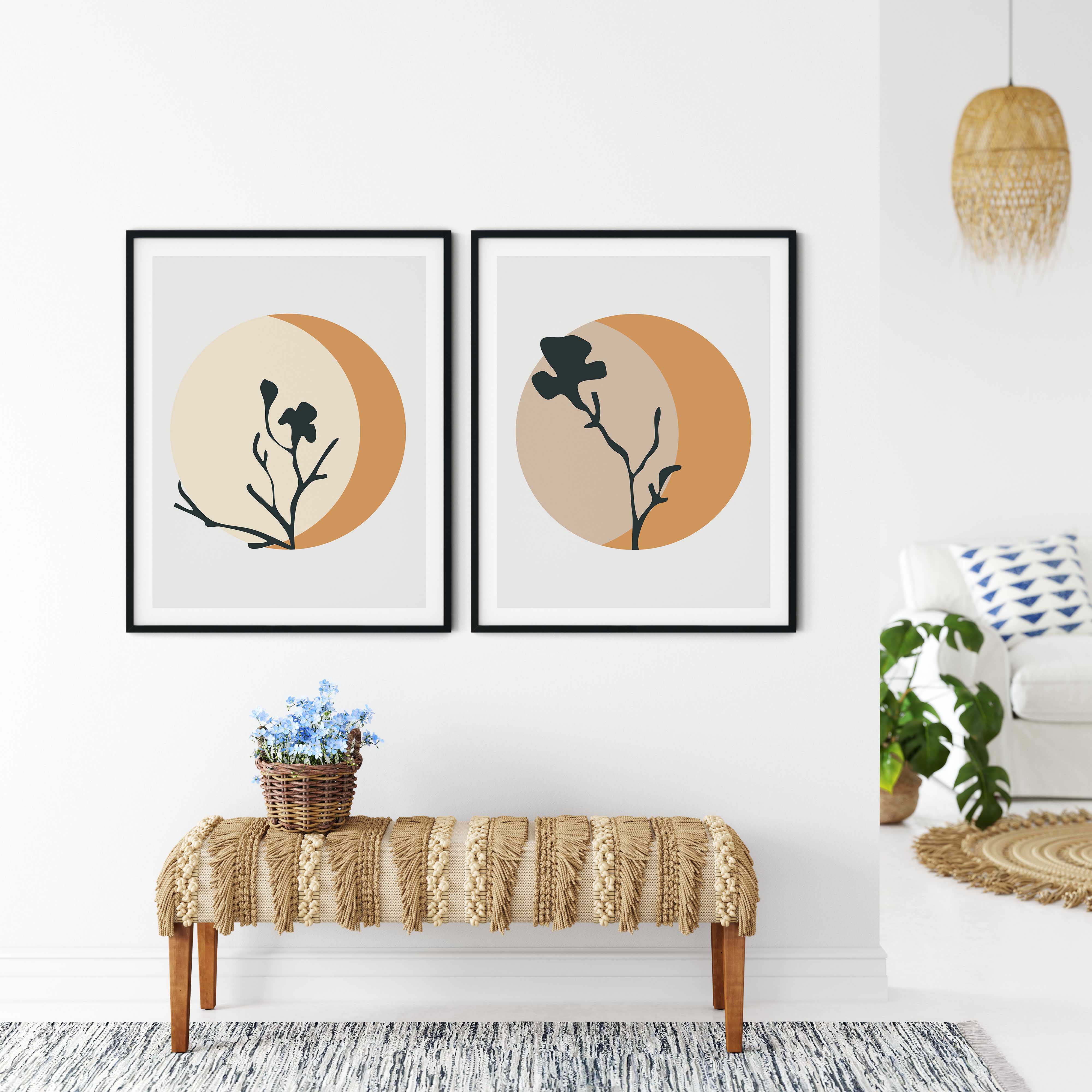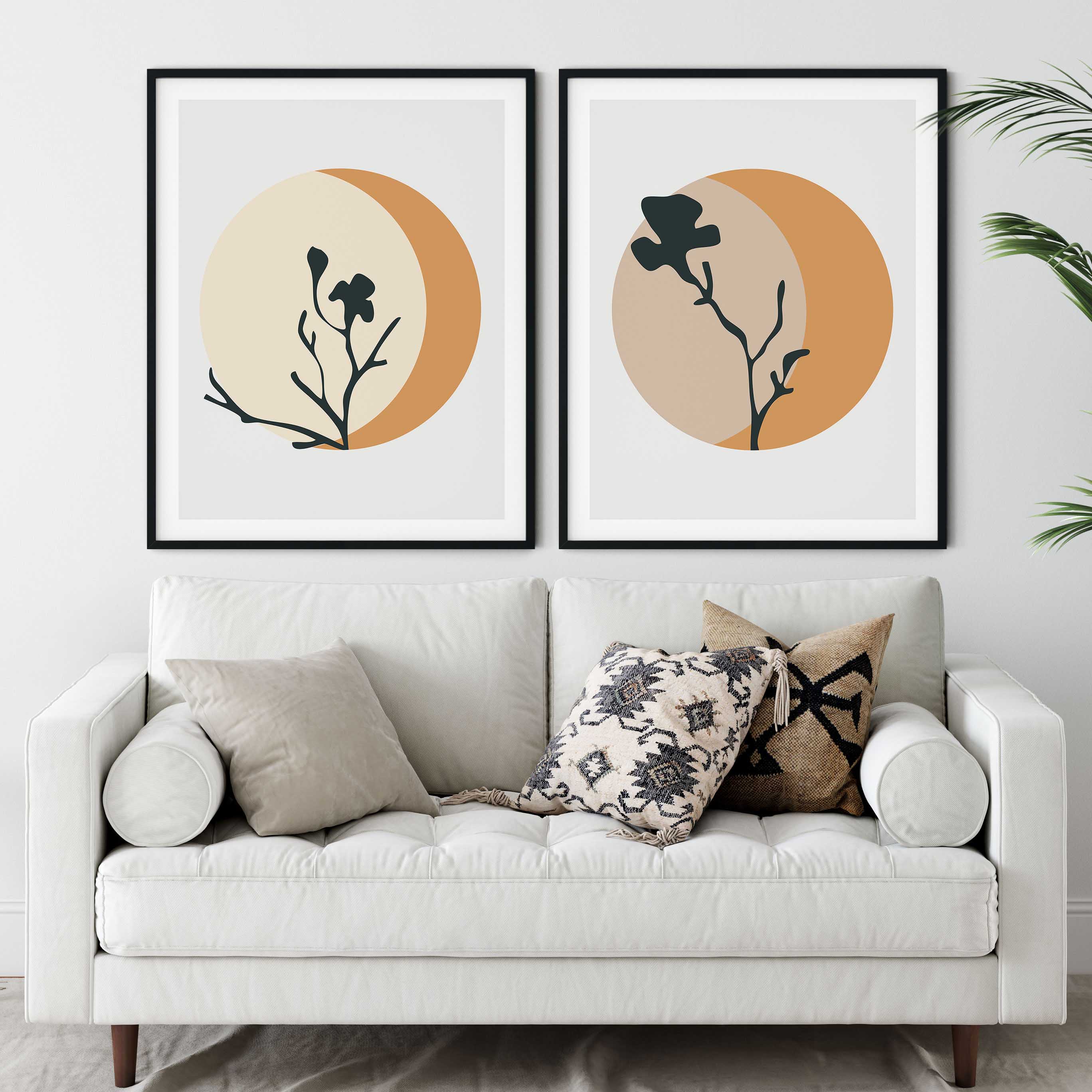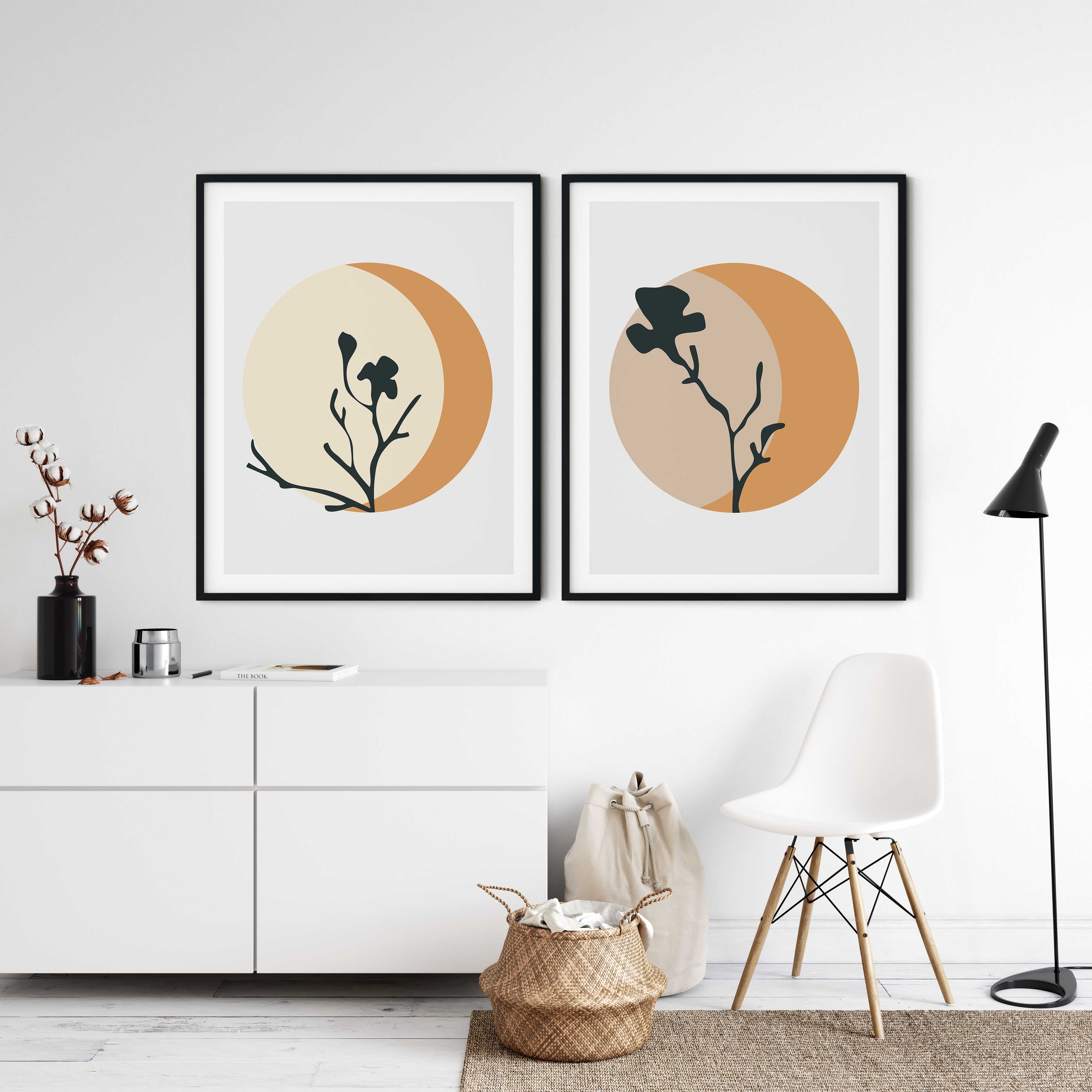 Set of 2 abstract circle botanical