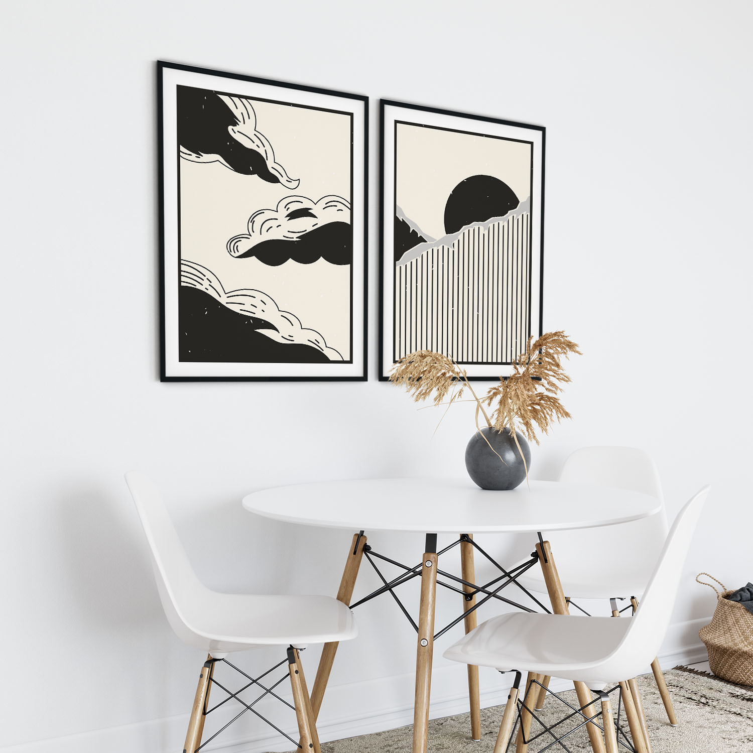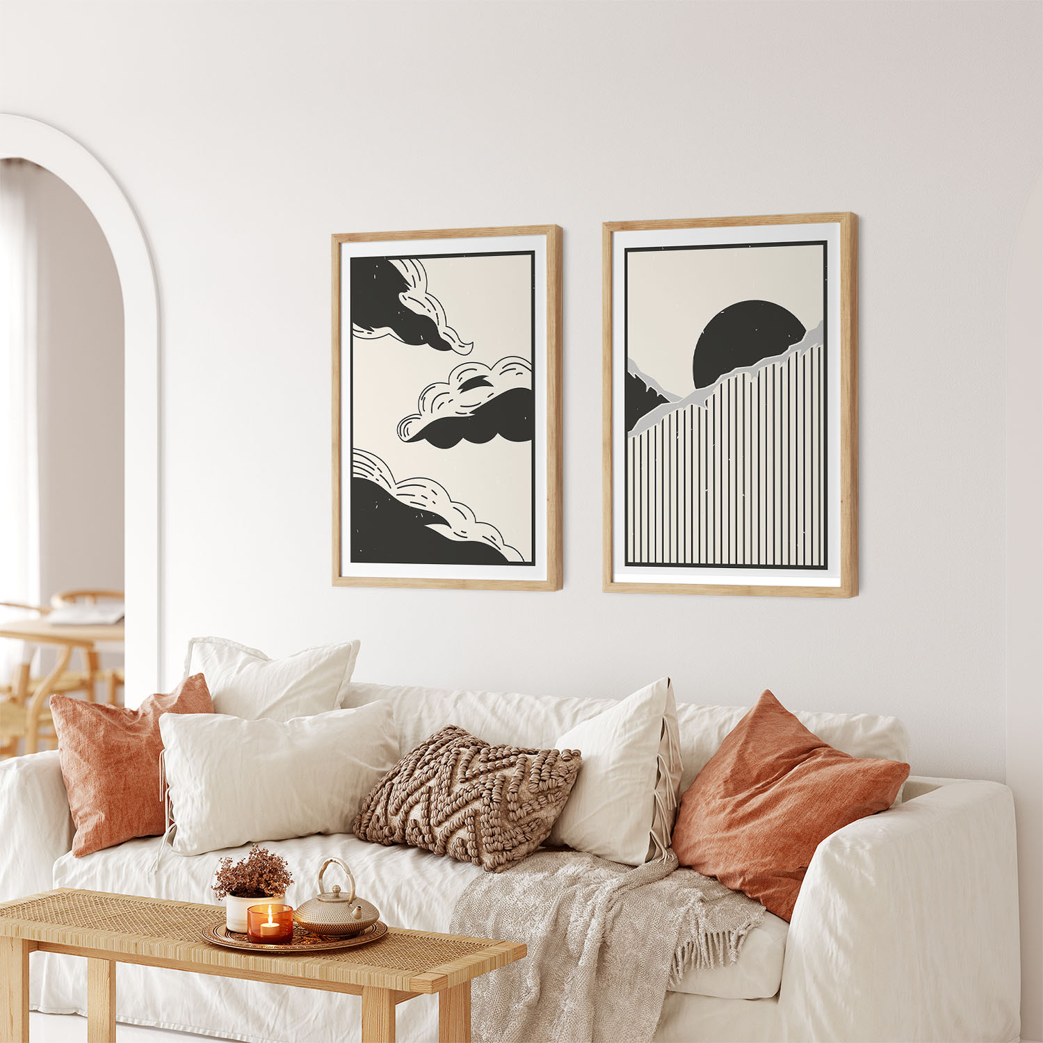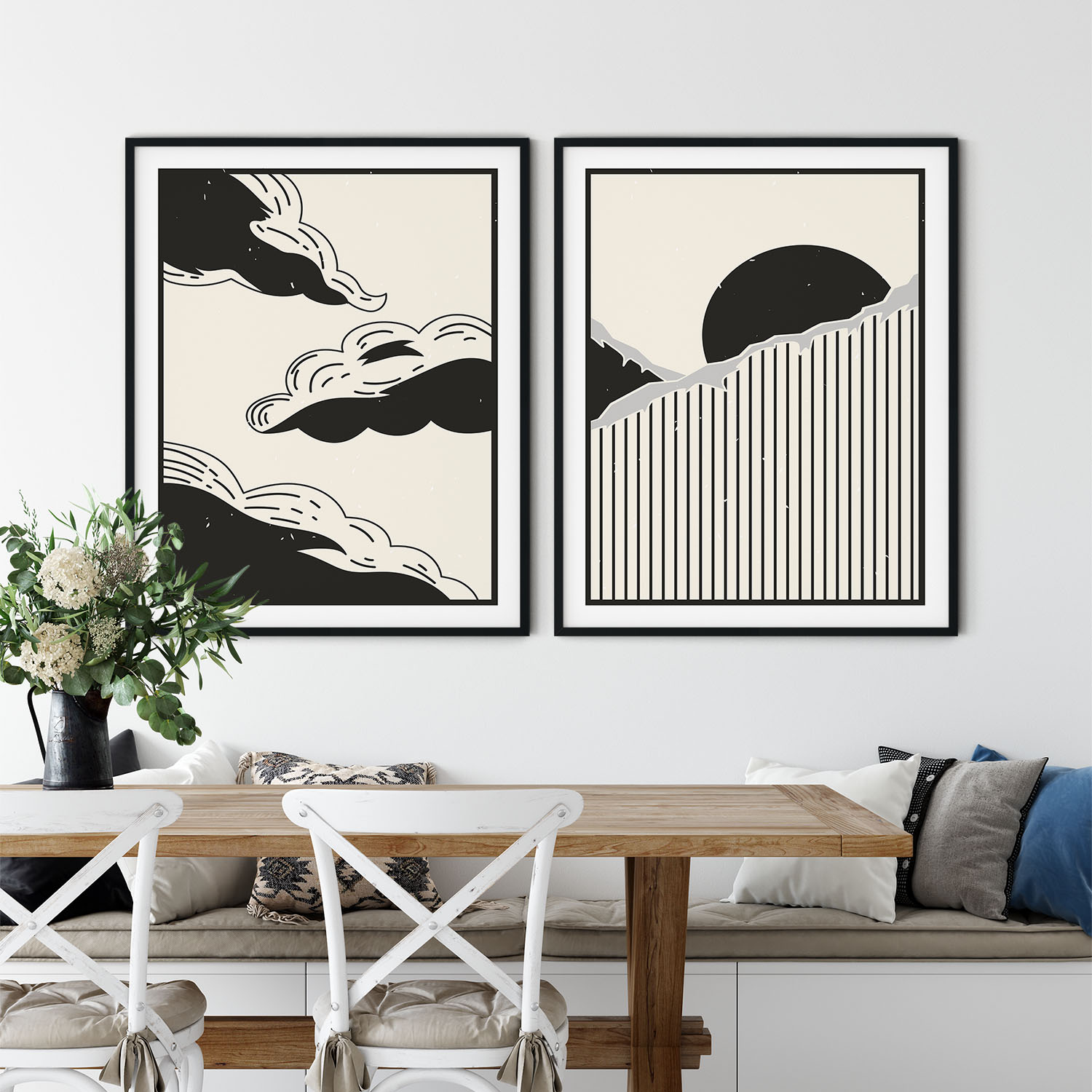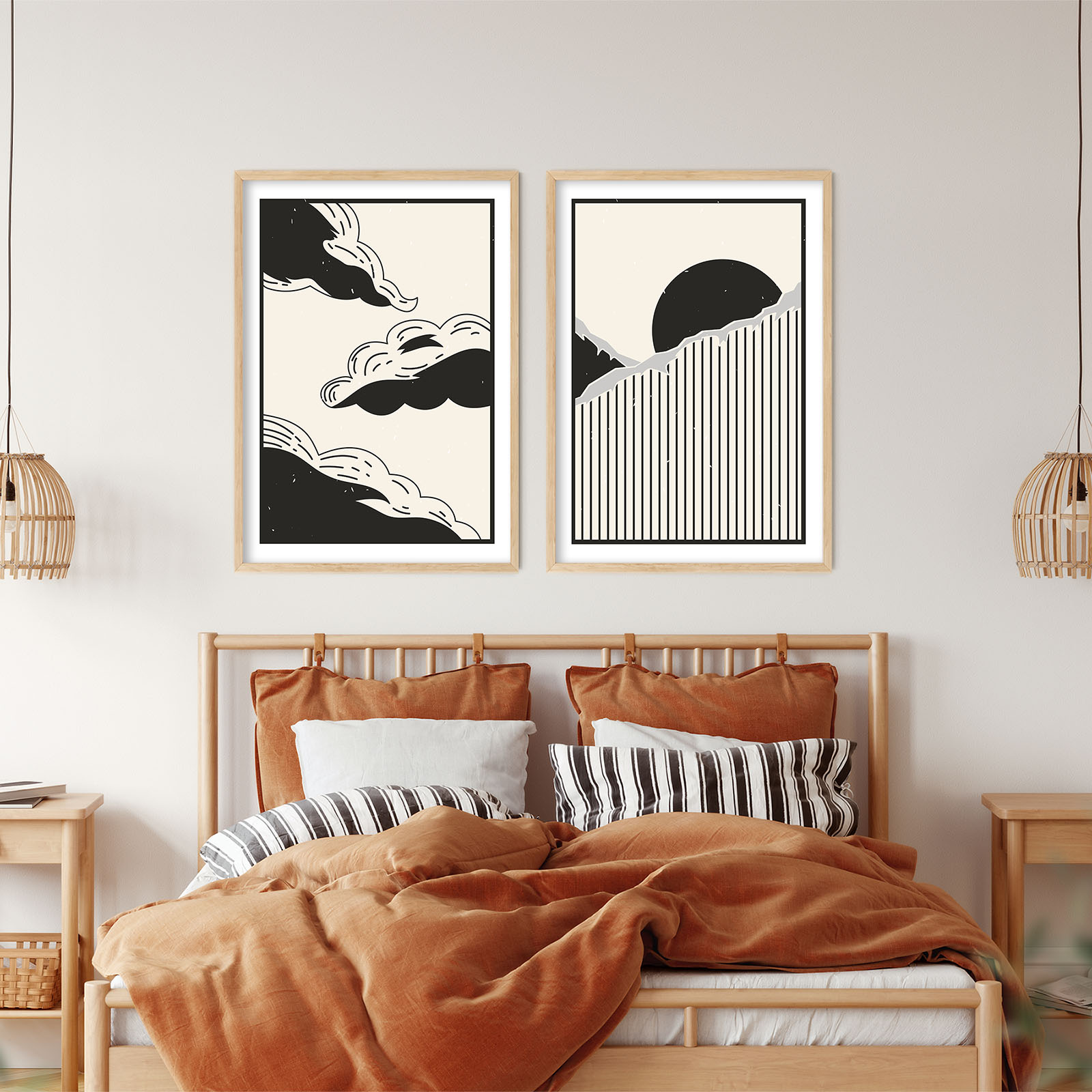Be the first to review “Set of 2 aesthetic minimalistic clouds mountain sun landscape”