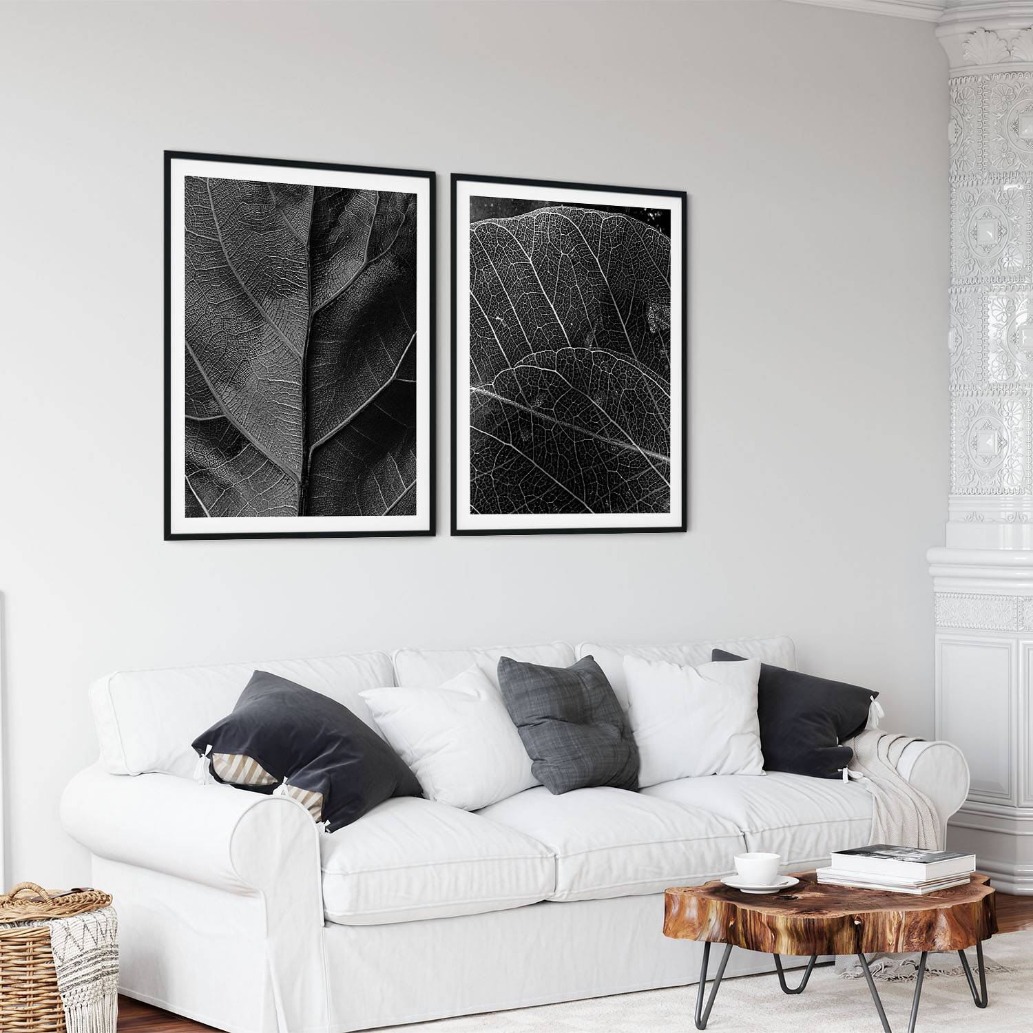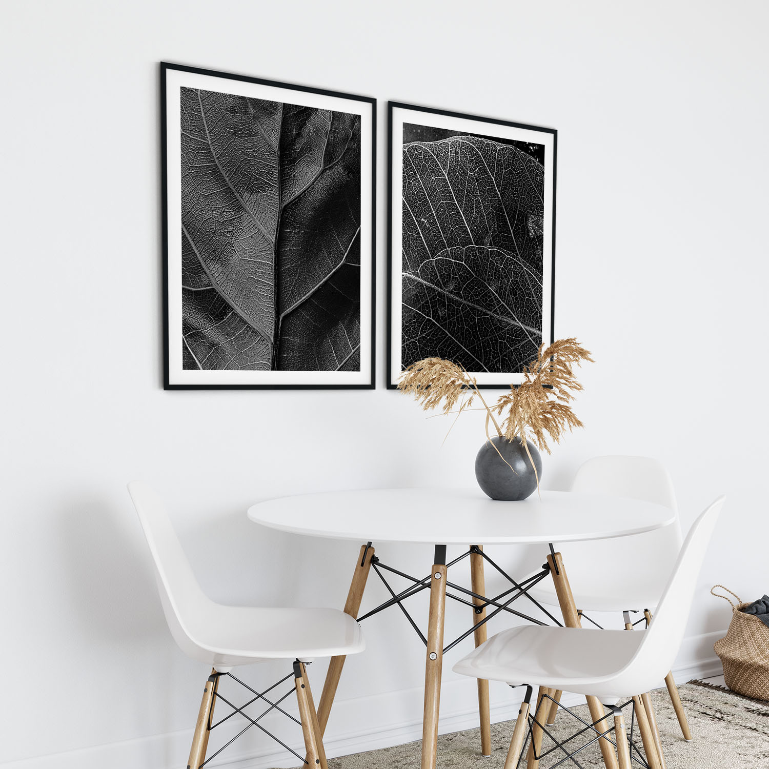 Set of 2 black burnt detailed leaves