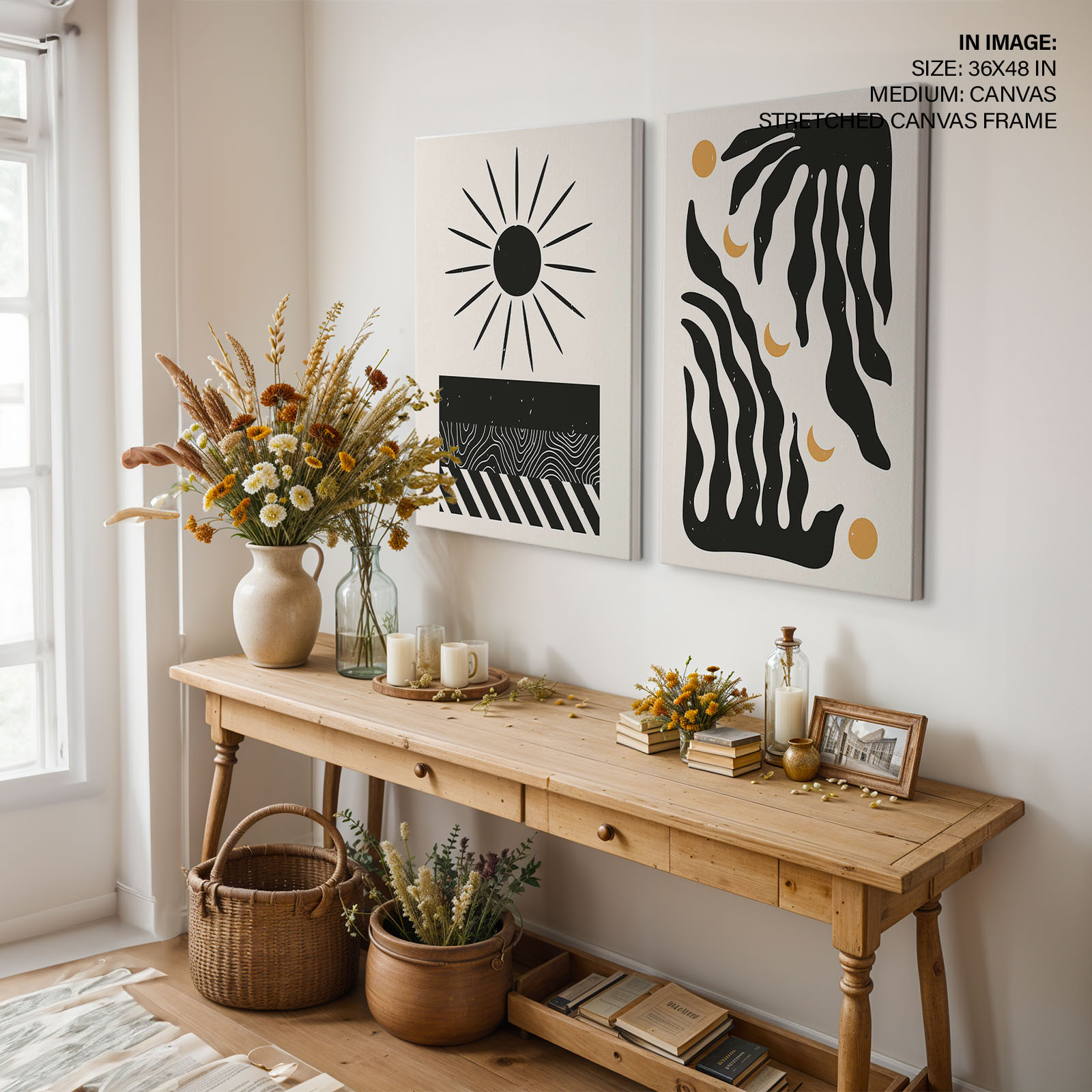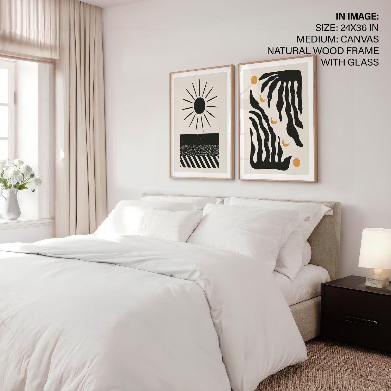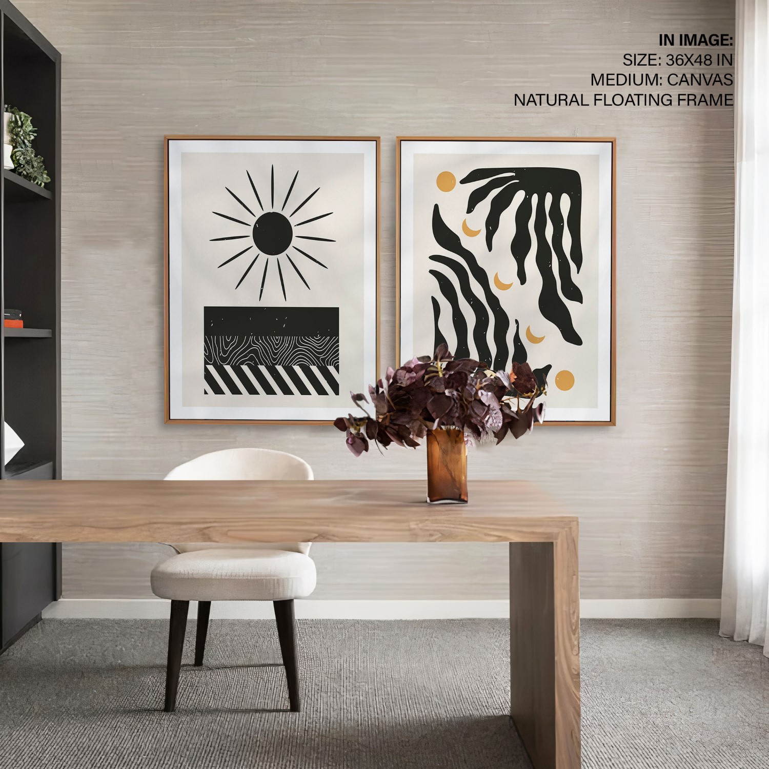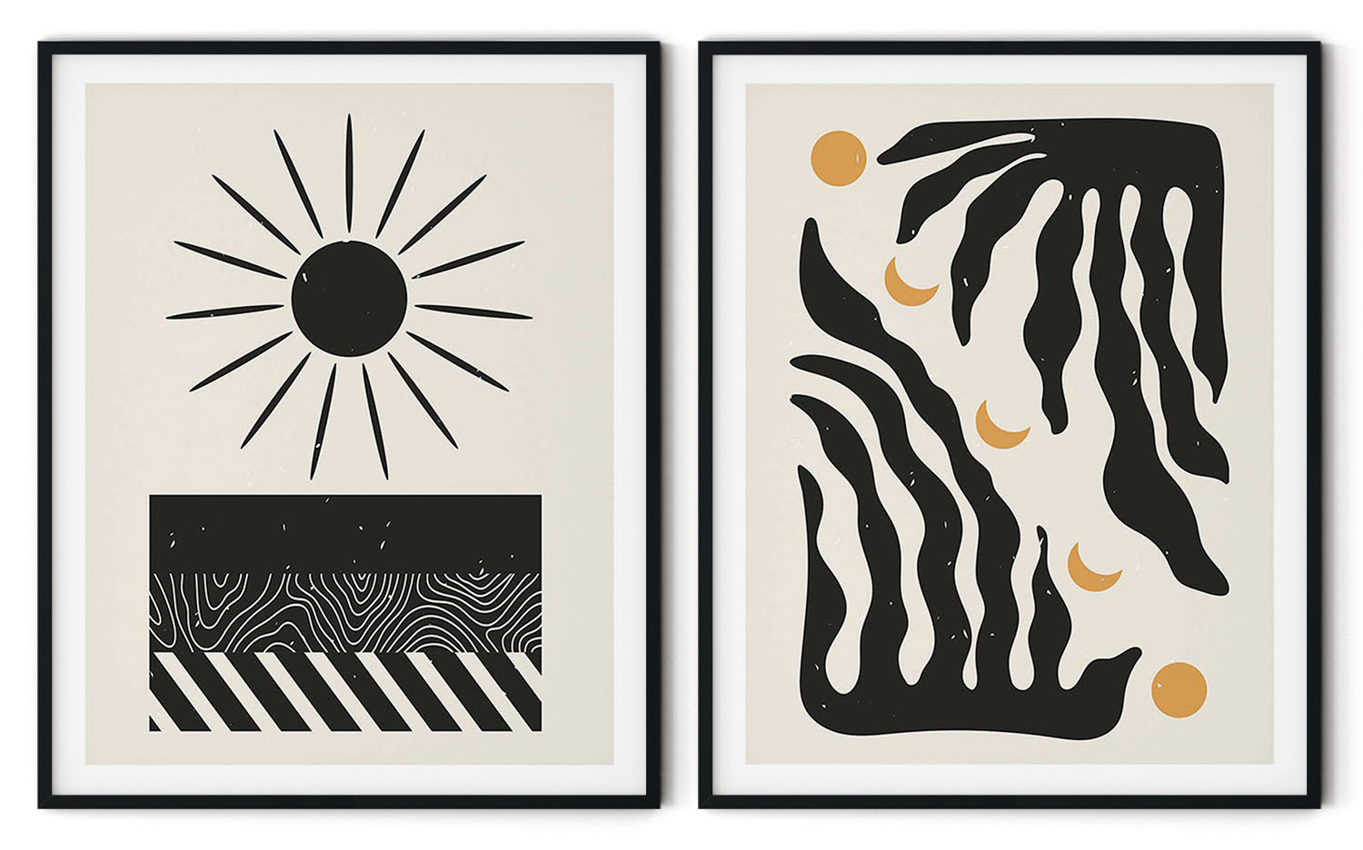 Be the first to review “Set of 2 black sun and botanical aesthetic abstract”