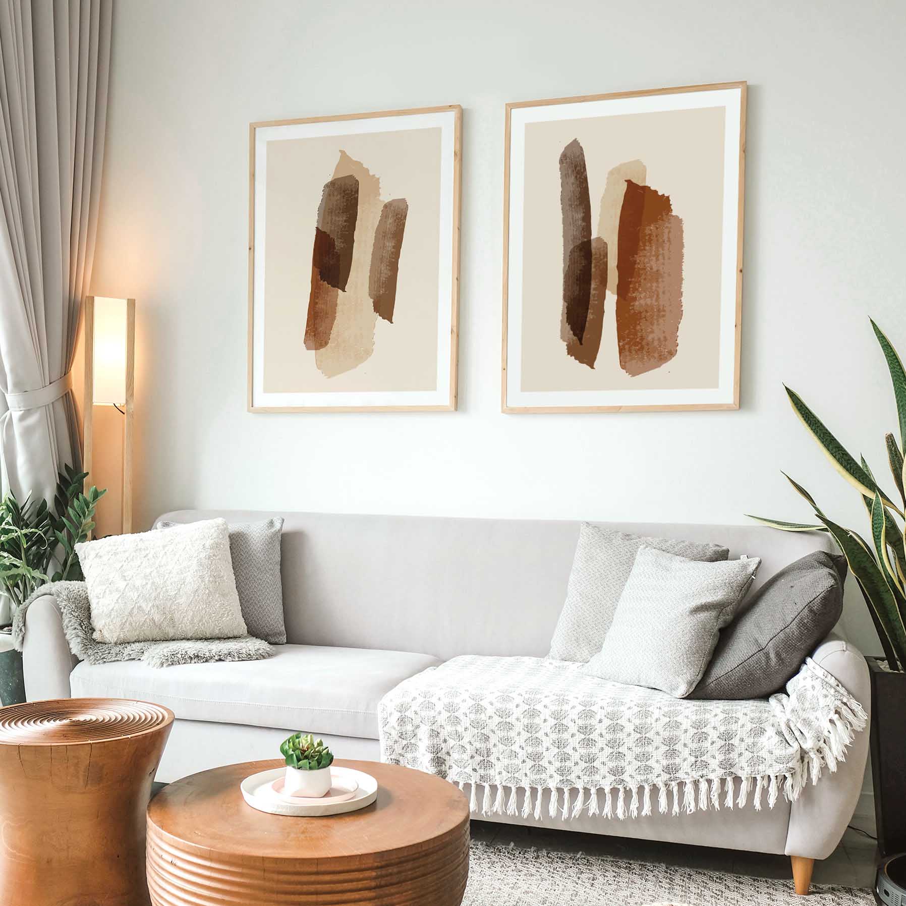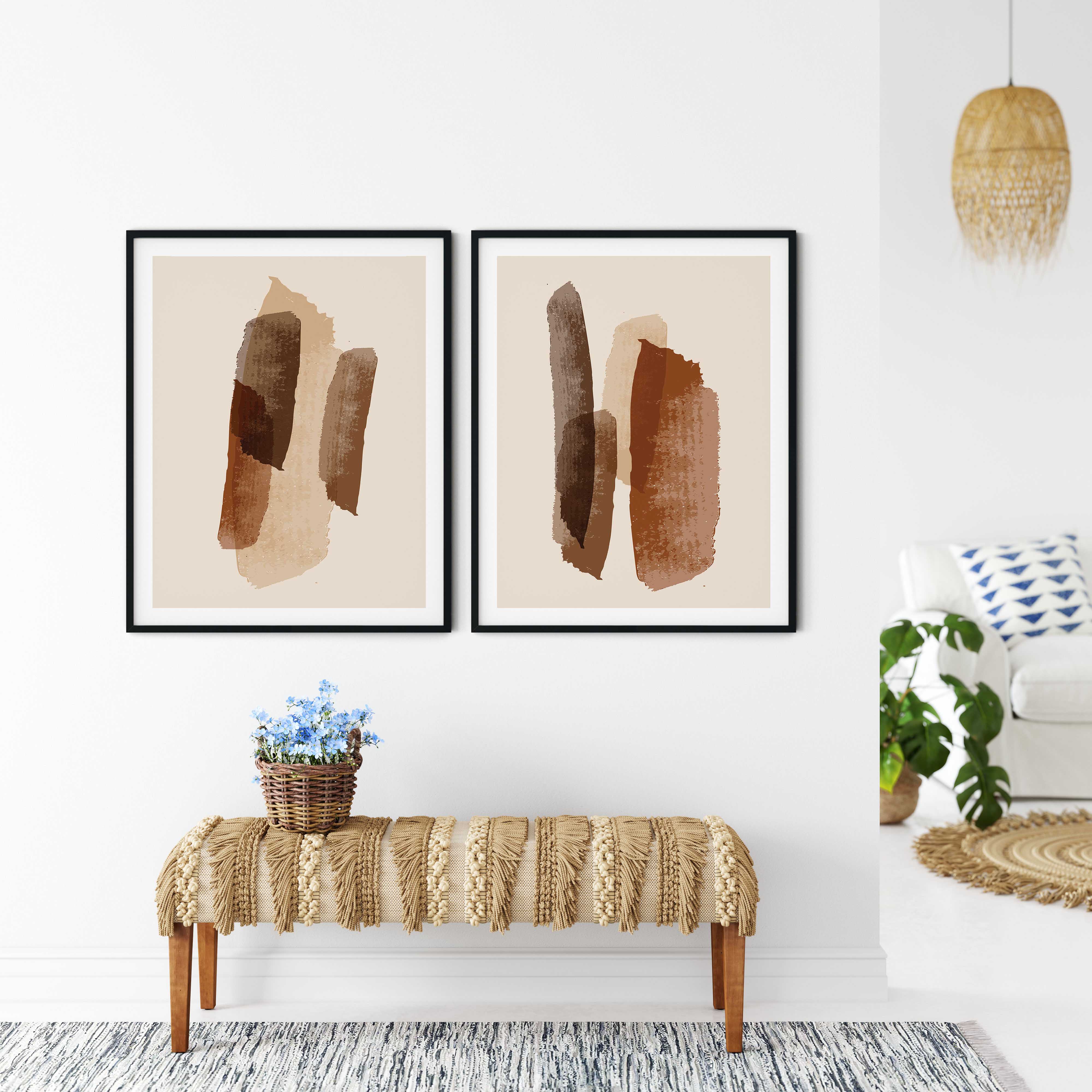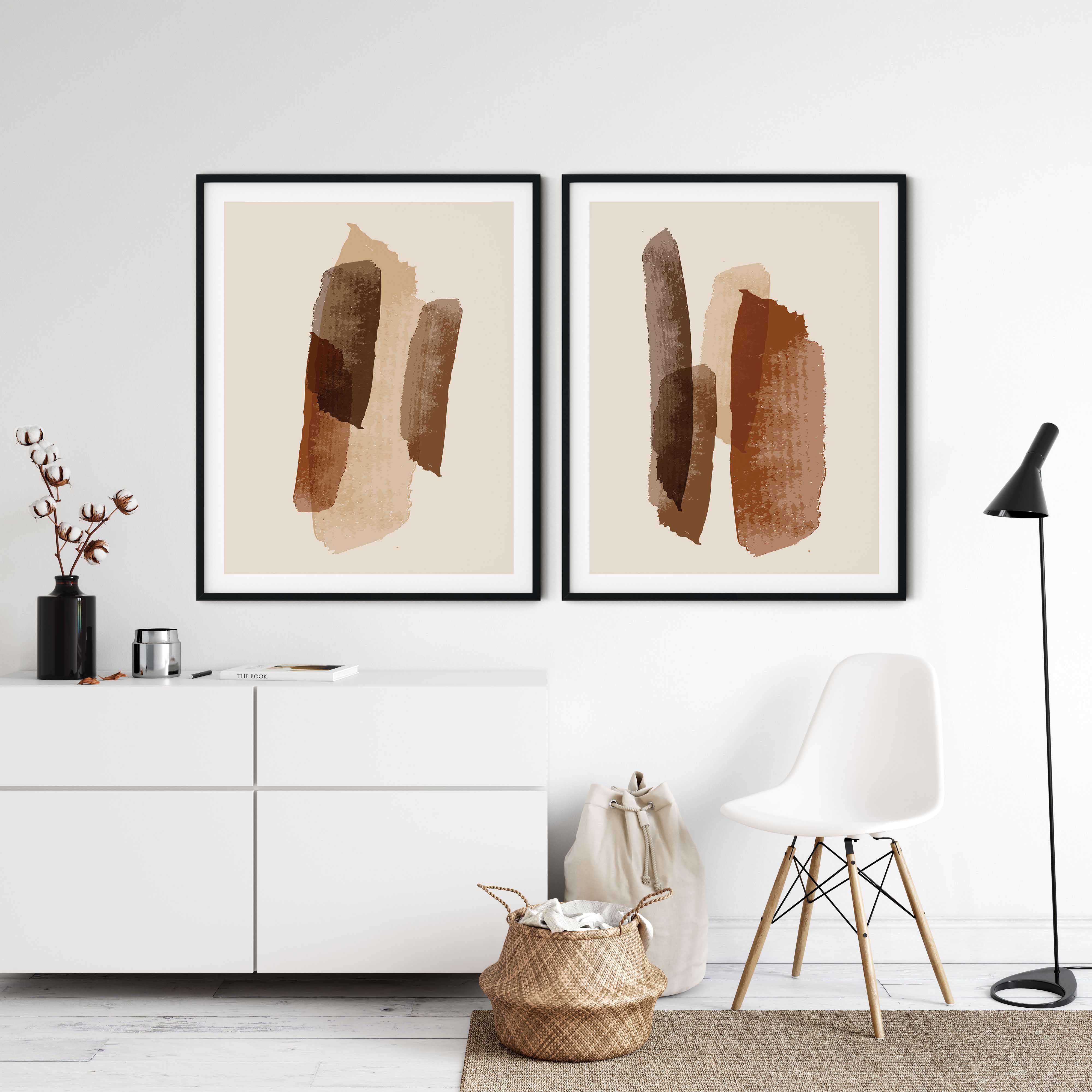 Set of 2 brown minimalist brushstroke
