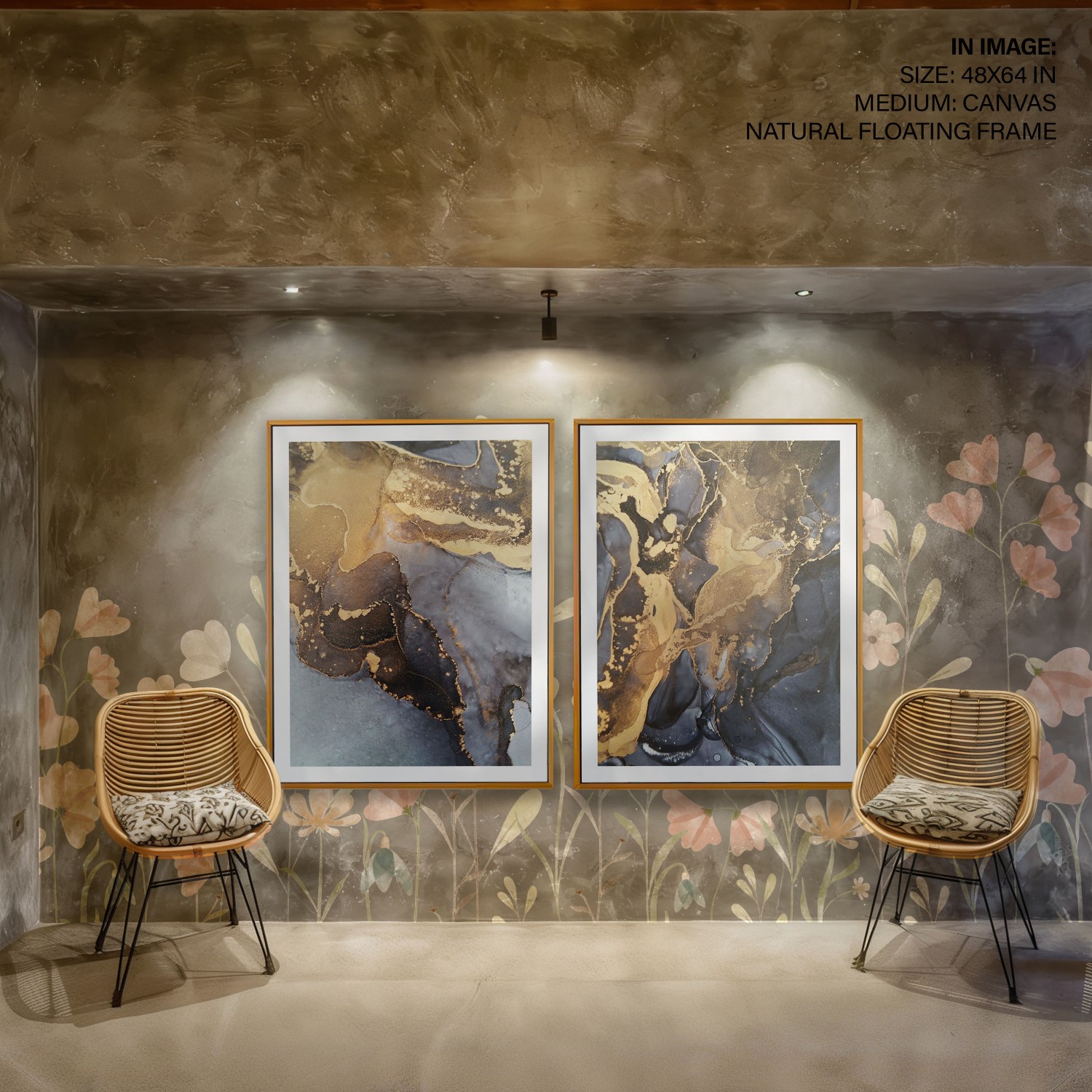 Be the first to review “Set of 2 fluid ink golden abstract painting”