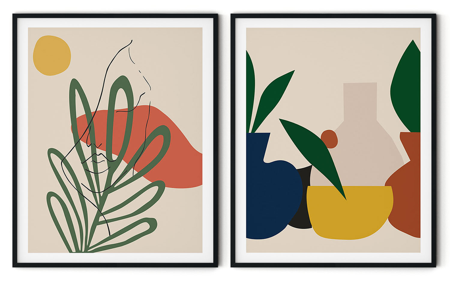 Be the first to review “Set of 2 geometrical line drawing figure botanical”