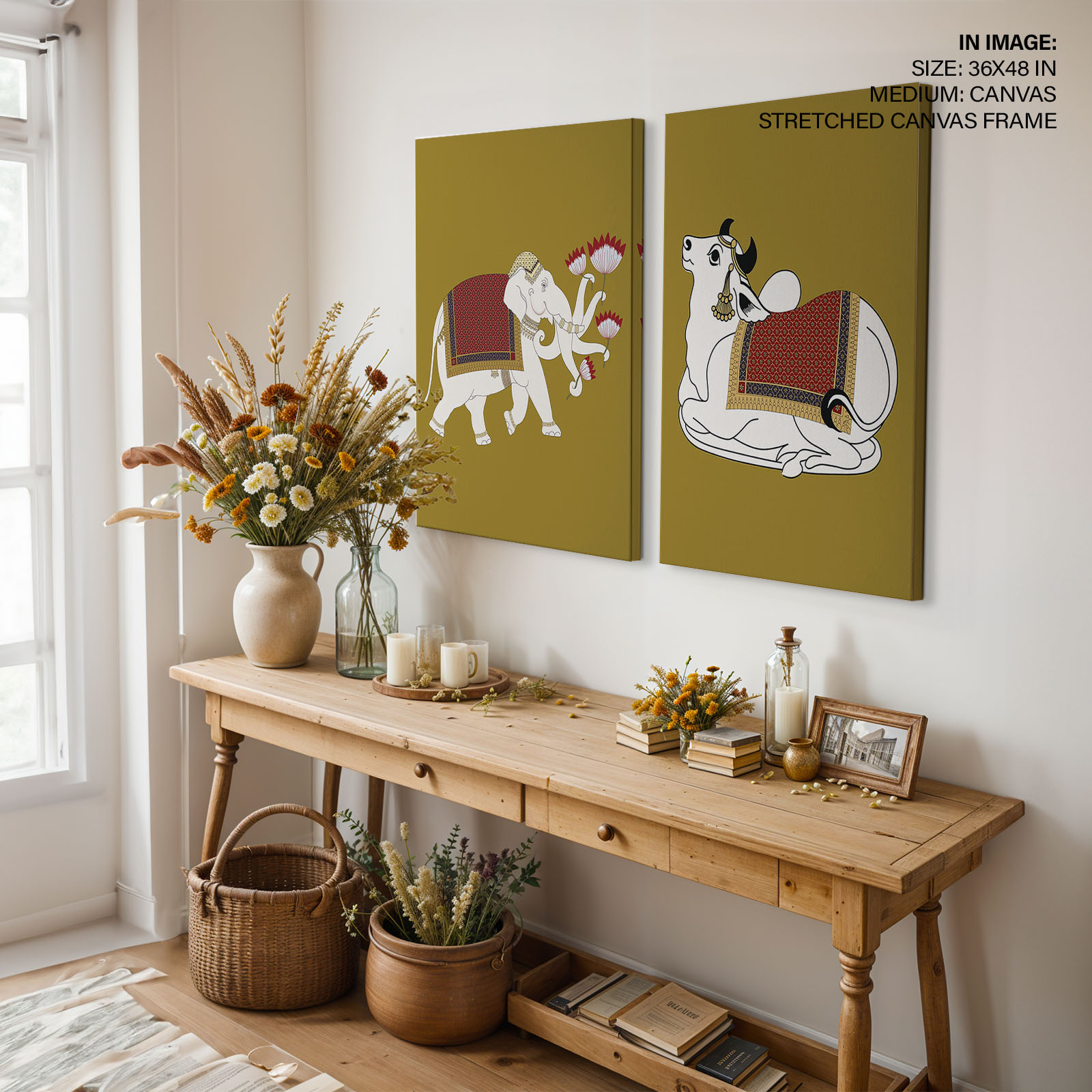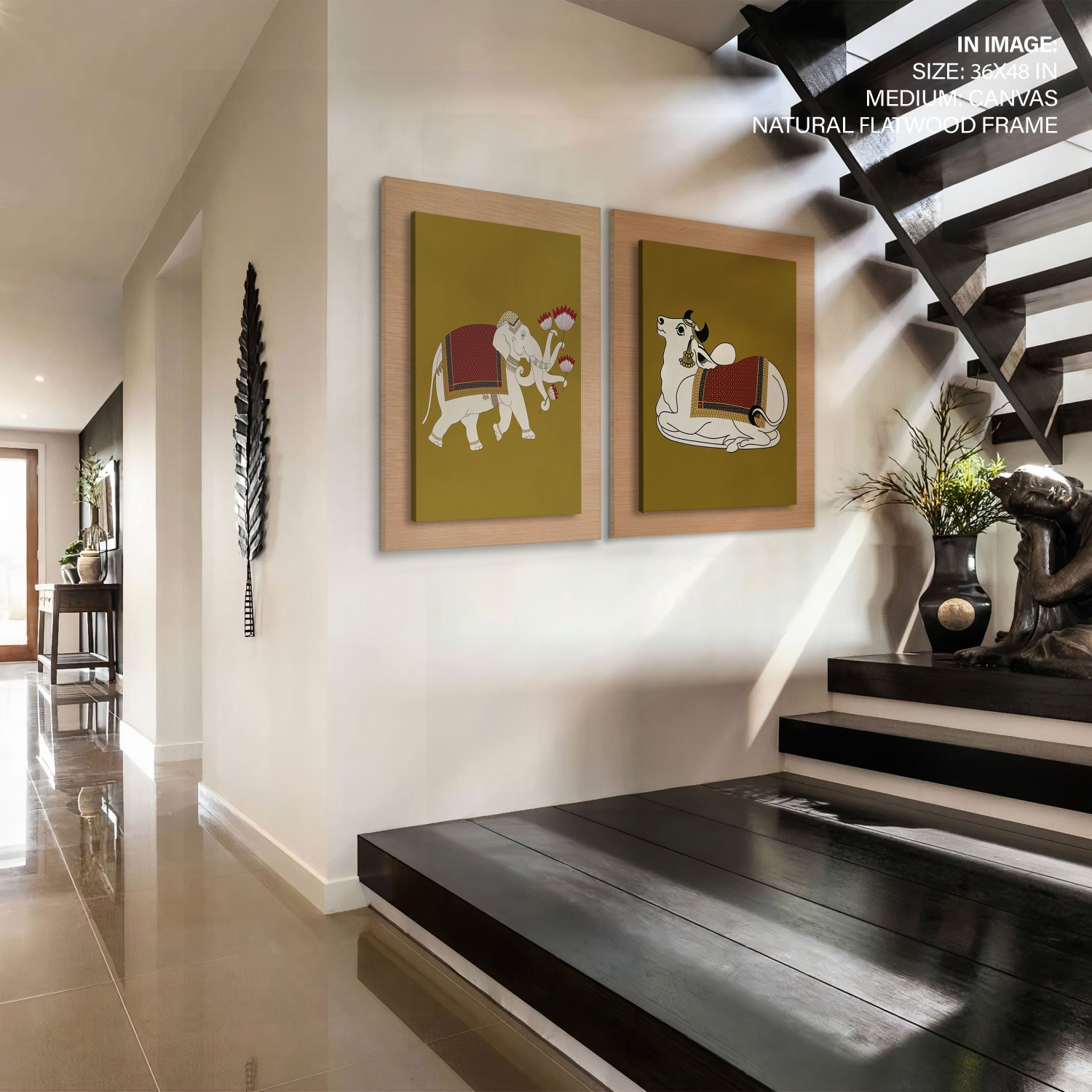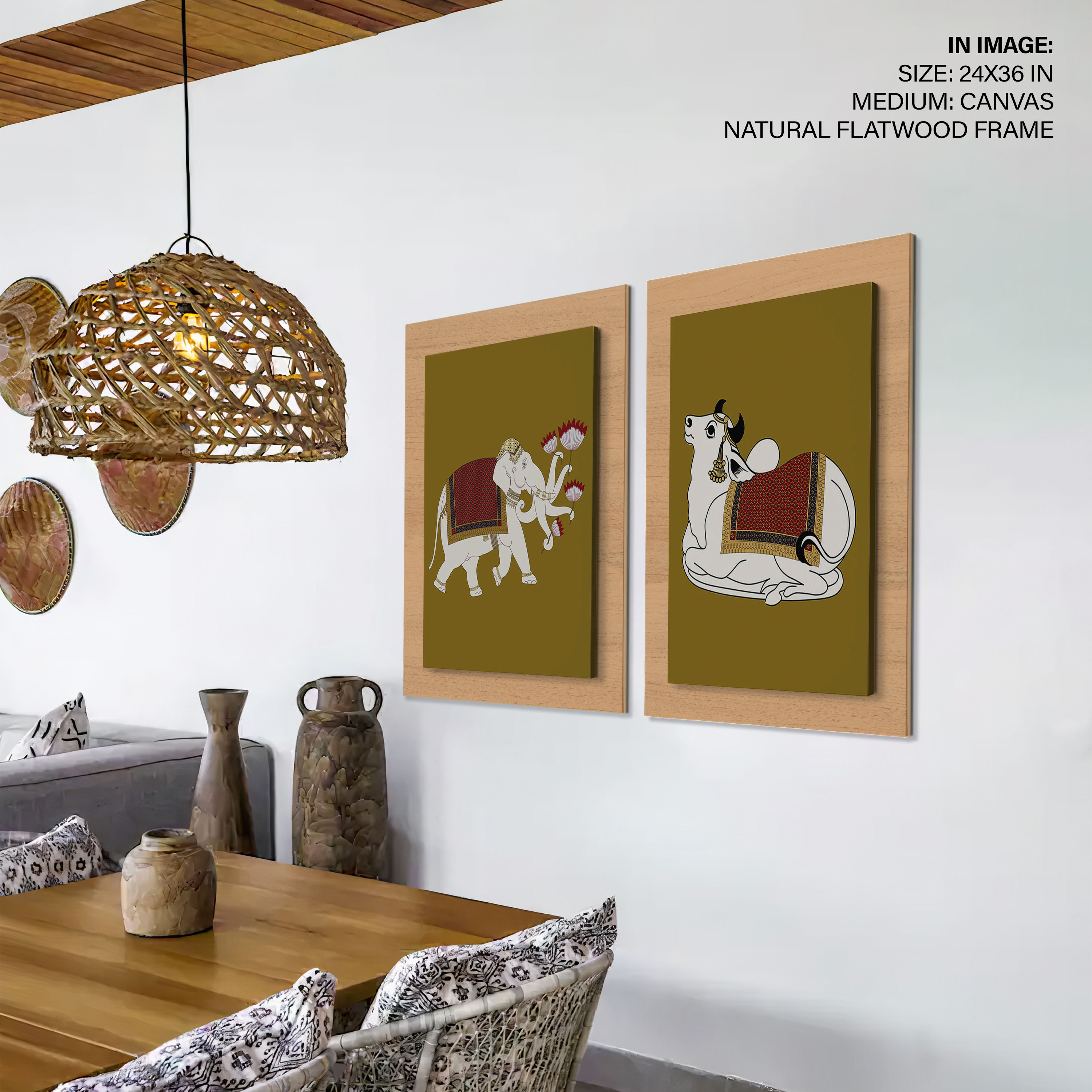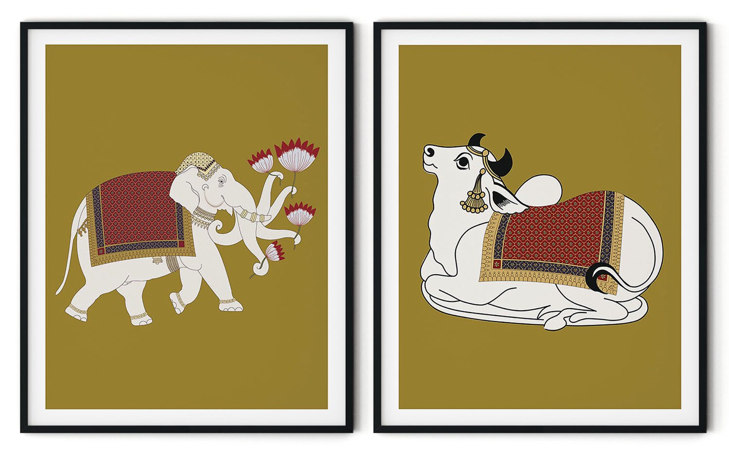 Be the first to review “Set of 2 Indian traditional painting of gajraj and Nandi”
