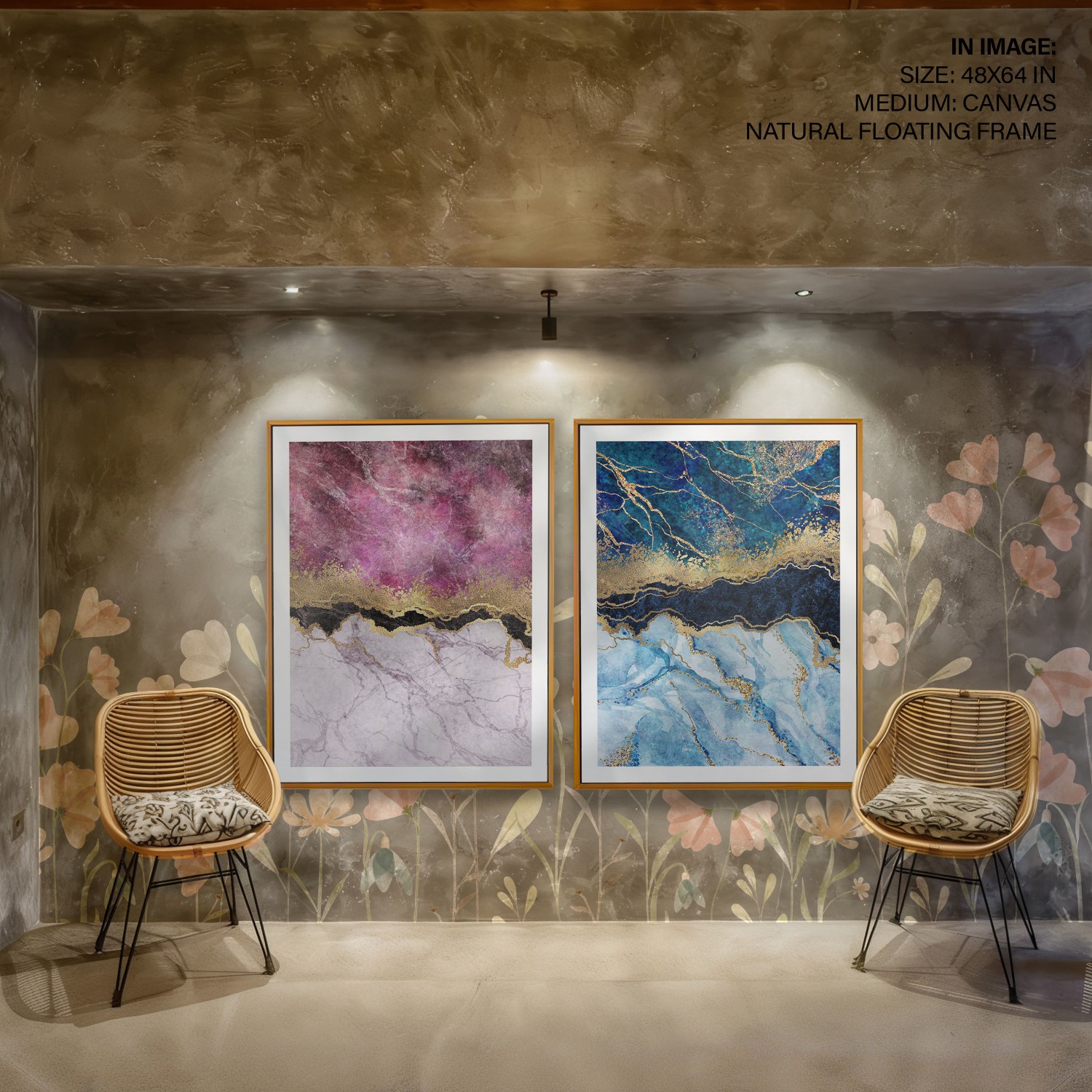 Be the first to review “Set of 2 pink and blue marble abstract with golden lines”
