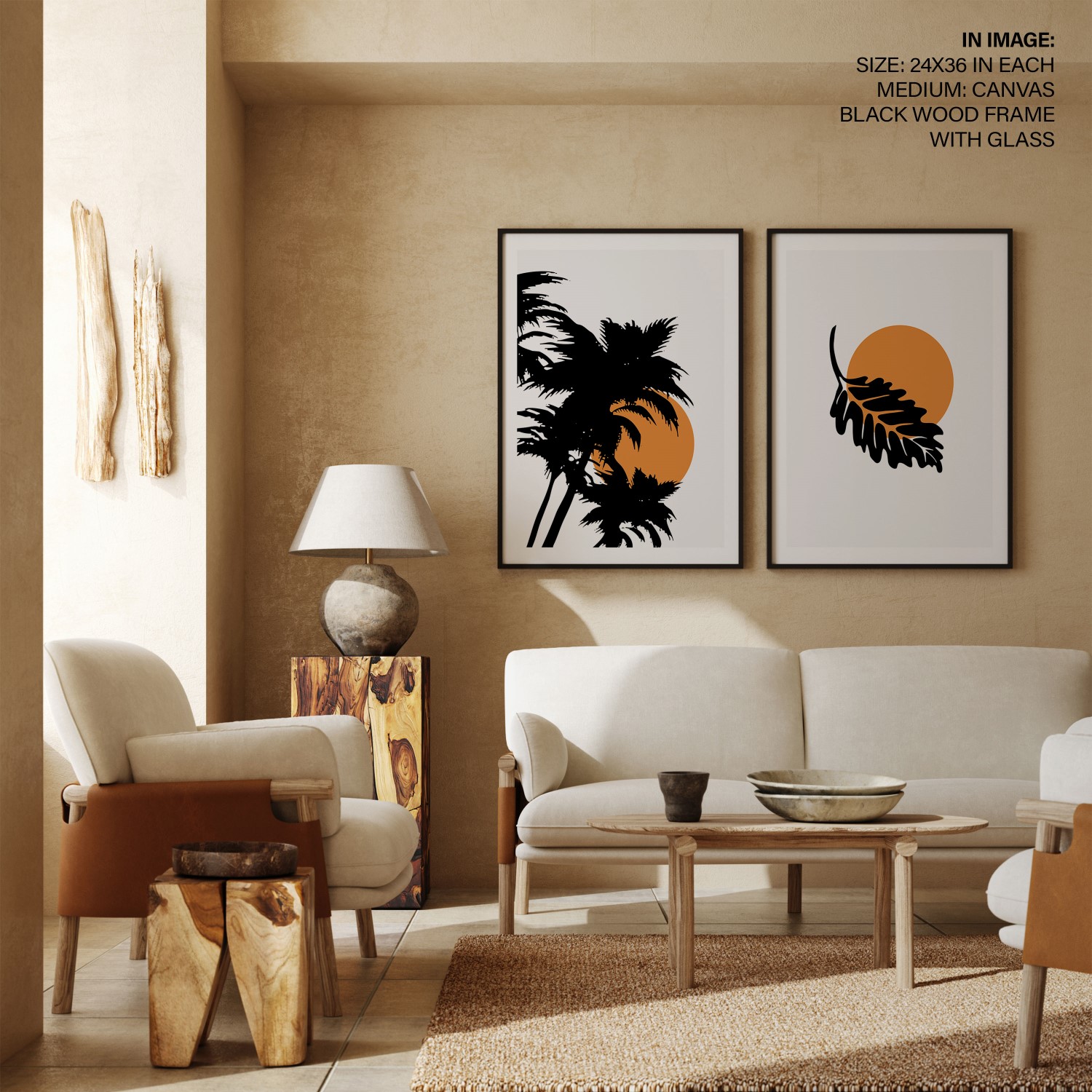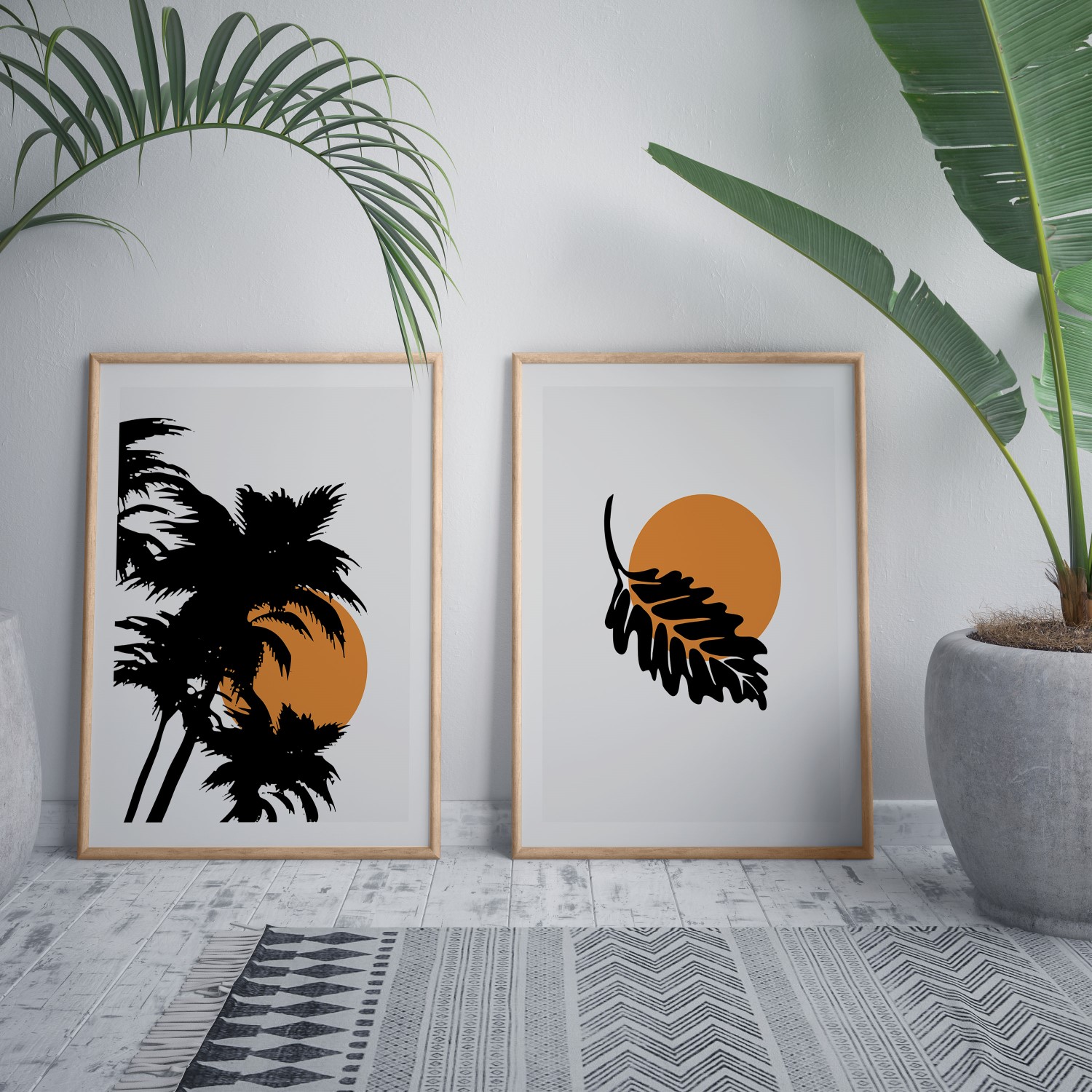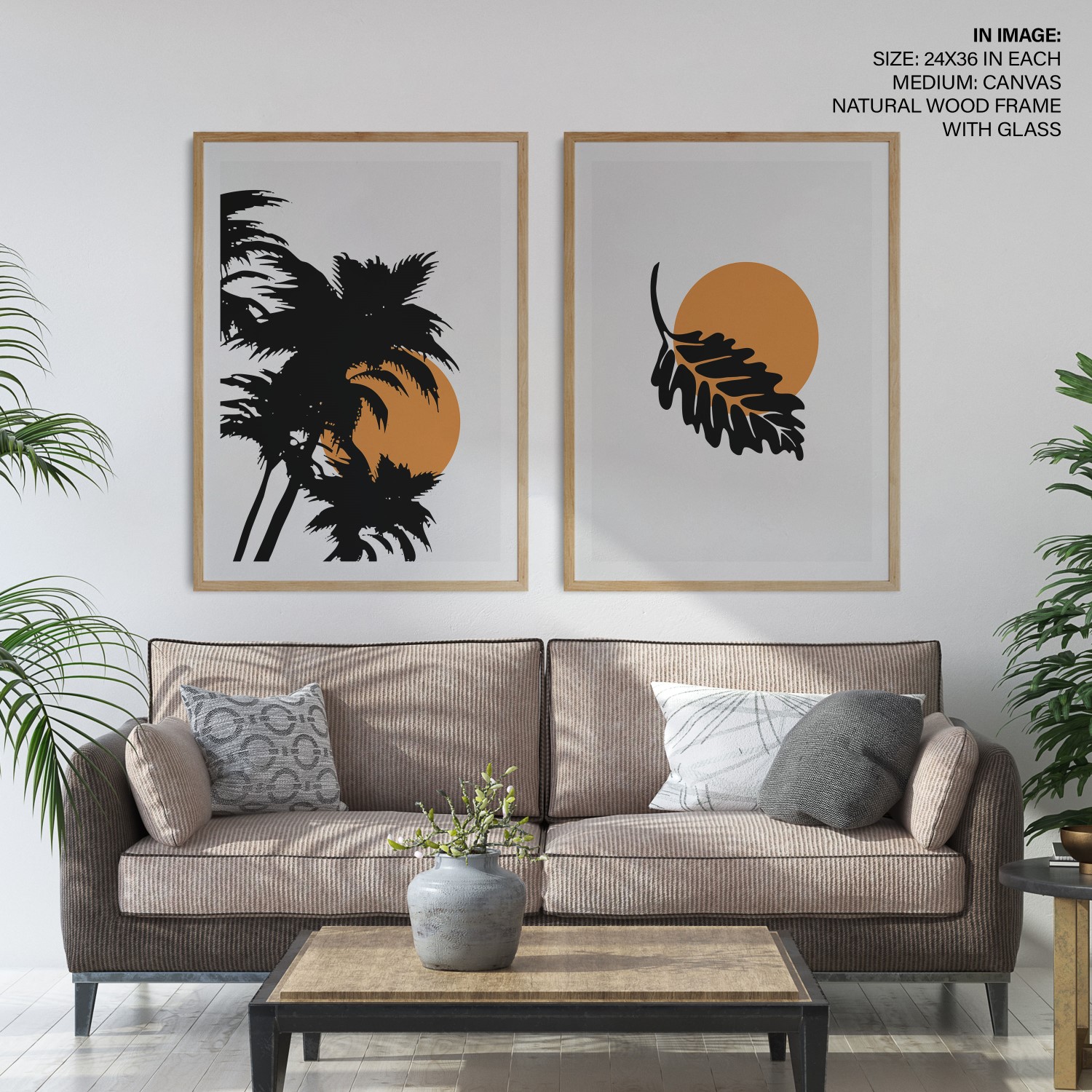 Set of 2 tropical sun palm